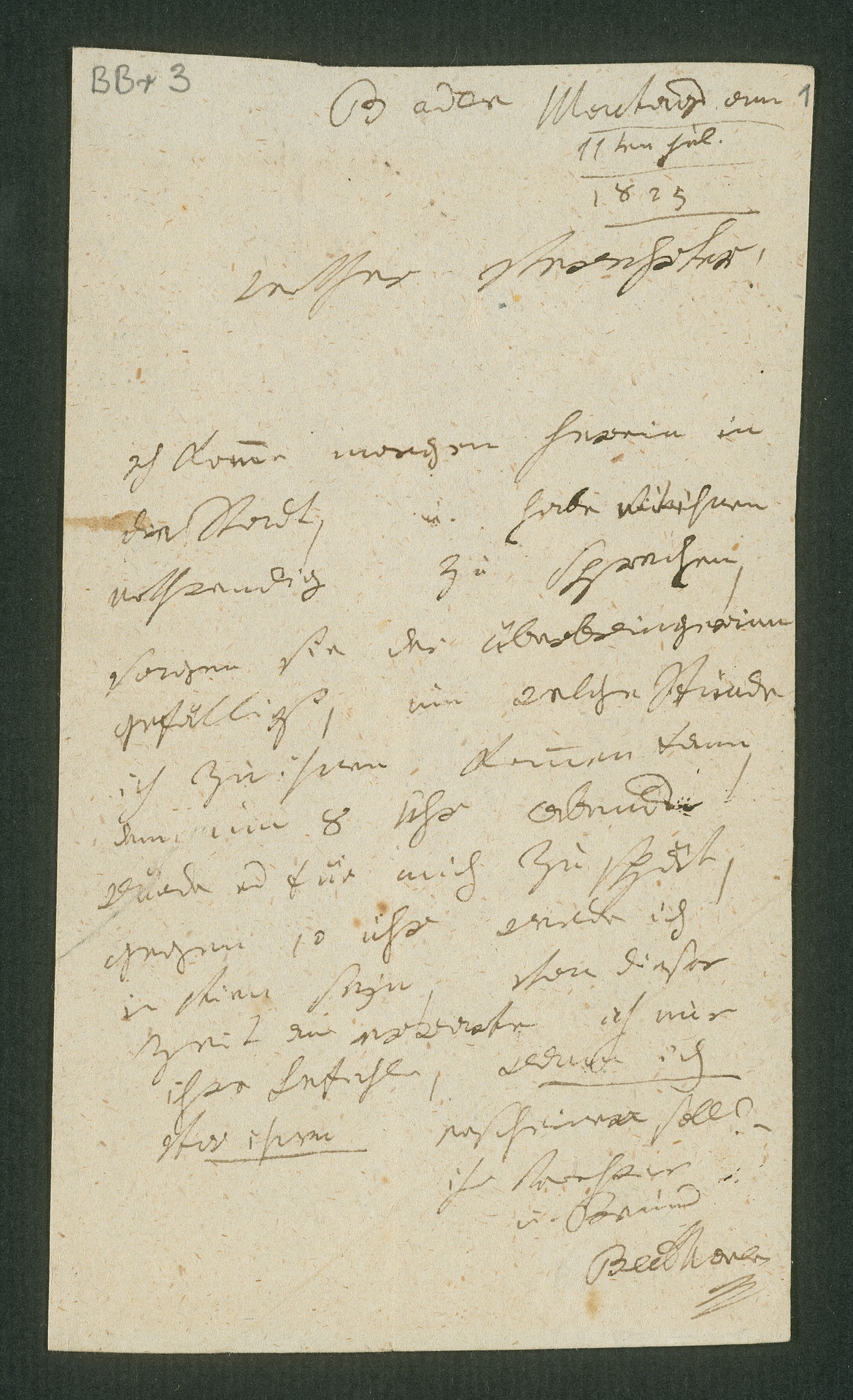 Ludwig van Beethoven, Billet an Anton Georg Braunhofer in Wien, Baden, 11. Juli 1825, Autograph