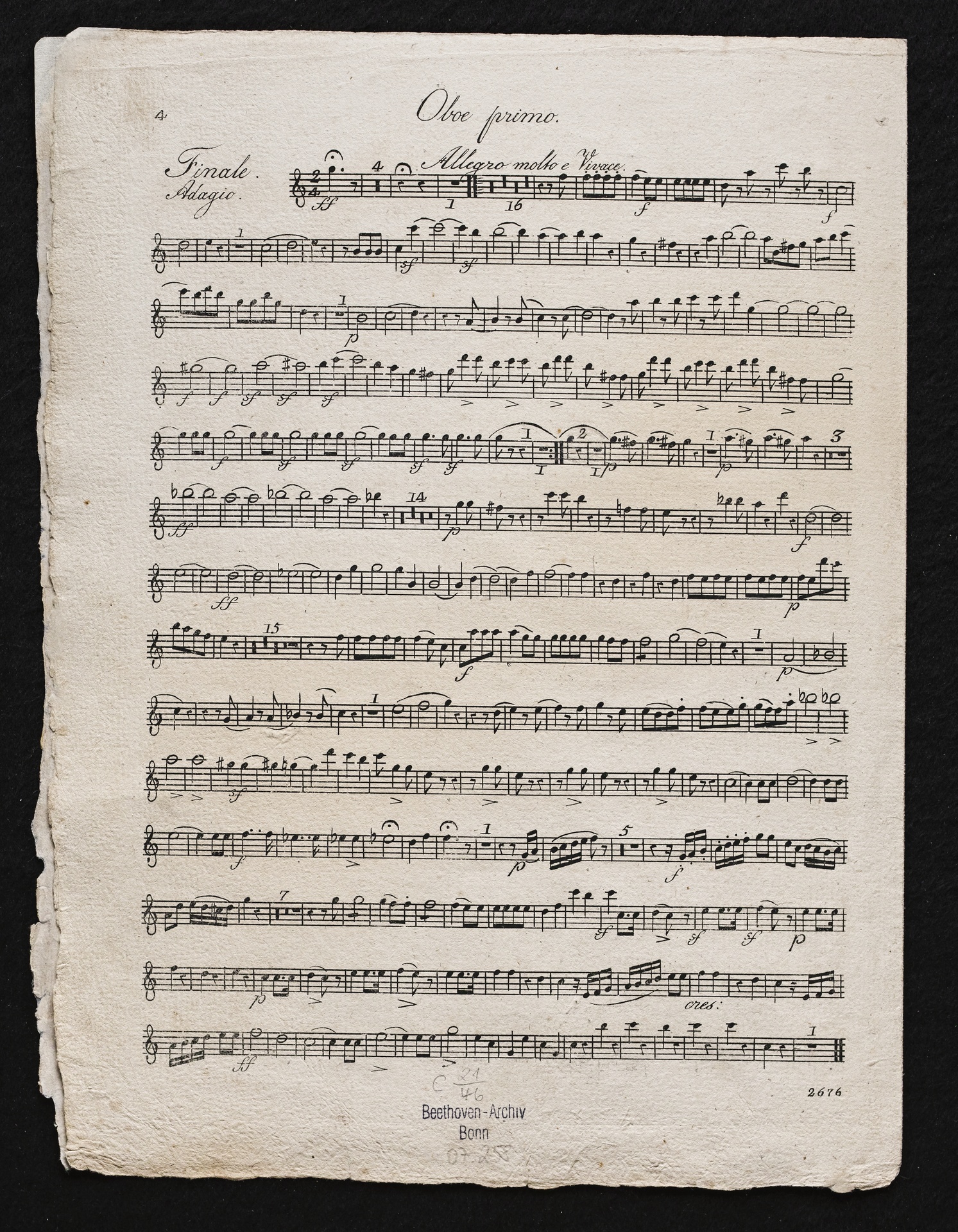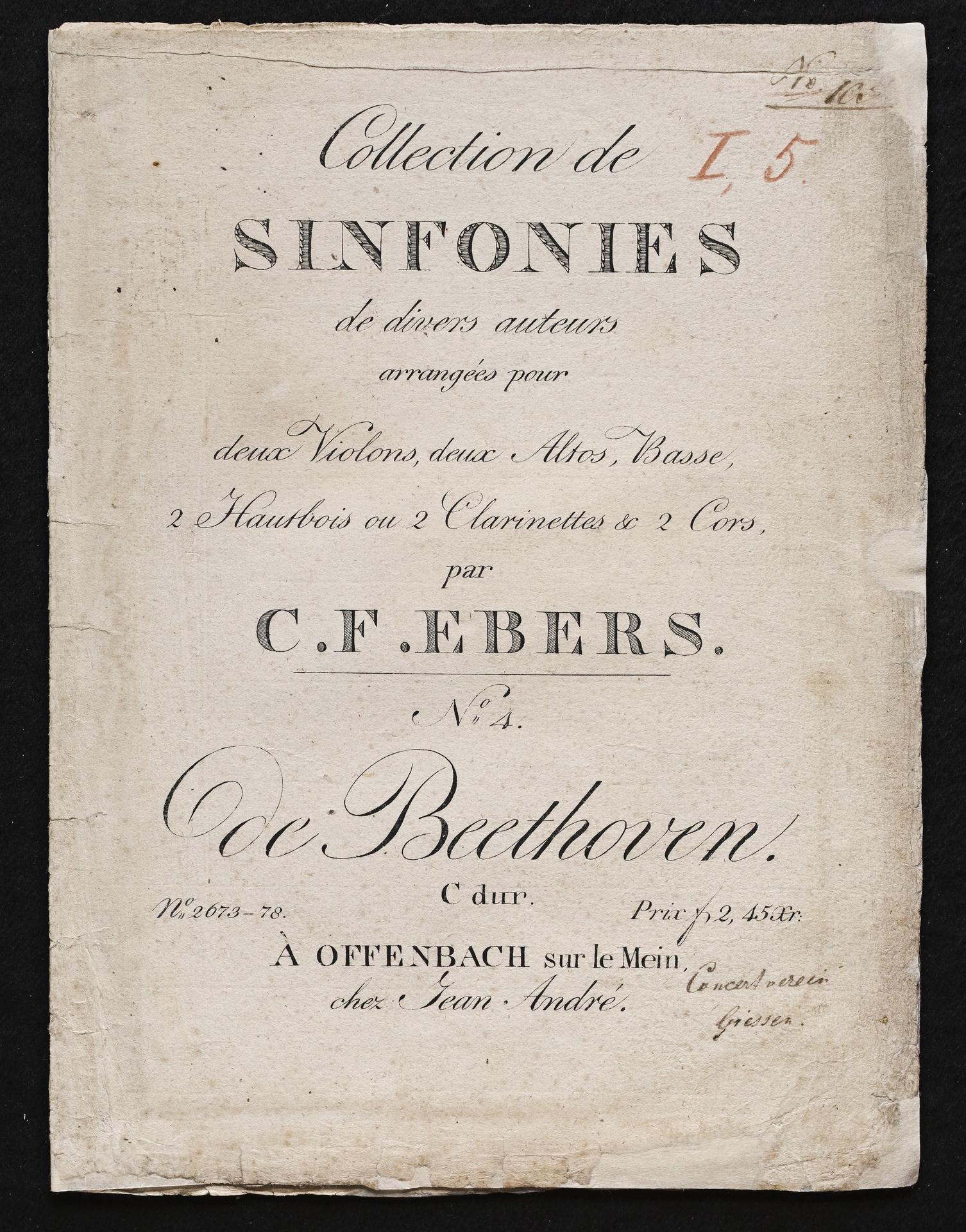 Ludwig van Beethoven, Sinfonie Nr. 1 (C-Dur) op. 21, Bearbeitung für 2 Violinen, 2 Violen, Violoncello, 2 Hörner, Stimmen, André, 2676