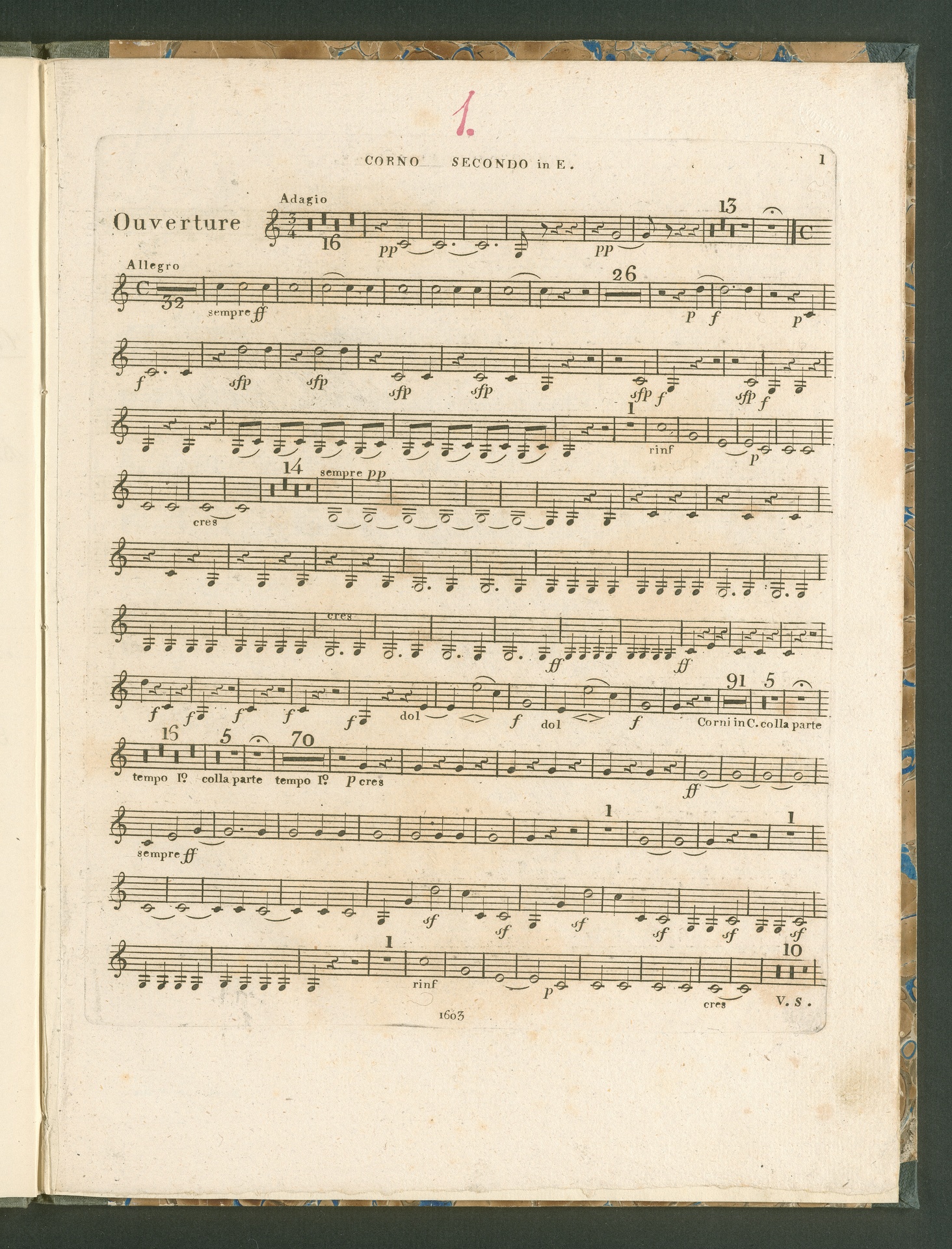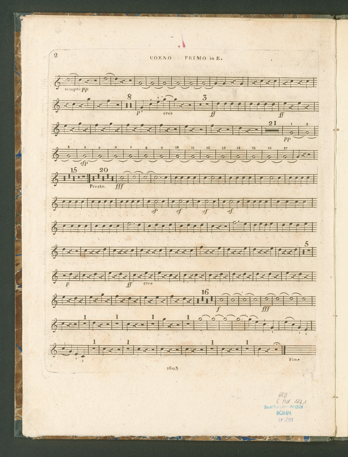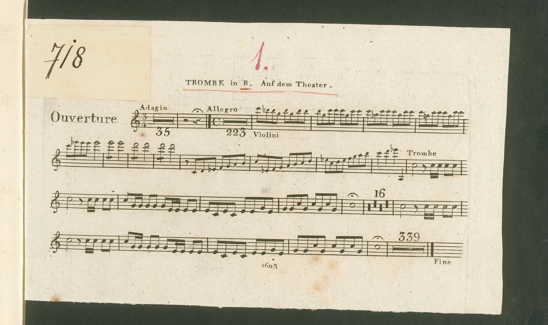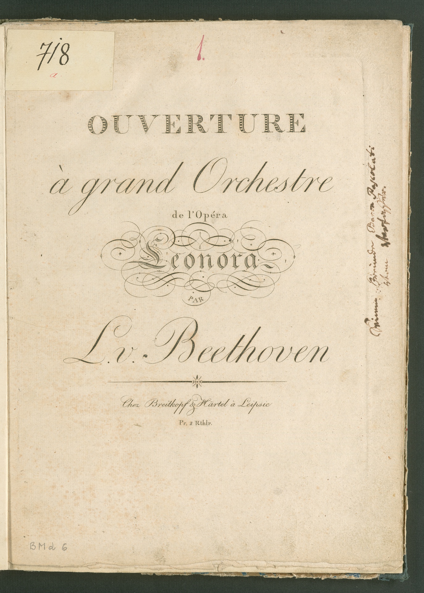 Ludwig van Beethoven, Fidelio op. 72, 2. Fassung 1806, Leonoren-Ouvertüre Nr. 3 (C-Dur), Stimmen, Breitkopf und Härtel, 1603, mit handschriftlichen Eintragungen Beethovens
