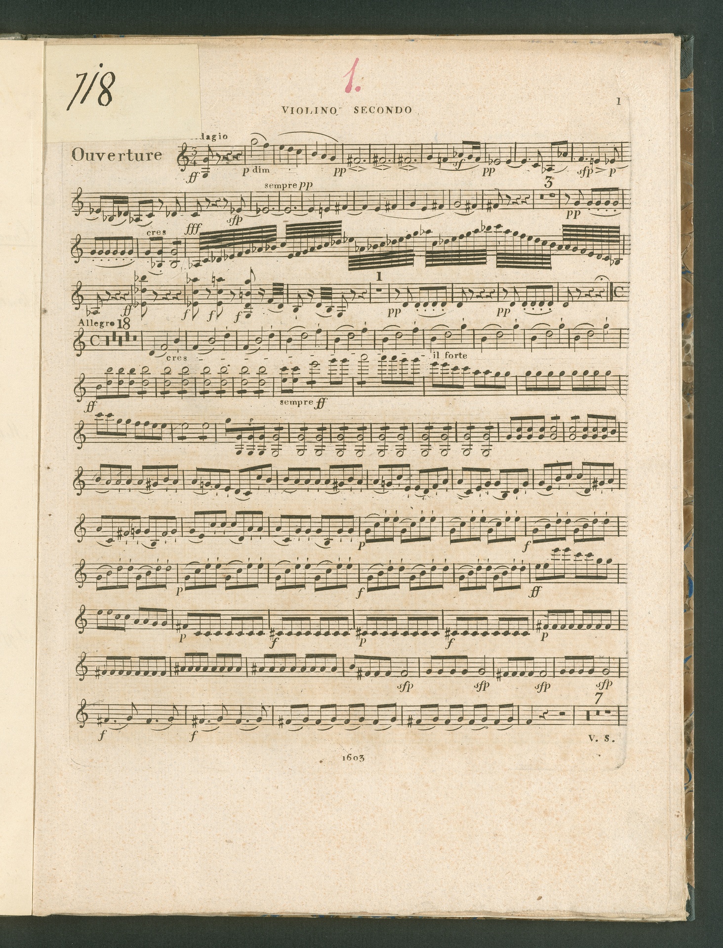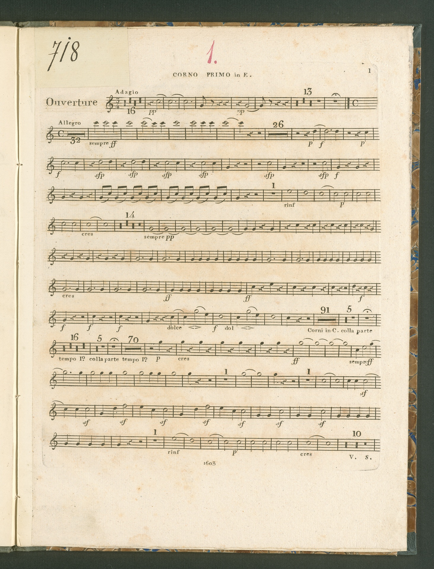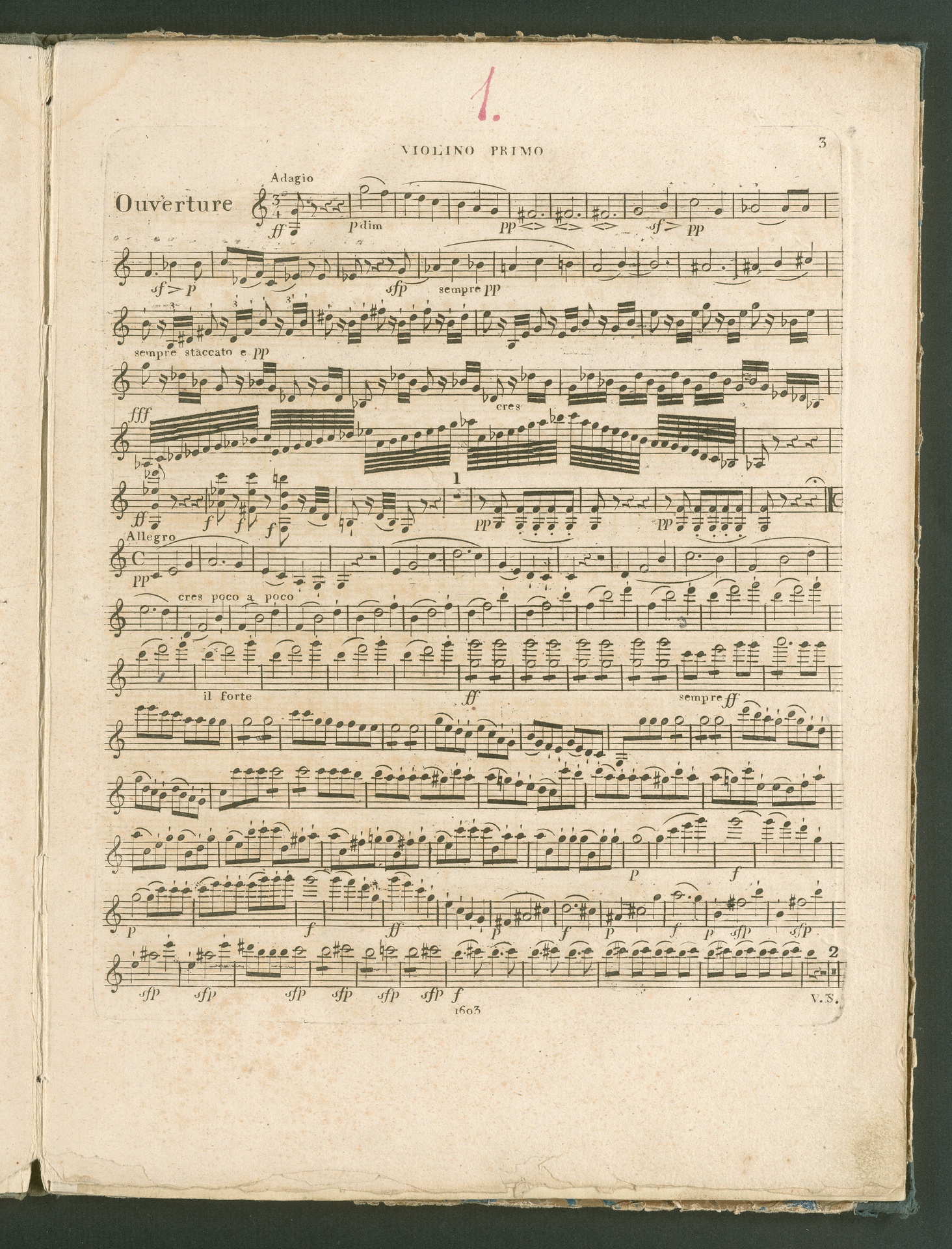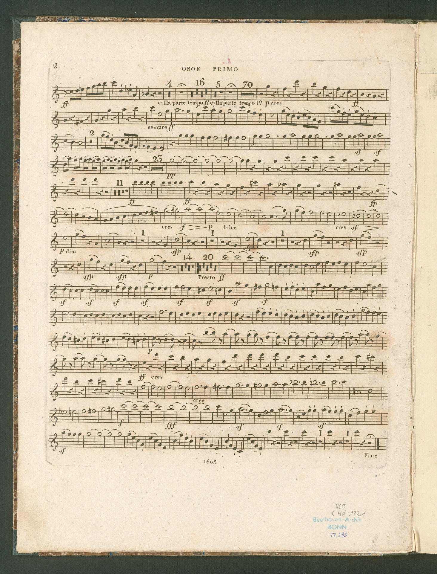 Ludwig van Beethoven, Fidelio op. 72, 2. Fassung 1806, Leonoren-Ouvertüre Nr. 3 (C-Dur), Stimmen, Breitkopf und Härtel, 1603, mit handschriftlichen Eintragungen Beethovens