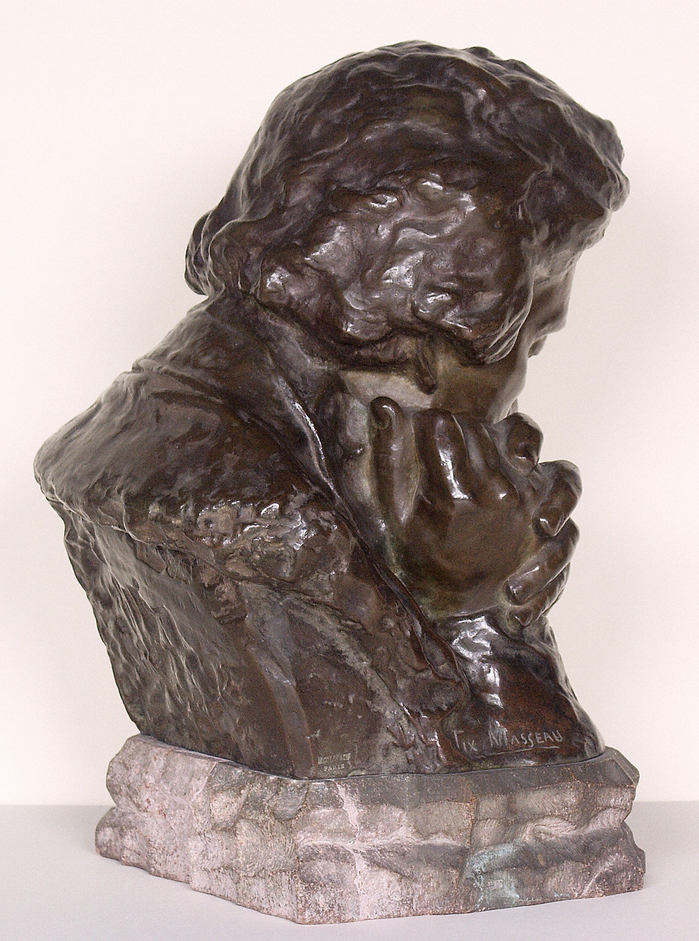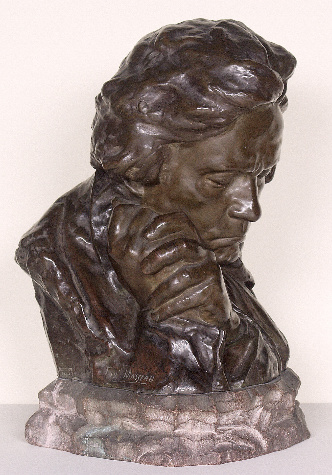 Ludwig van Beethoven, Büste mit aufgestützten Händen - Originalbronzeguß von Pierre-Félix Fix-Masseau, Paris, 1902