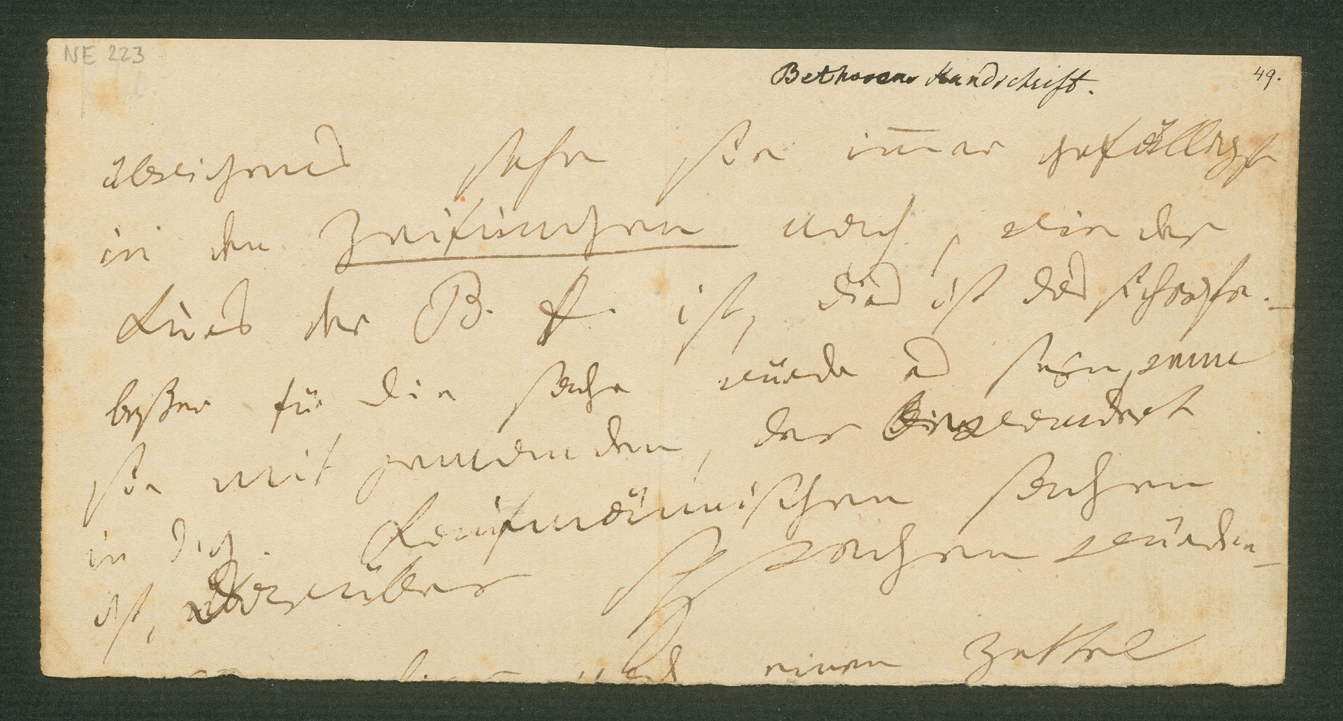 Ludwig van Beethoven, Brief an Joseph Köferle, vermutlich Baden, 27. September 1821, Autograph, Fragment