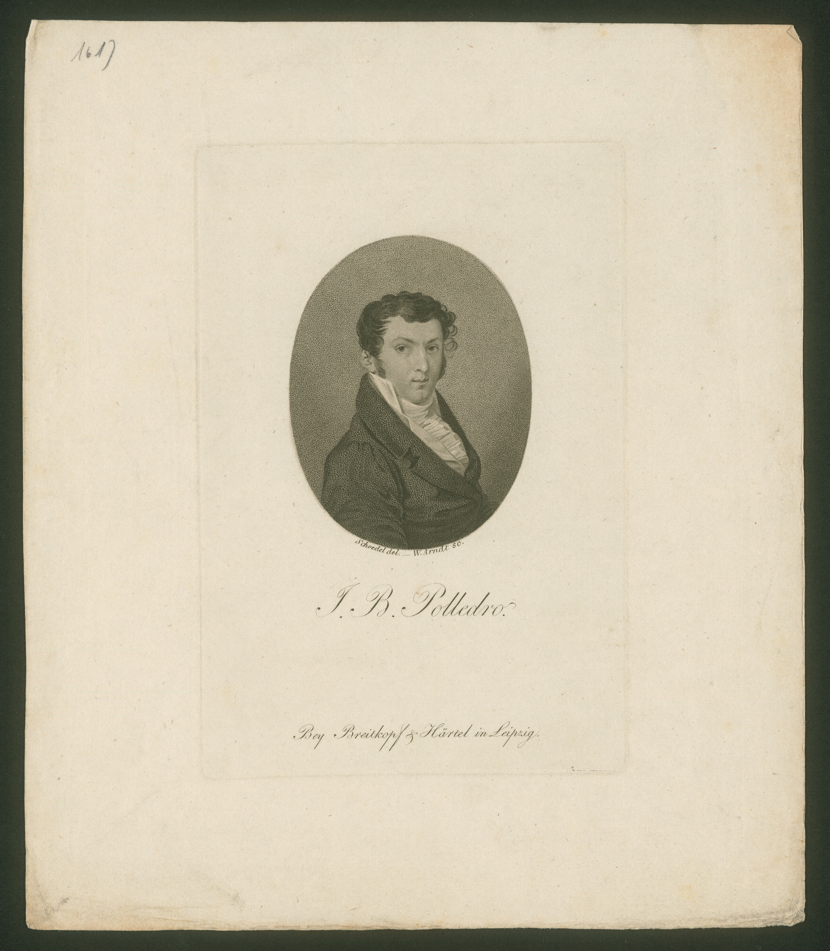 Giovanni Battista Polledro (1781-1853) - Stich von Wilhelm Arndt nach einer Zeichnung vermutlich von Heinrich Schoedl, erschienen bei Breitkopf und Härtel, Leipzig, ca. 1812
