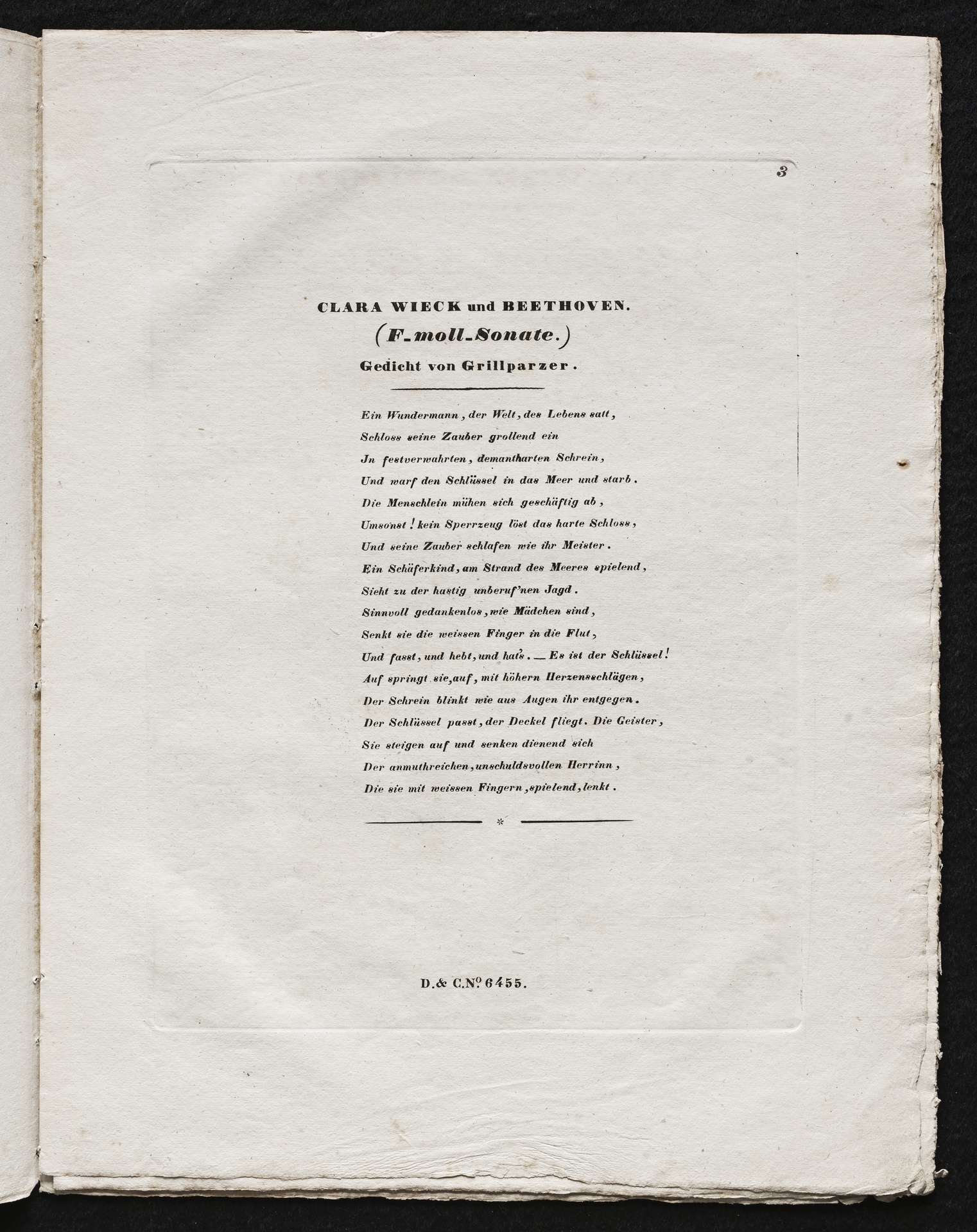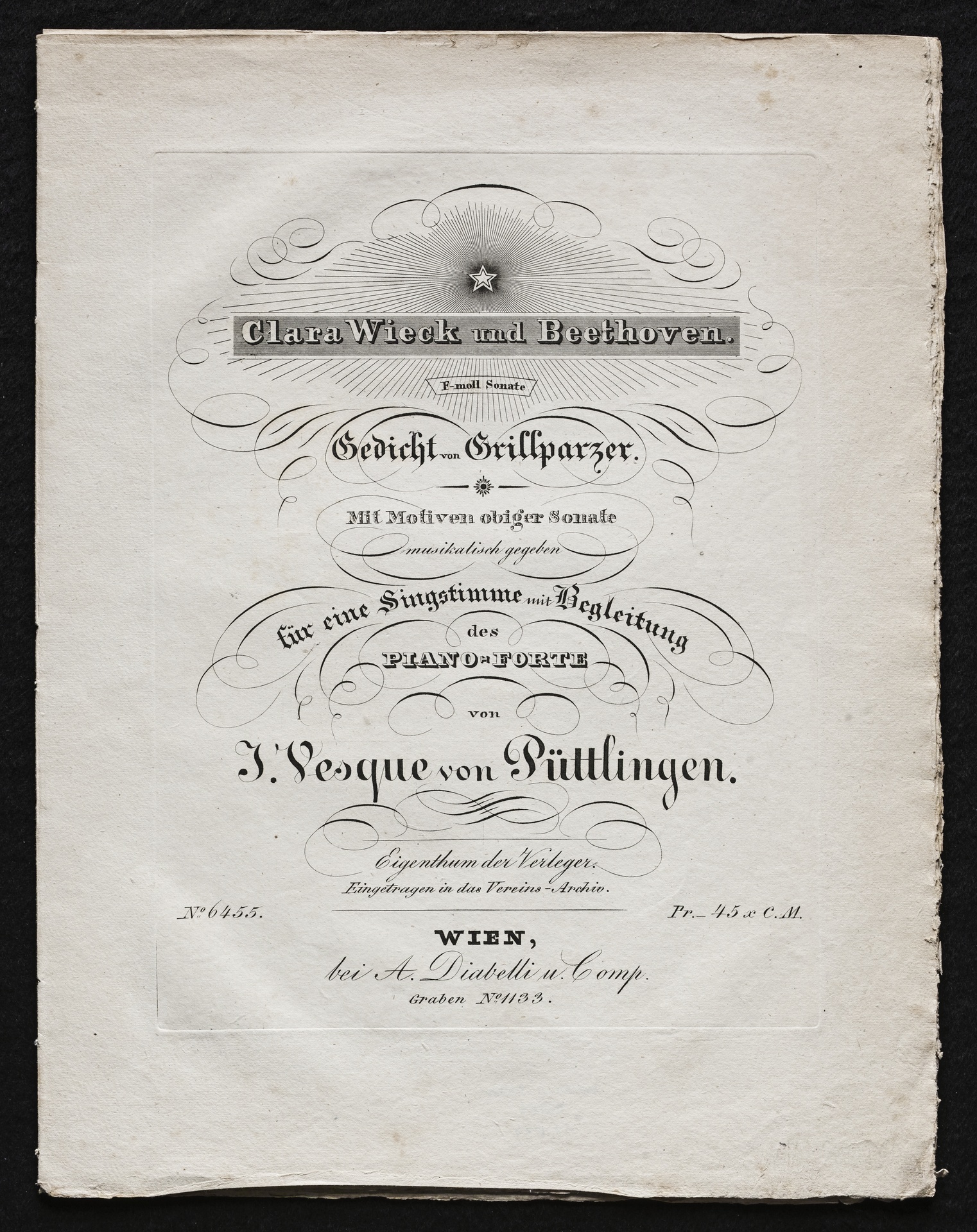Ludwig van BeethovenFranz Grillparzer, Sonate für Klavier (f-Moll) op. 57, Bearbeitung für Singstimme und Klavier von Johann Vesque von Püttlingen, Diabelli, 6455