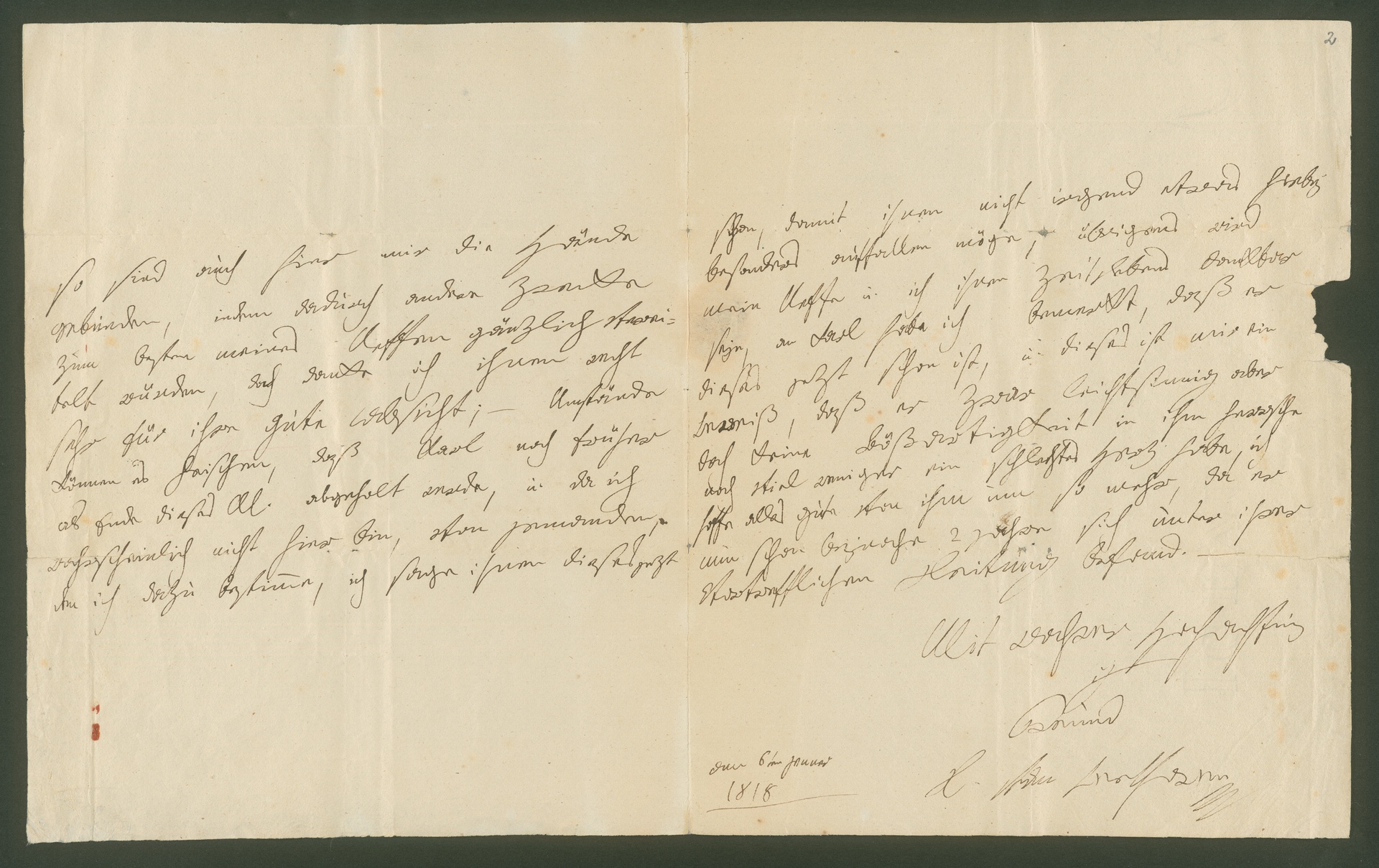 Ludwig van Beethoven, Brief an Cajetan Giannattasio del Rio, Wien, 6. Januar 1818, Autograph