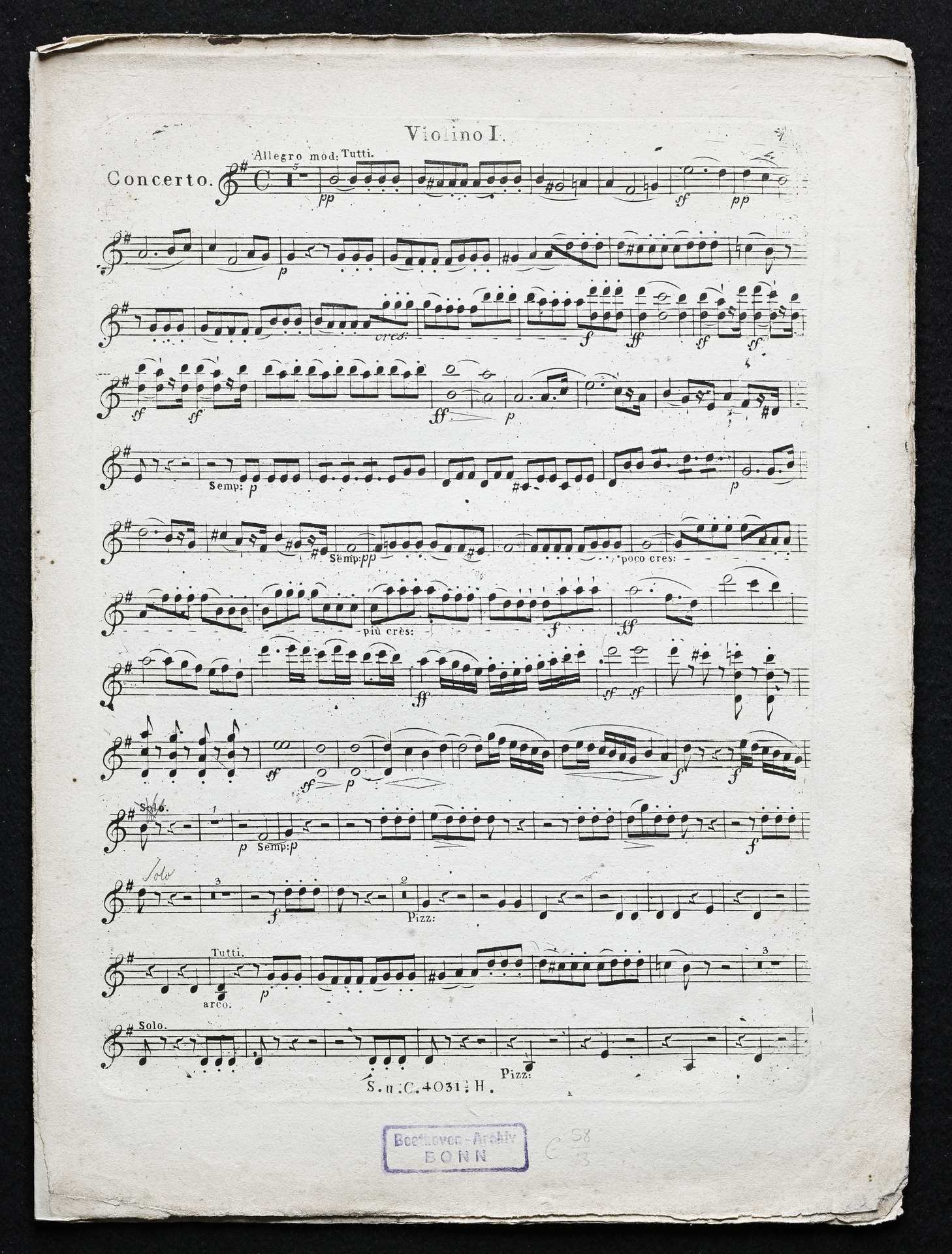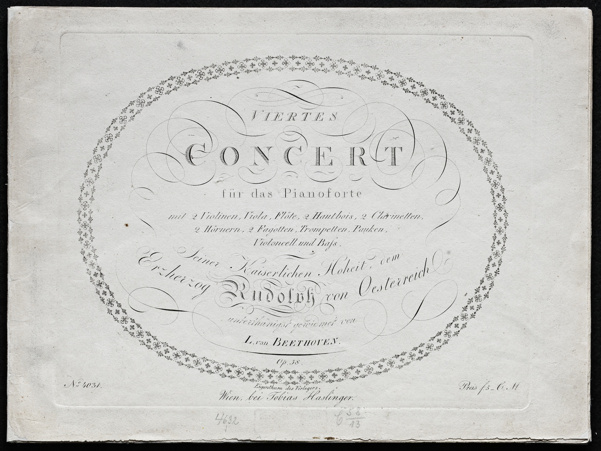 Ludwig van Beethoven, Konzert für Klavier Nr. 4 (G-Dur) op. 58, Stimmen, Haslinger, 4031