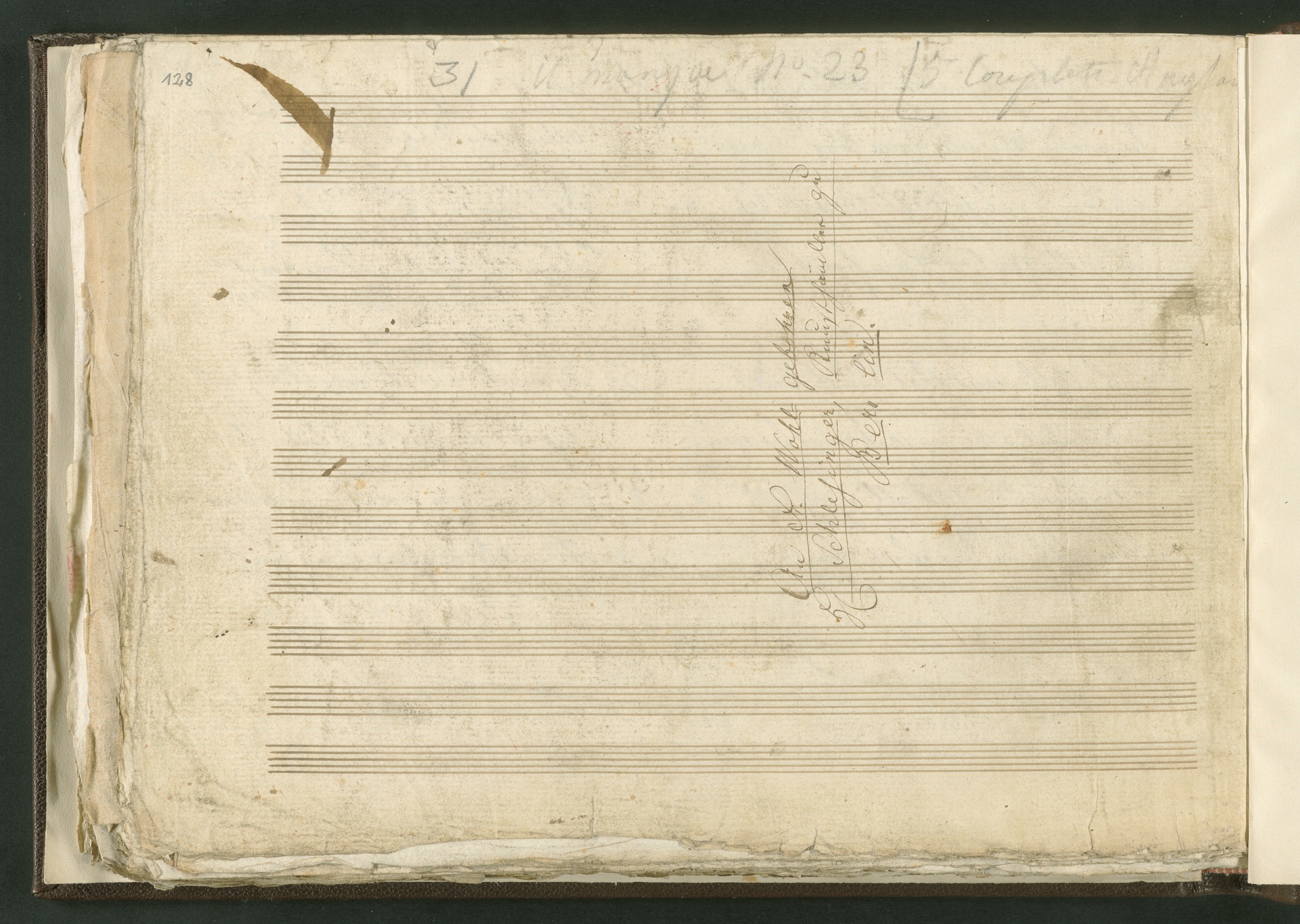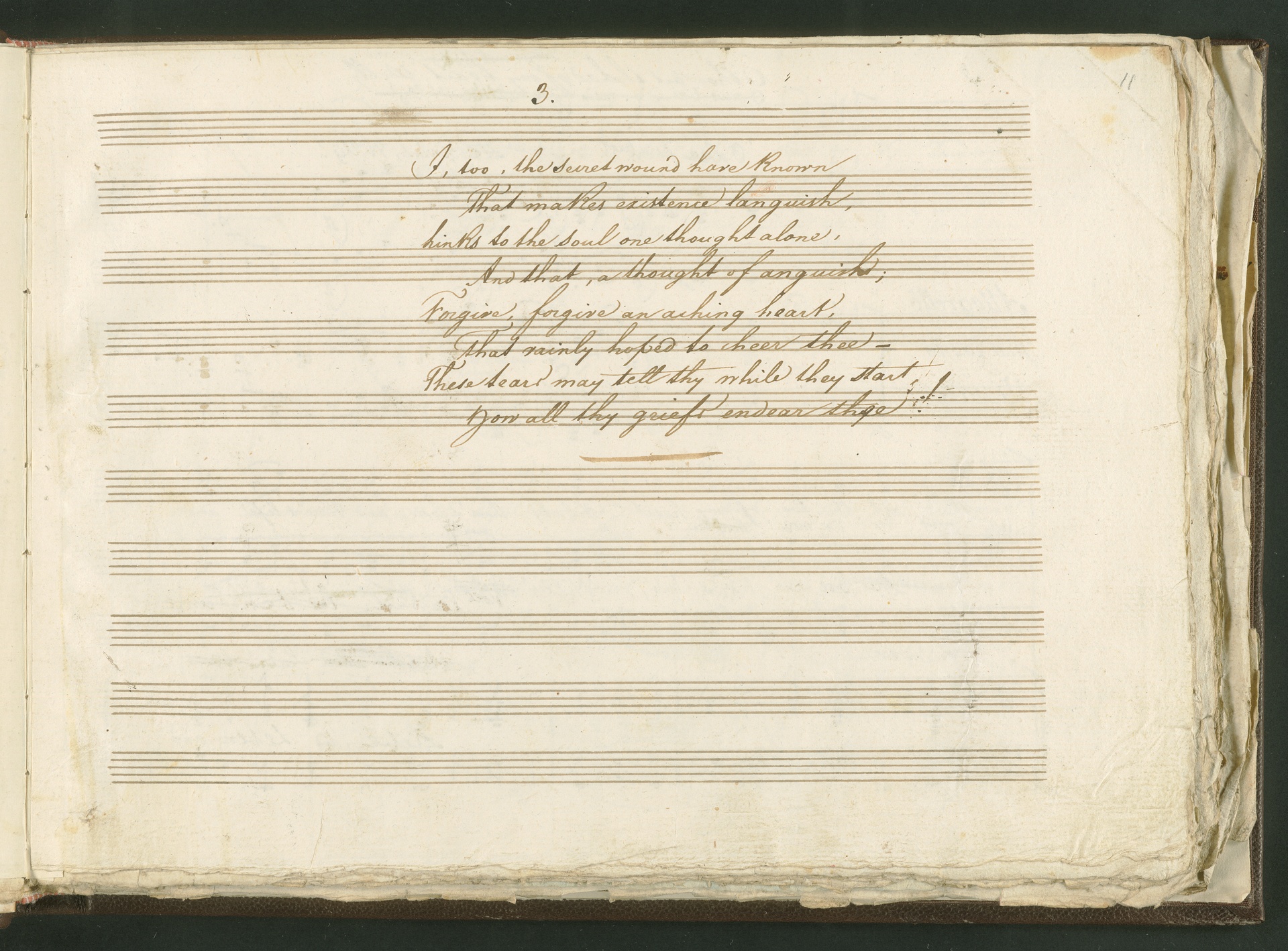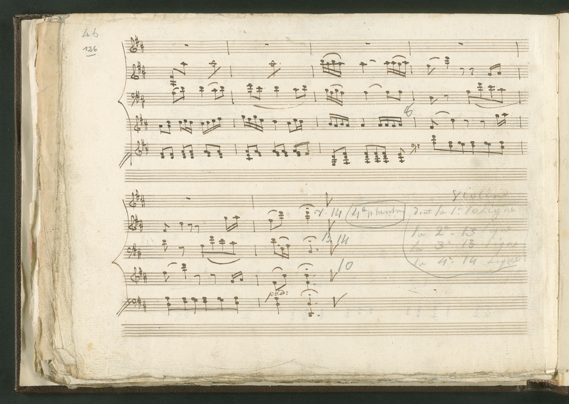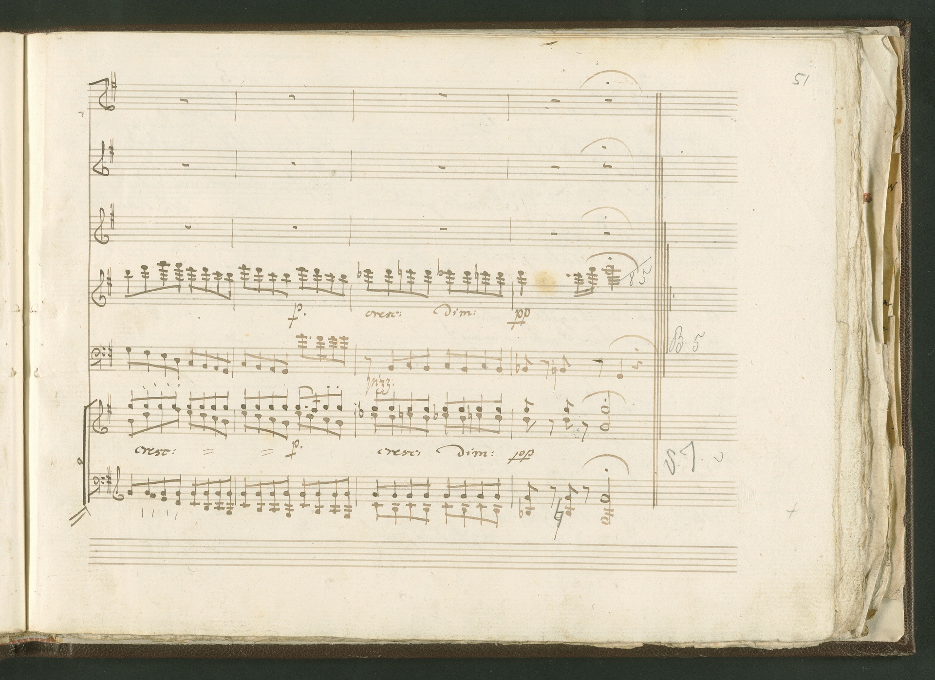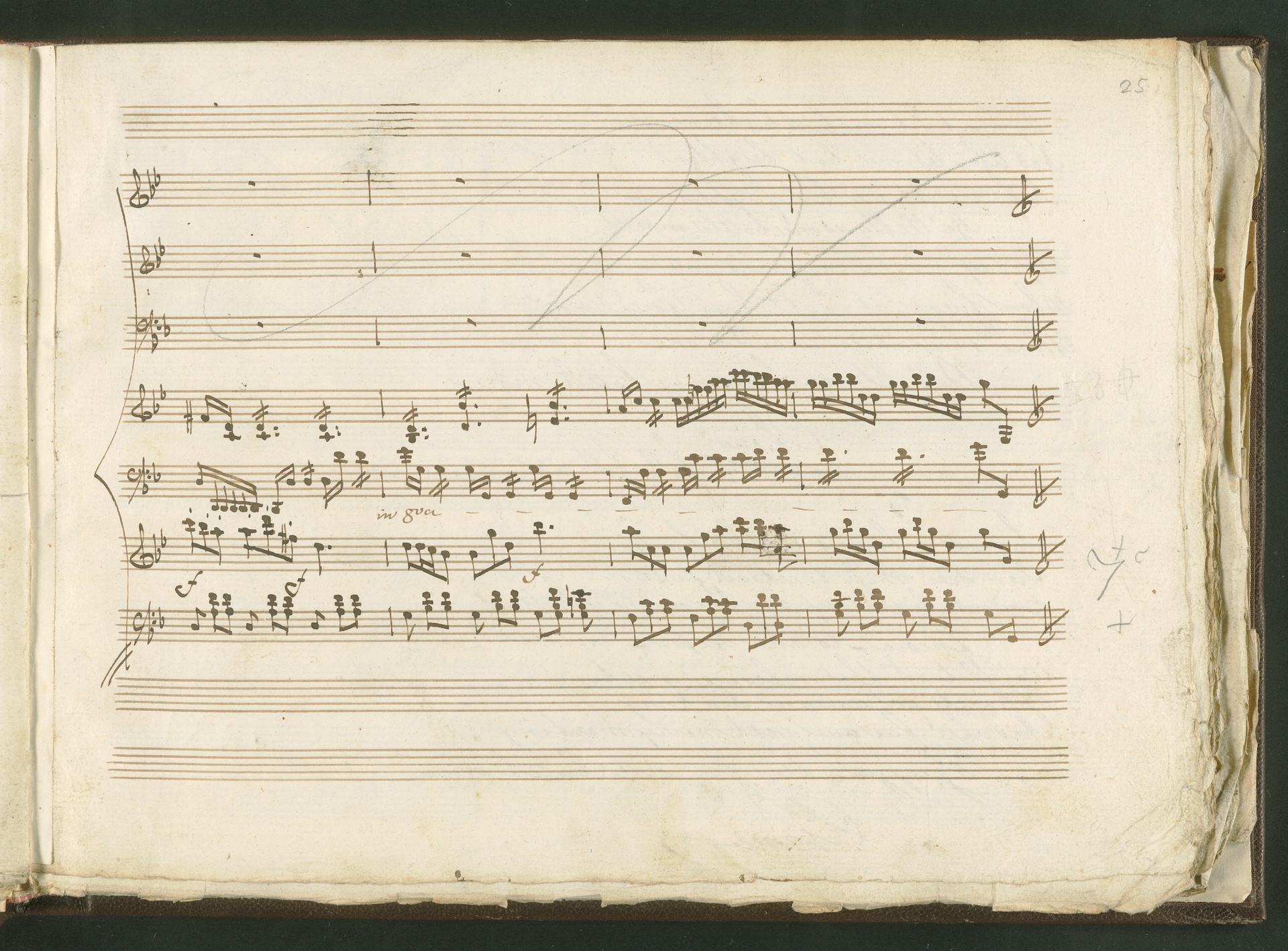 Im Juni 1818 erschien auf den britischen Inseln "A Select Collection of Original Scottish Airs": Beethovens musikalische Ausgestaltung von 25 schottischen Liedern. Beethoven, durchaus kein schlechter Geschäftsmann, versuchte anschließend, die Kompositionen auch auf dem Kontinent zu verkaufen und hatte 1820 in Berlin Glück. Der Verleger Adolph Martin Schlesinger interessierte sich für die Lieder und veranstaltete 1822 eine deutsche Ausgabe. Die überprüfte Abschrift ist die Stichvorlage für diese deutsche Originalausgabe (Op. 108). Neben dem von zwei unterschiedlichen Schreibern kopierten Notentext sind noch zwei weitere Handschriften erkennbar: Franz Oliva, Beethovens Freund und freiwilliger Sekretär schrieb den englischen Text der Lieder in die Abschrift, Samuel Heinrich Spiker fügte deren deutsche Übersetzung hinzu. Um die Lieder auf dem deutschen Markt besser verkaufen zu können, ließ Schlesinger sie übersetzen und druckte seine Ausgabe zweisprachig englisch und deutsch. Die Lieder waren im Original in einem schottischen Dialekt geschrieben, was deren Übersetzung nicht eben einfach machte. Der deutsche Text ist nicht immer ganz glücklich. Auch Beethoven bemerkte das in einem Brief an Schlesinger am 9. April 1822 und bat um Abhilfe: "wegen den Schottischen Liedern schrieb ich ihnen schon, daß beßer vom dichter auf die Langen u. kurzen Silben, welche leztere oft auf lange Noten u. die erstern auf kurze Nothen gerathen sind, Es läßt sich zwar etwas entschuld. in dieser Art, wäre der dichter hier so wäres leicht, jezt aber bin ich so überhaüft beschäftigt, daß es mir nicht mögl. ist, H. Zelter ein Mann von Kenntniß in der Poesie wie es sich für einen ausgezeichneten autor schikt, würde wol bald ihnen helfen können diese kleinen Fleken abzuwaschen" (BGA 1460, Beethoven an Adolph Martin Schlesinger). Trotz Beethovens Empfehlung, sich an Zelter (ein Freund Goethes) zu wenden, blieb der Verlag bei Spiker. Die deutschen Textunterlegungen wurden weder korrigiert noch geändert. (J.R.)
