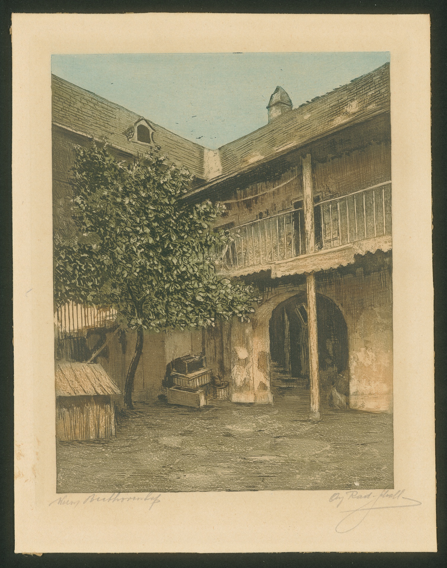 Wien, Heiligenstadt, Probusgasse 6, Wohnung von Ludwig van Beethoven, Hofansicht - Radierung von Schall nach einer eigenen Zeichnung, Wien, um 1928