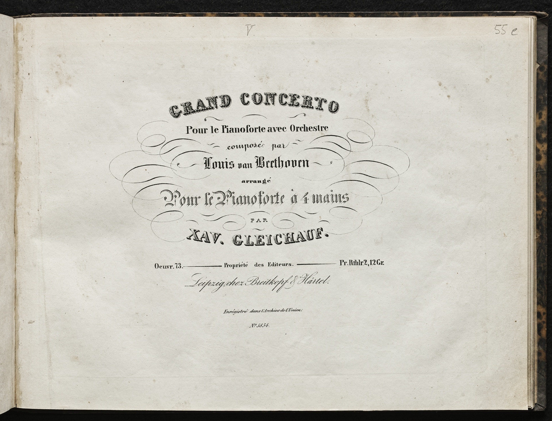 Ludwig van Beethoven, Konzert für Klavier Nr. 5 (Es-Dur) op. 73, Bearbeitung für Klavier zu 4 Händen von Franz Xaver Gleichauf, Breitkopf und Härtel, 5854