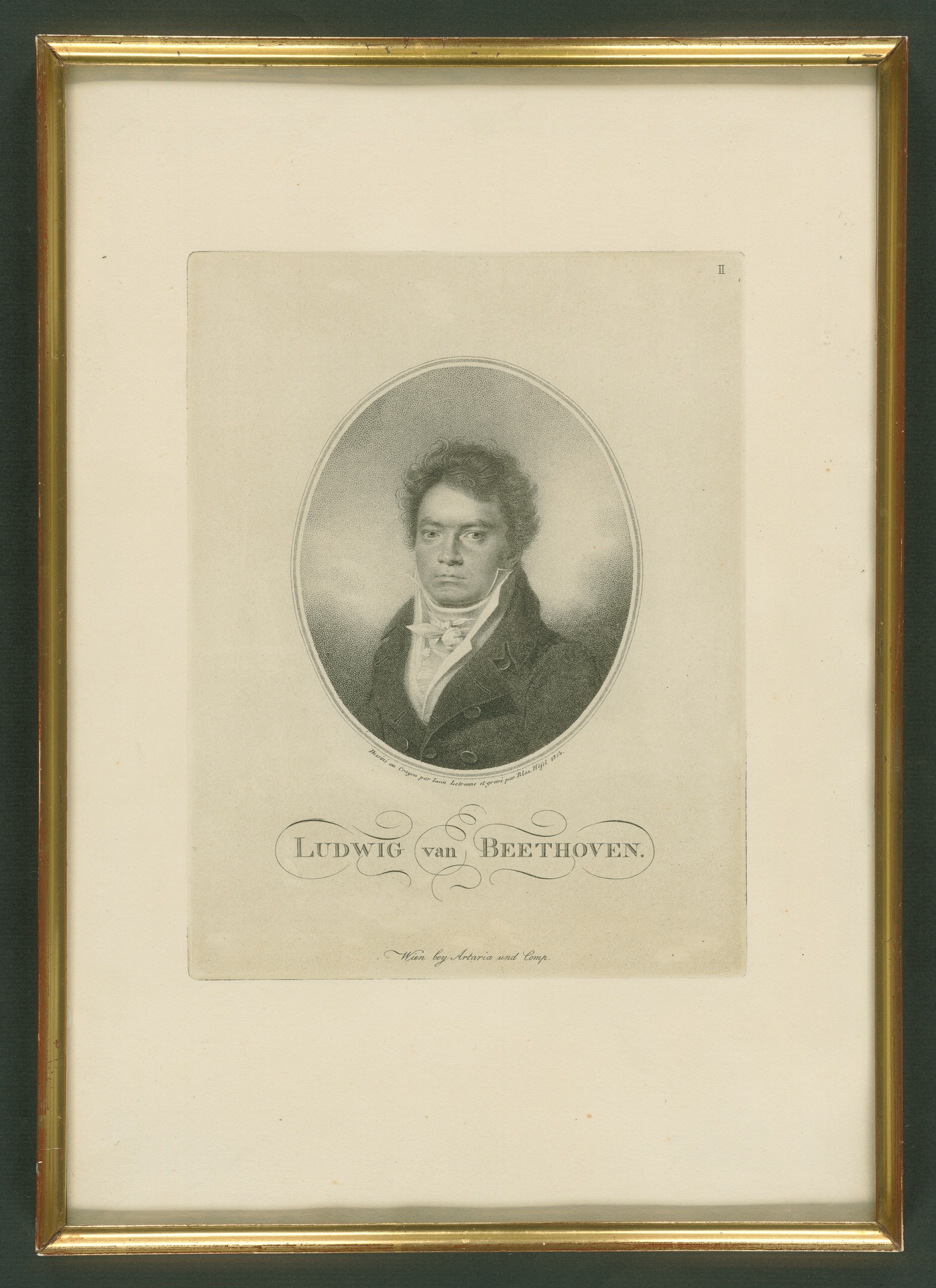 Ludwig van Beethoven - Nachdruck des Stichs von Blasius Höfel von 1814 nach einer Zeichnung von Louis Letronne, erschienen bei Artaria, Wien, 2. Hälfte 19. Jahrhundert