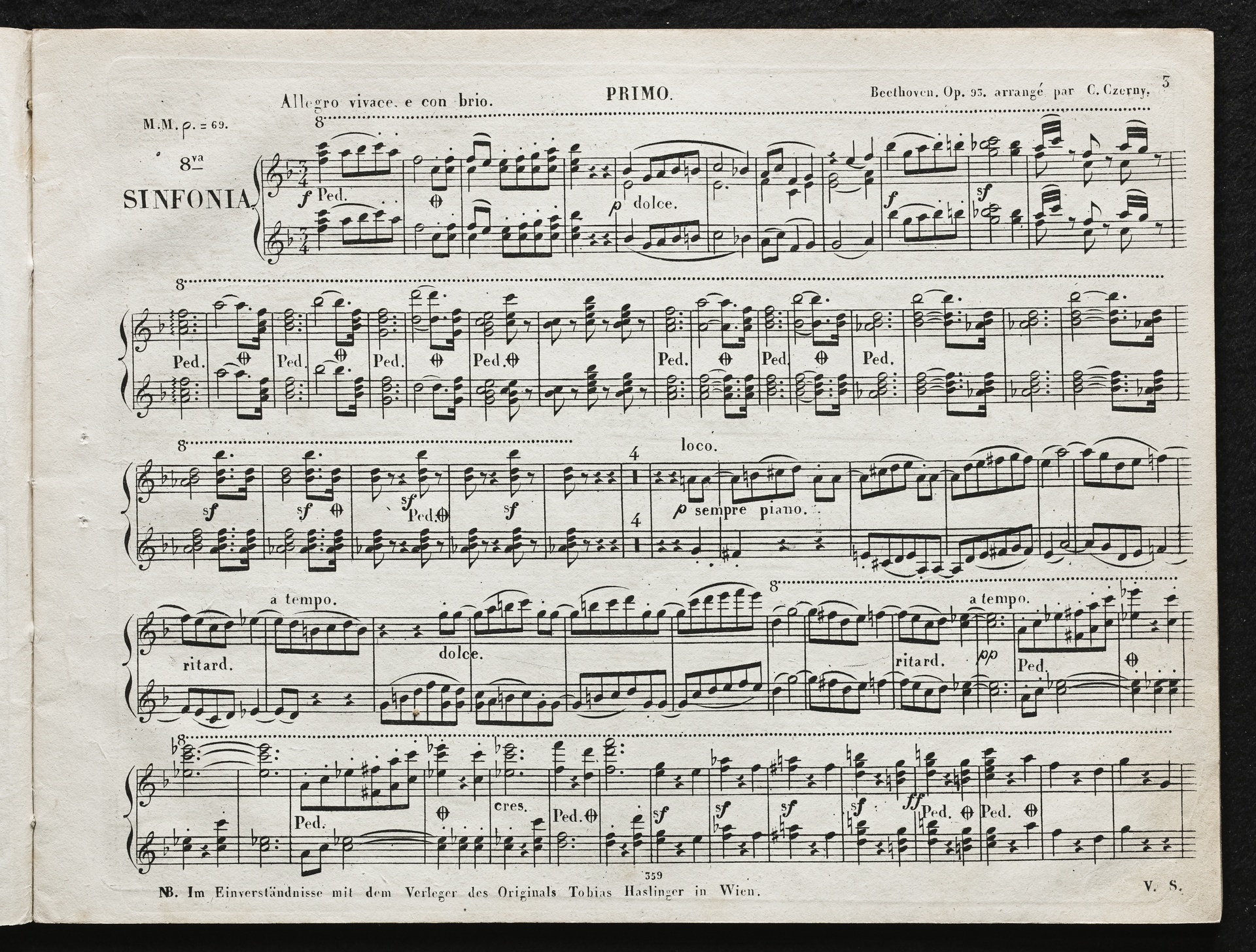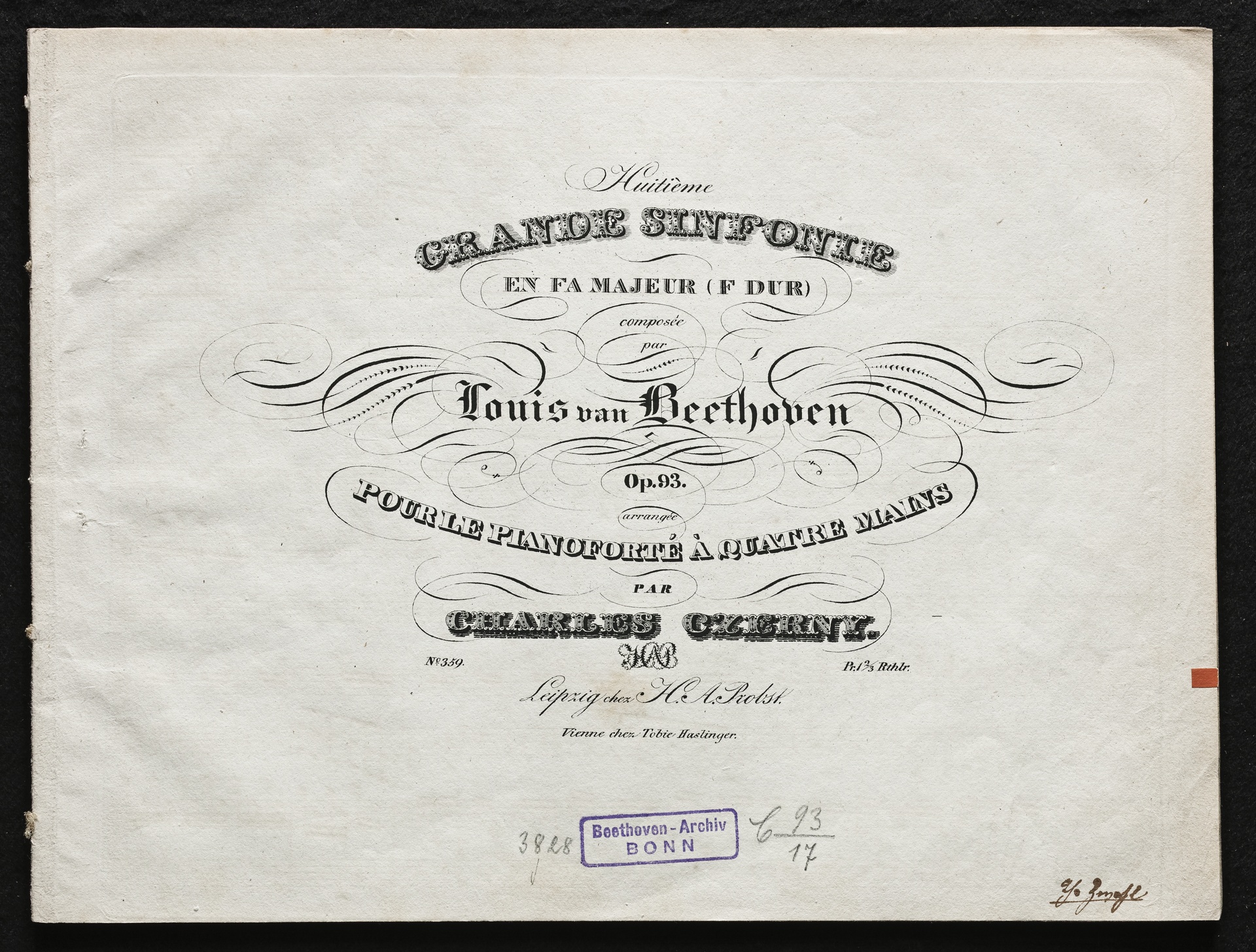 Ludwig van Beethoven, Sinfonie Nr. 8 (F-Dur) op. 93, Bearbeitung für Klavier zu 4 Händen von Carl Czerny, Probst, 359