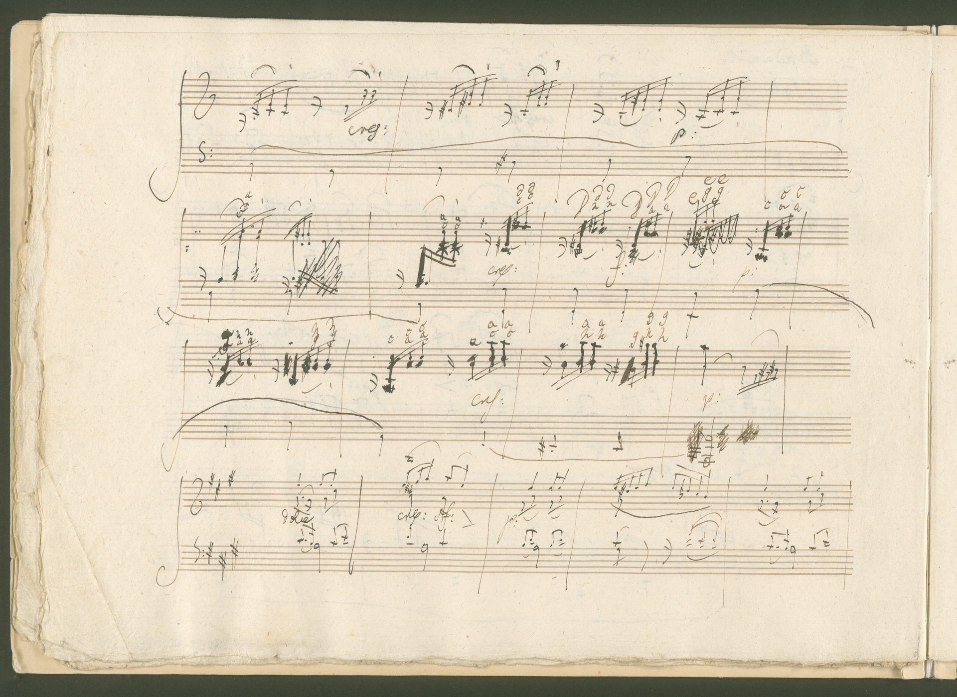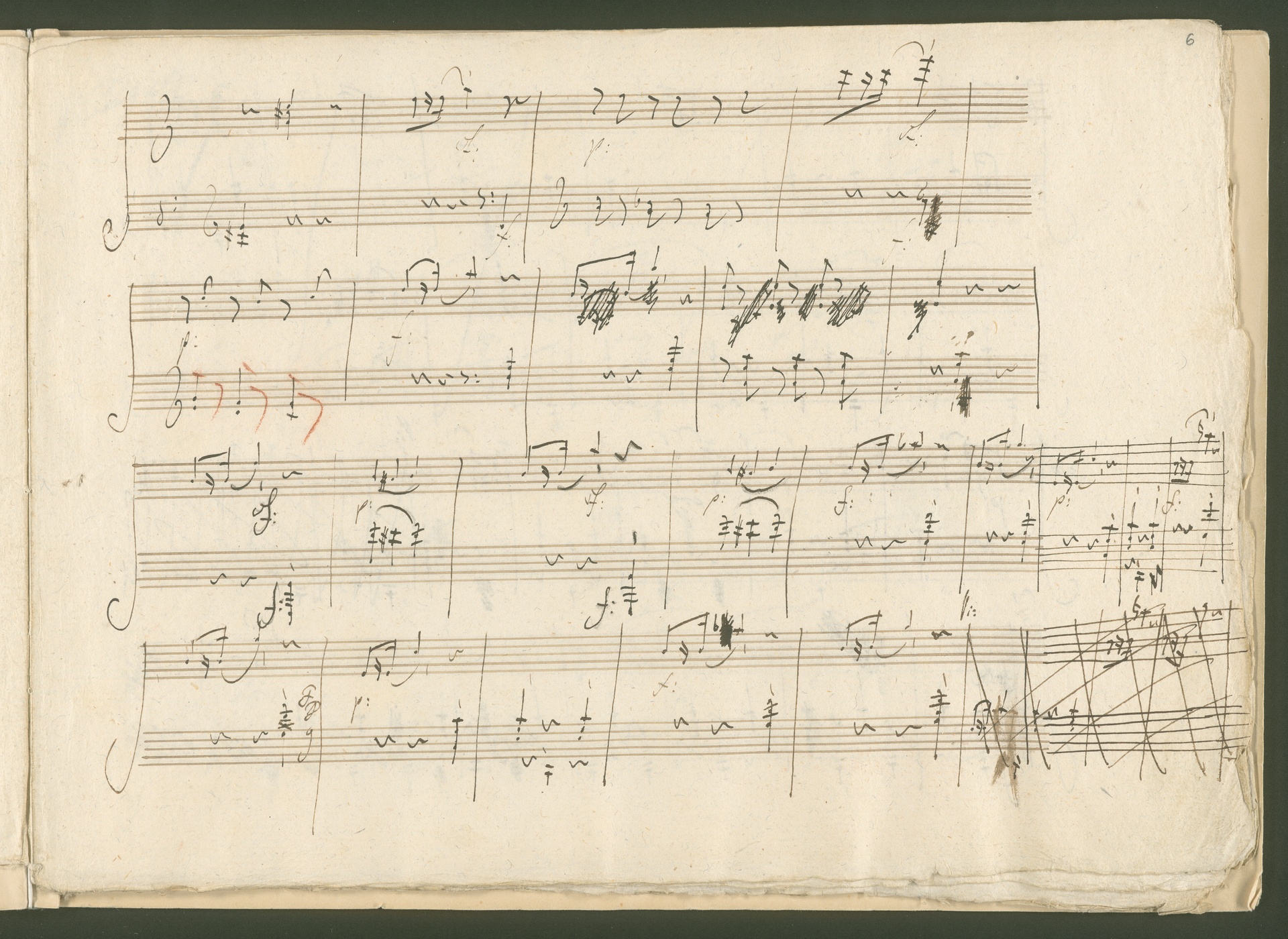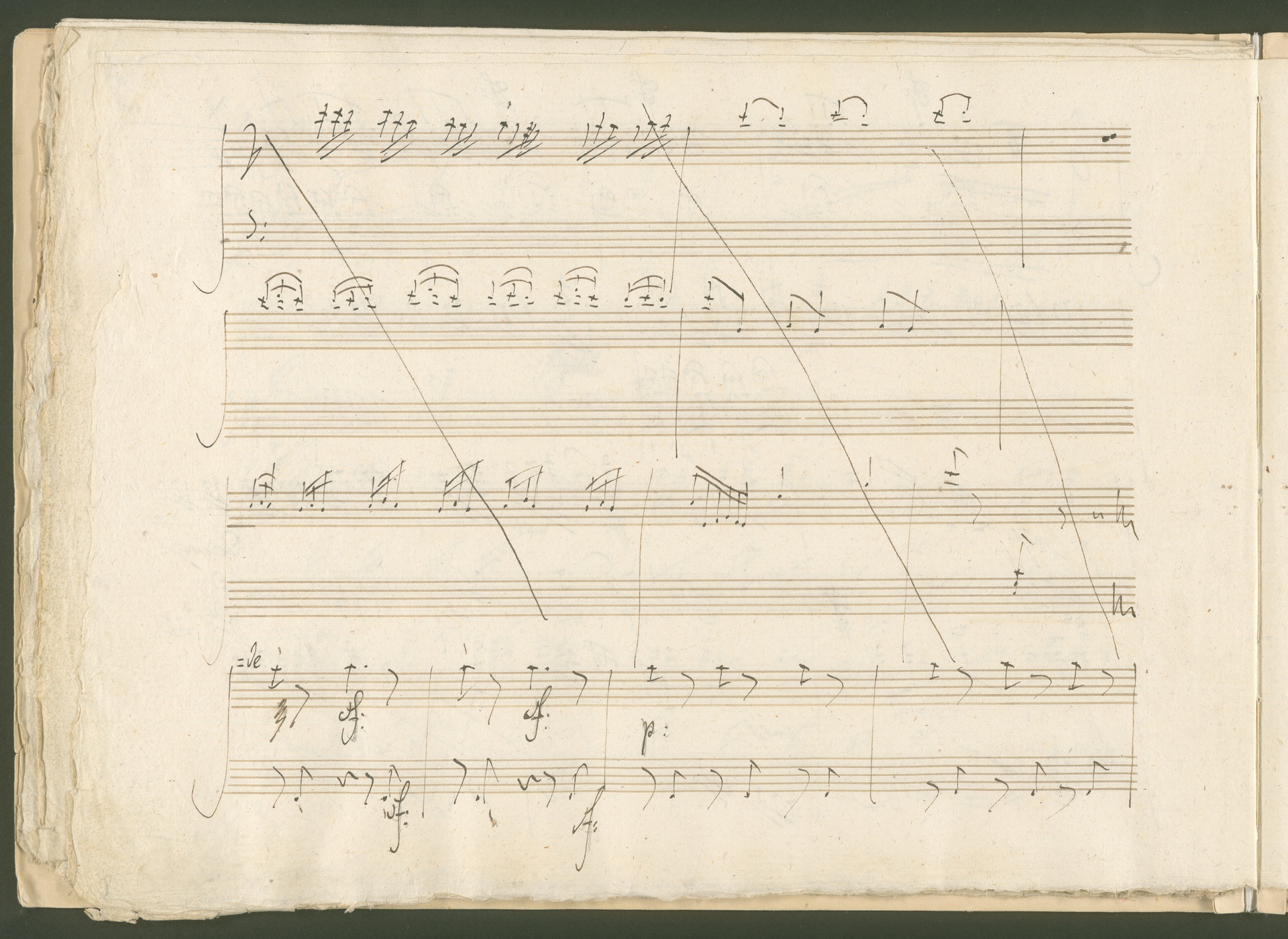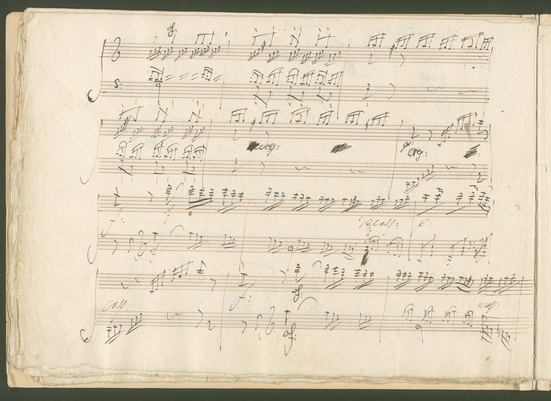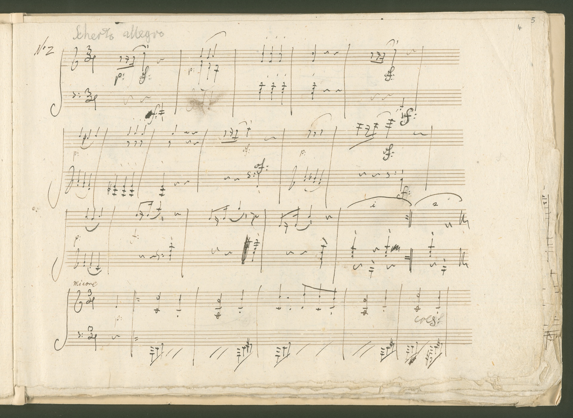 Beethovens sieben Bagatellen für Klavier op. 33 erschienen 1803 beim Kunst- und Industrie-Comptoir. Das Autograph - Beethoven fertigte es als Stichvorlage für die Wiener Verleger an - trägt allerdings die eigenhändige Jahreszahl "1782". In diesem Jahr war Beethoven 11 Jahre alt (er ist Mitte Dezember 1770 geboren)! Max Unger, ein Beethoven-Forscher Mitte des 20. Jahrhunderts, glaubte noch an die Autorität dieser Zahl. Unger vermutete, Beethoven habe musikalische Ideen aus seiner Kindheit verarbeitet und dies in der Jahreszahl dokumentiert. Die jüngere Beethoven-Forschung wiederlegt diese These. In vier Skizzenbüchern Beethoven finden sich Entwürfe zu den Bagatellen: "Landsberg 7", "Keßler", "Sauer" und "Wielhorsky". Alle vier Skizzenbücher verwendete Beethoven zweifelsfrei frühestens zwischen Sommer 1800 und spätestens Mai 1803. Die Zahl "1782" hat also nichts mit der Entstehung der Bagatellen zu tun. Die Lösung des Rätsels ist viel prosaischer: Beethoven hatte sich verschrieben. Falsche Zahlen und Zahlendreher sind bei ihm keine Seltenheit. Etliche Briefe und Musikhandschriften tragen unglaubwürdige Daten, die lange Zeit die Forscher verwirrten. Bei genauem Hinsehen erkennt man, daß im vorliegenden Autograph unter der Sieben bereits etwas anderes stand. Sicherlich wollte Beethoven die richtige Zahl "1802" notieren und irrte sich, ohne es zu bemerken. Den gleichen Fehler machte er übrigens auch bei einem Brief, den er am 23. Januar 1802 an die Gräfin Susanna Guicciardi schrieb (BGA 77). Auch hier notierte er "1782", das Jahr ist jedoch aus dem Zusammenhang sicher auf 1802 bestimmbar. (J.R.)