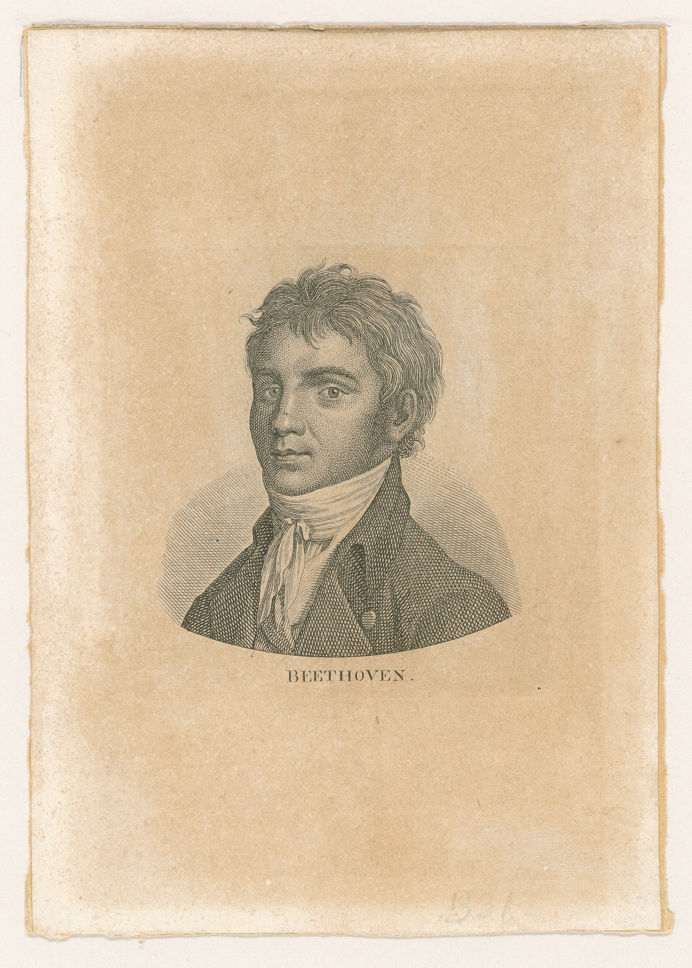 Ludwig van Beethoven - Kupferstich von Ernst Ludwig Riepenhausen nach einer Zeichnung von Gandolph Ernst Stainhauser von Treuberg aus dem Jahr 1801, Göttingen, erste Hälfte 19. Jahrhundert