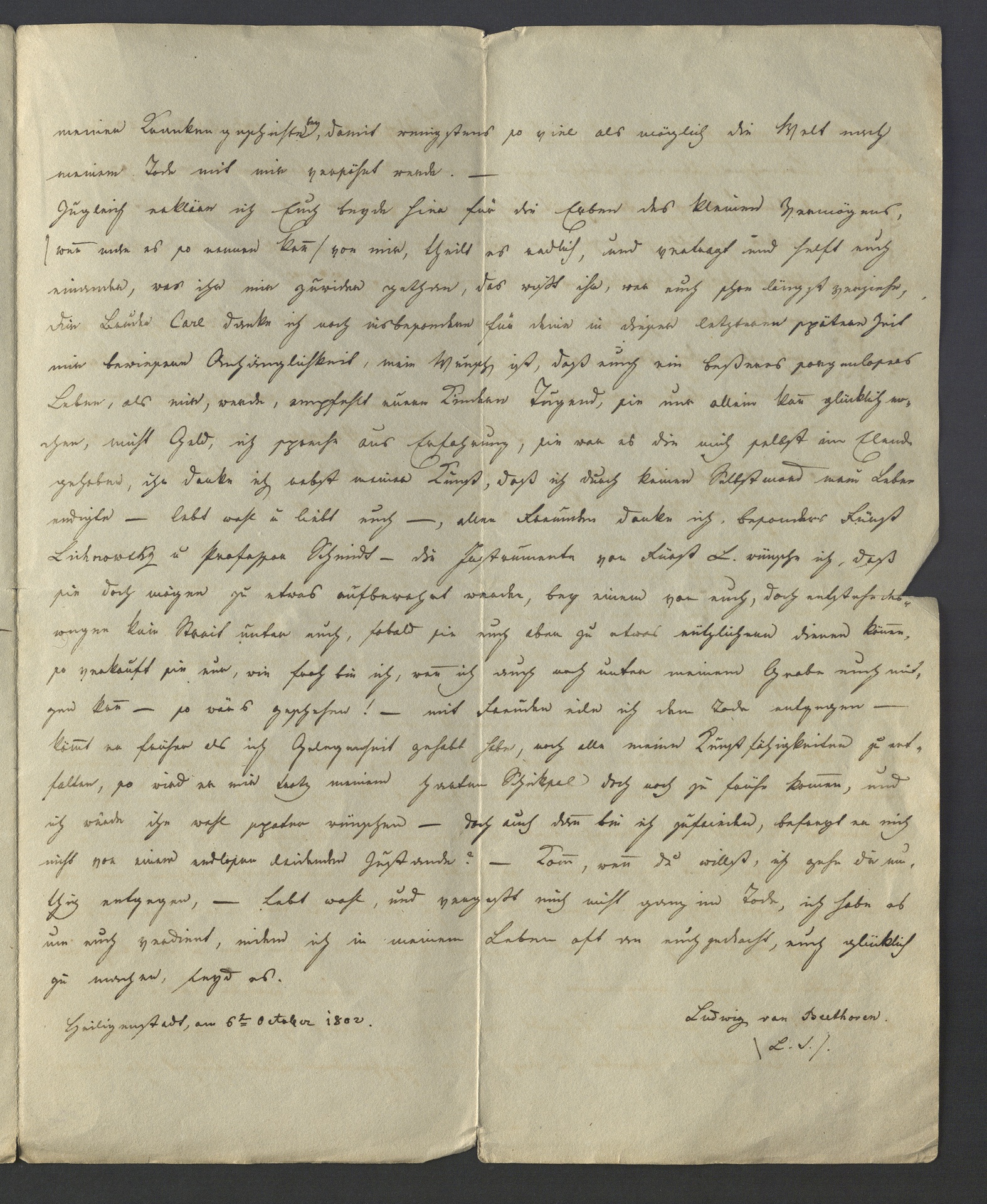 Ludwig van Beethoven, Brief an seine Brüder Kaspar Karl und Johann, Heiligenstadt, vom 6. und 10. Oktober 1802 (Heiligenstädter Testament), Abschrift