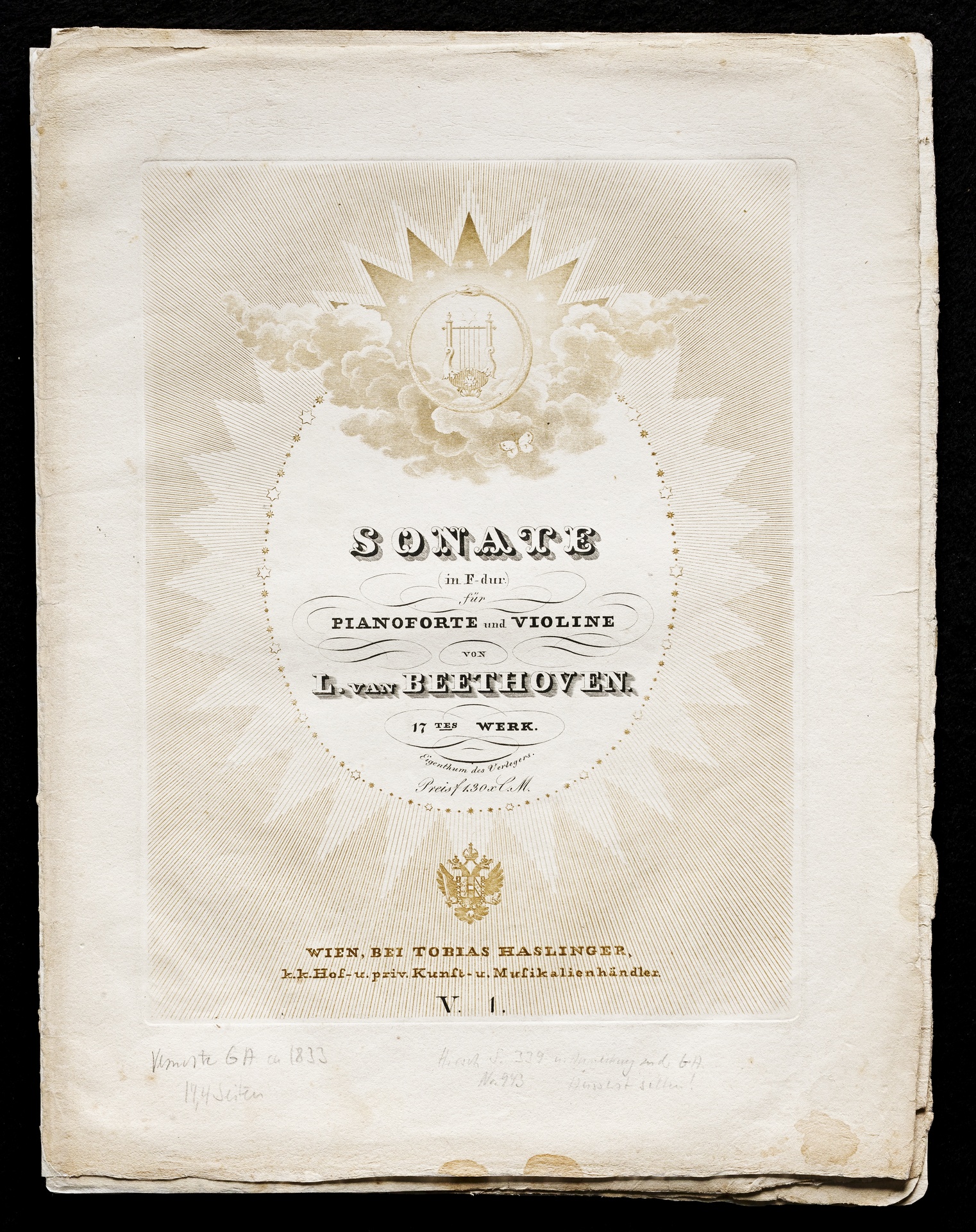 Ludwig van Beethoven, Sonate für Klavier und Horn oder Violoncello (F-Dur) op. 17, Bearbeitung für Klavier und Violine, Stimmen, Haslinger, 5,1