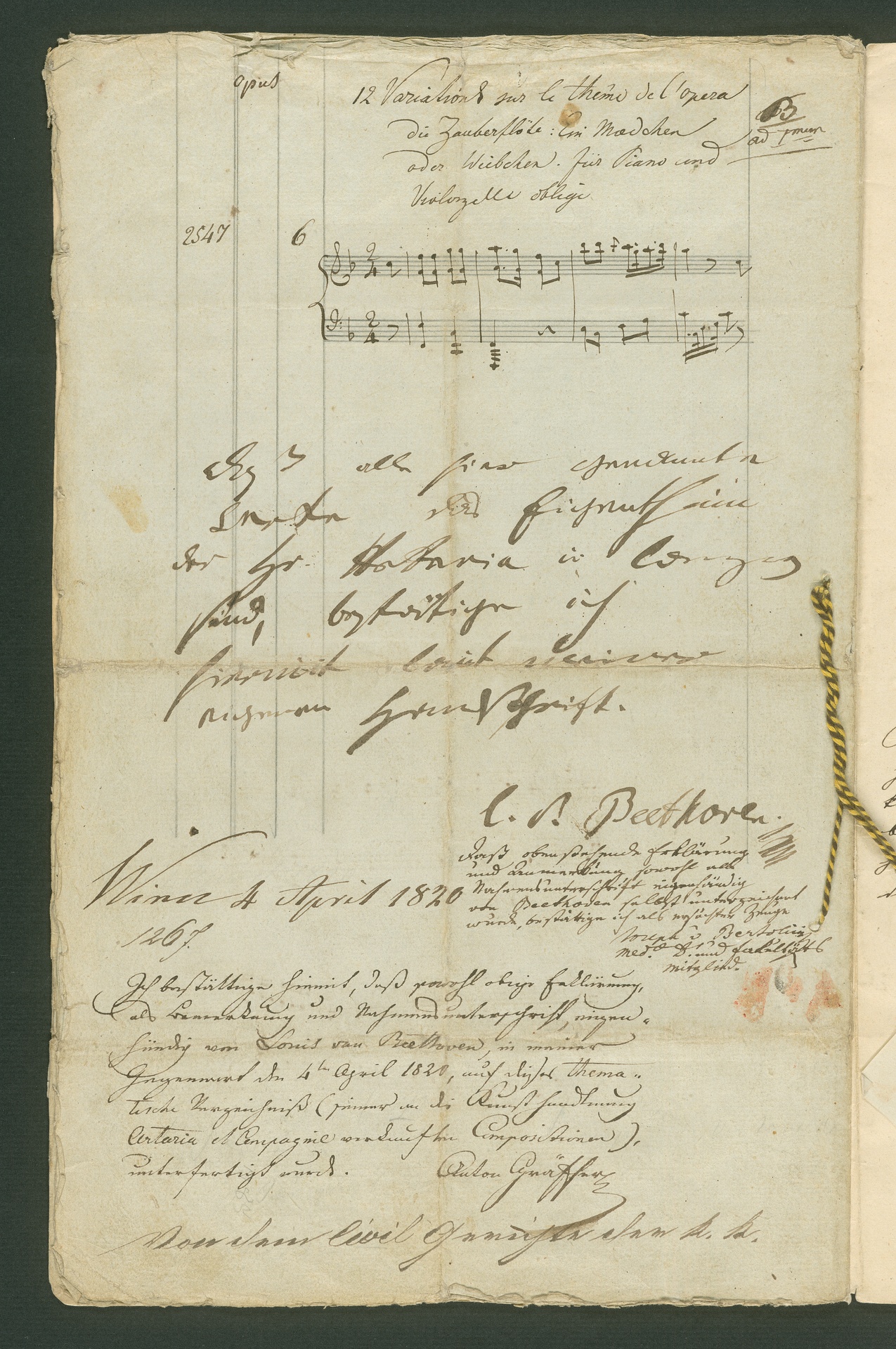 Ludwig van Beethoven, Eigentumsbestätigung für Artaria & Comp. über alle bis 1820 im Verlag erschienenen Werke, Wien, 4. April 1820