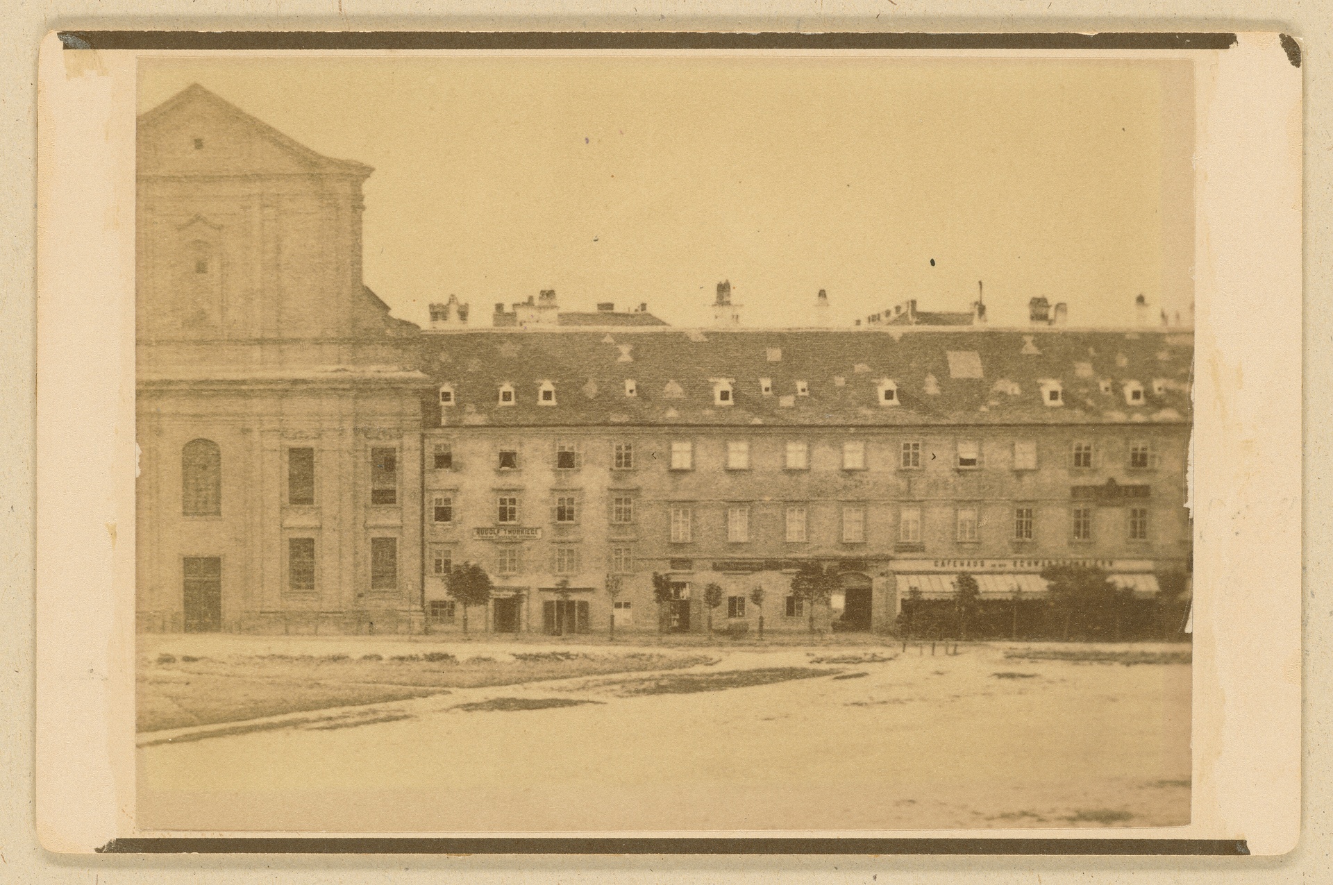Wien, Alsergrund, Schwarzspanierstraße, Kirche und Schwarzspanierhaus, - Fotografie von Franz Xaver Massak, 1873/1874