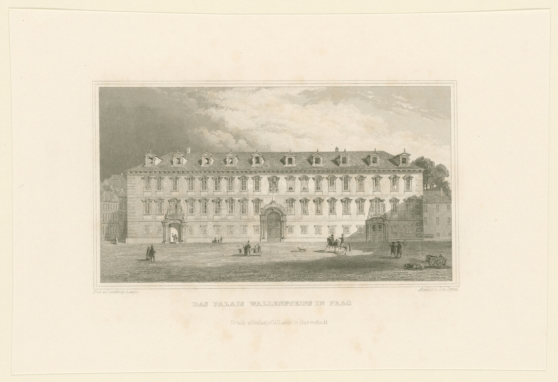 Das Palais Waldstein in Prag, 1841 - Stich von Johann Poppel nach einer Zeichnung von Ludwig Lange, gedruckt von Gustav Georg Lange, Darmstadt, erschienen bei Kronberger & Rziwnatz, Prag, 1841