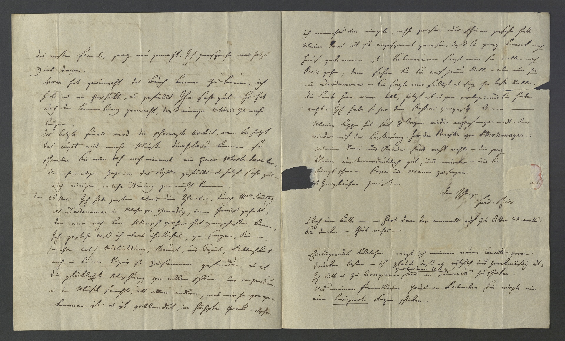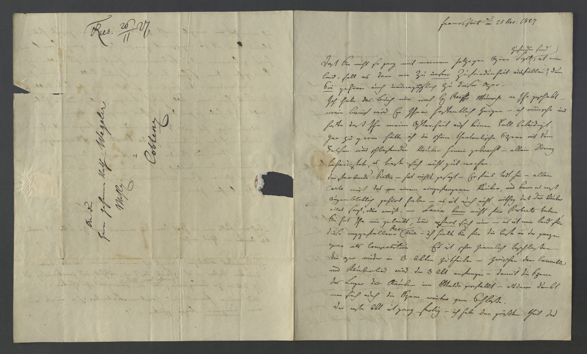 Ferdinand Ries, Brief an Franz Gerhard Wegeler in Koblenz, Frankfurt am Main, 25. November 1827, Autograph