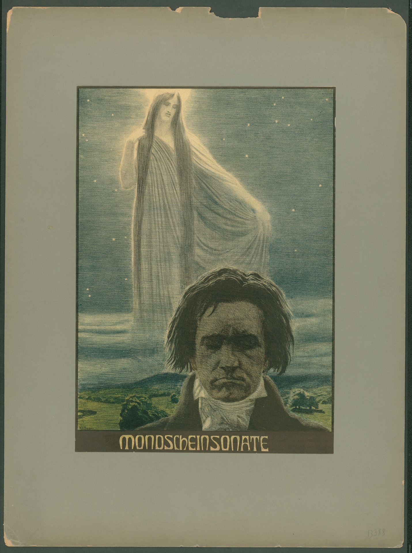 "Mondscheinsonate" - Lithographie von Franz Stassen nach einer eigenen Zeichnung oder einem Gemälde, Berlin, 1904