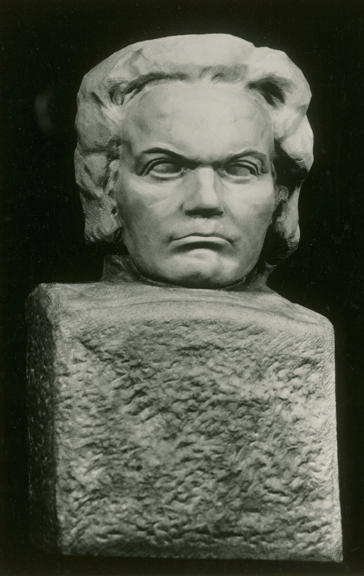 Ludwig van Beethoven, Büste - Plastik von Rudolf Saudek, von ca. 1928, im zweiten Weltkrieg zerstört, Fotografie von František Illek, Prag, um 1957?