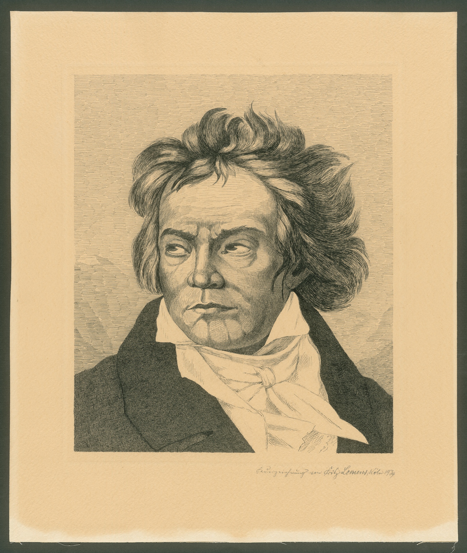 Ludwig van Beethoven - Federzeichnung von Fritz Lomens nach einem Gemälde von Ferdinand Schimon aus dem Jahr 1819, Köln, 1934