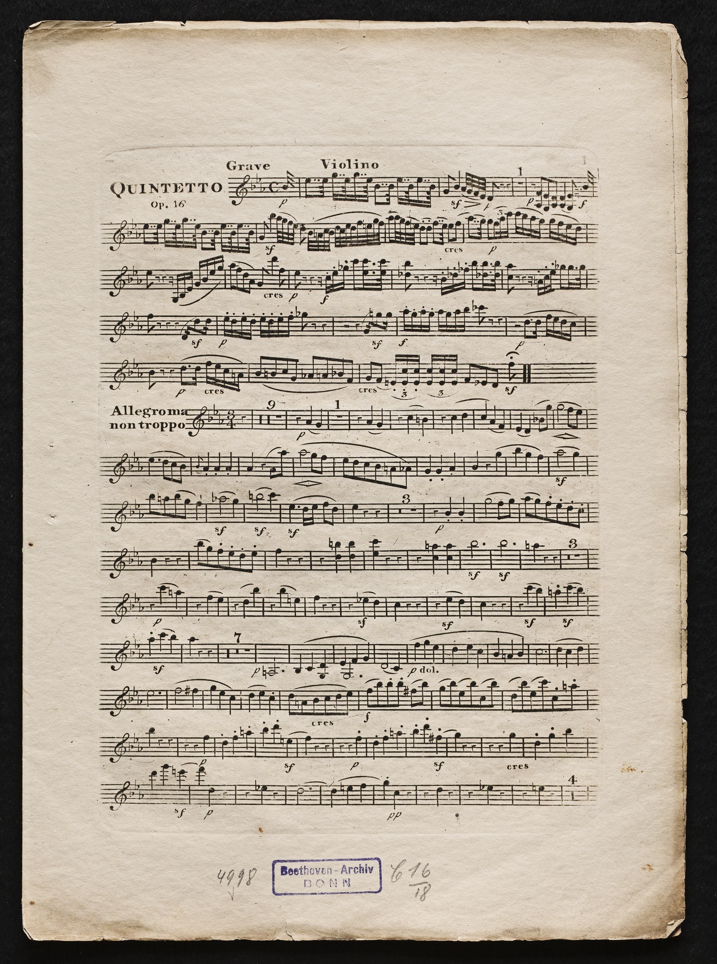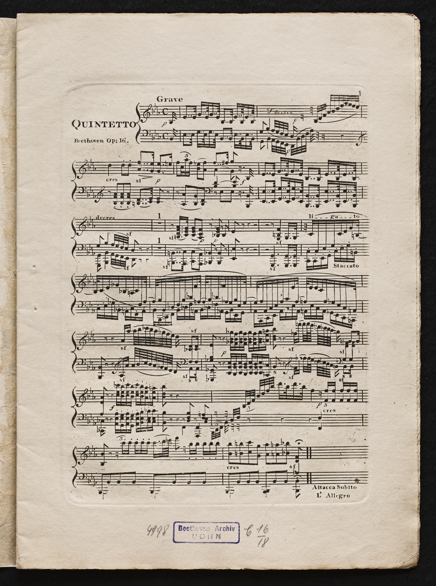 Ludwig van Beethoven, Quintett für Klavier, Oboe, Klarinette, Fagott und Horn (Es-Dur) und Fassung für Klavier, Violine, Viola, Violoncello op. 16, Stimmen, Preston