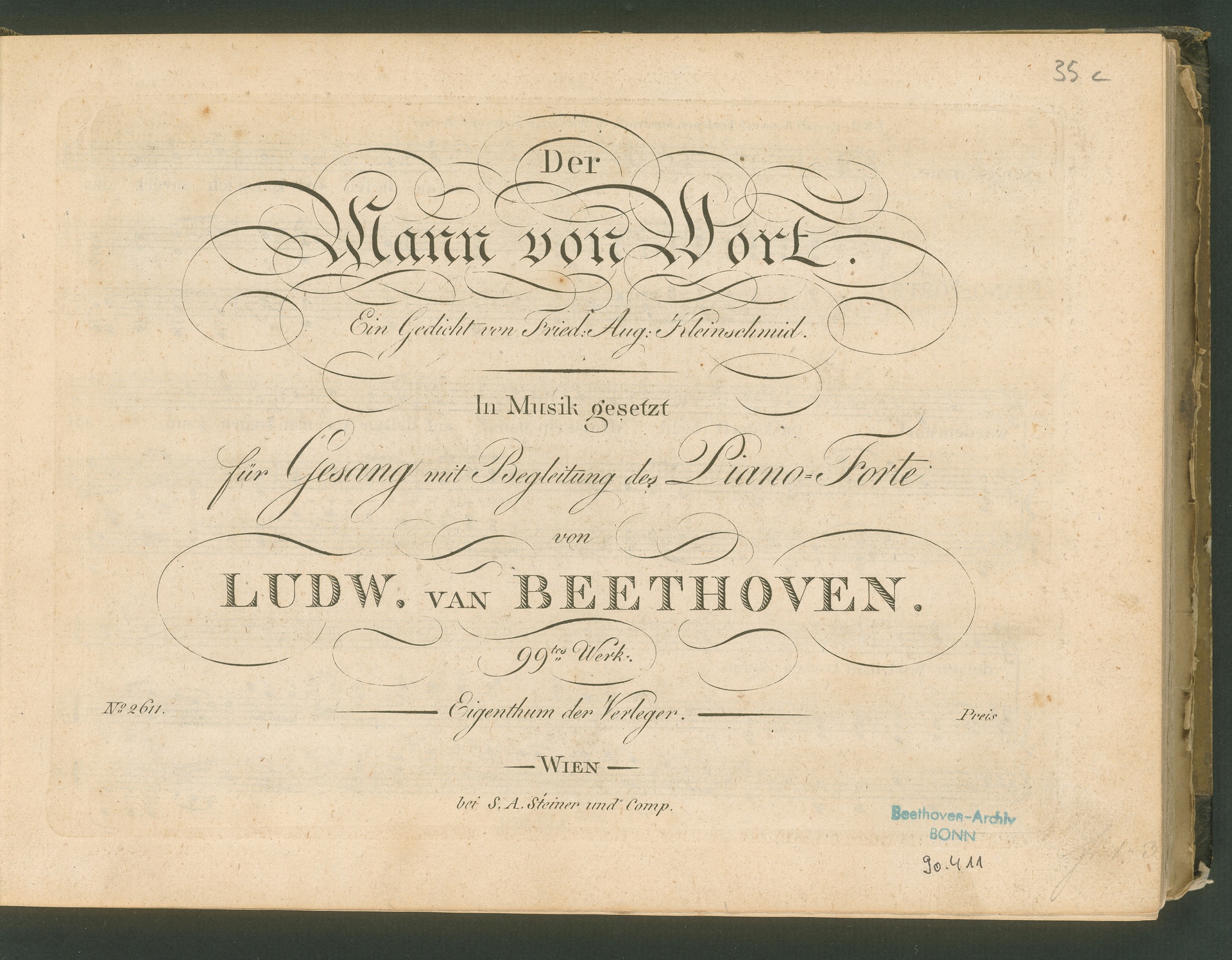 Ludwig van Beethoven, "Der Mann von Wort", Lied für Singstimme und Klavier op. 99, Steiner, 2611