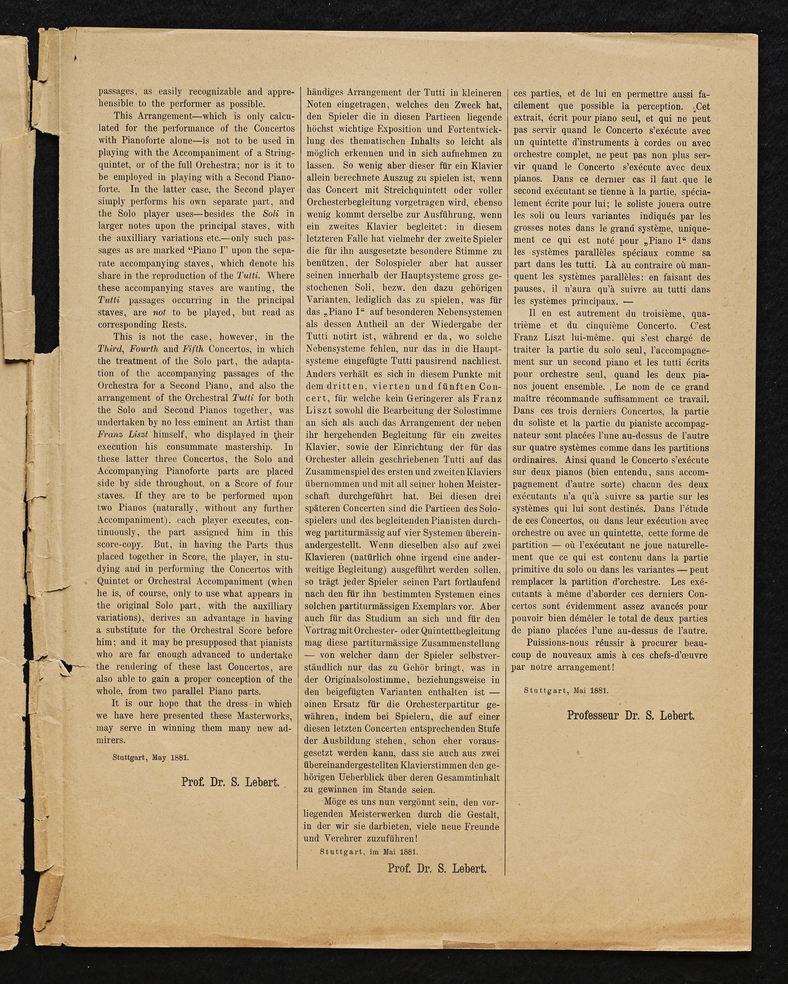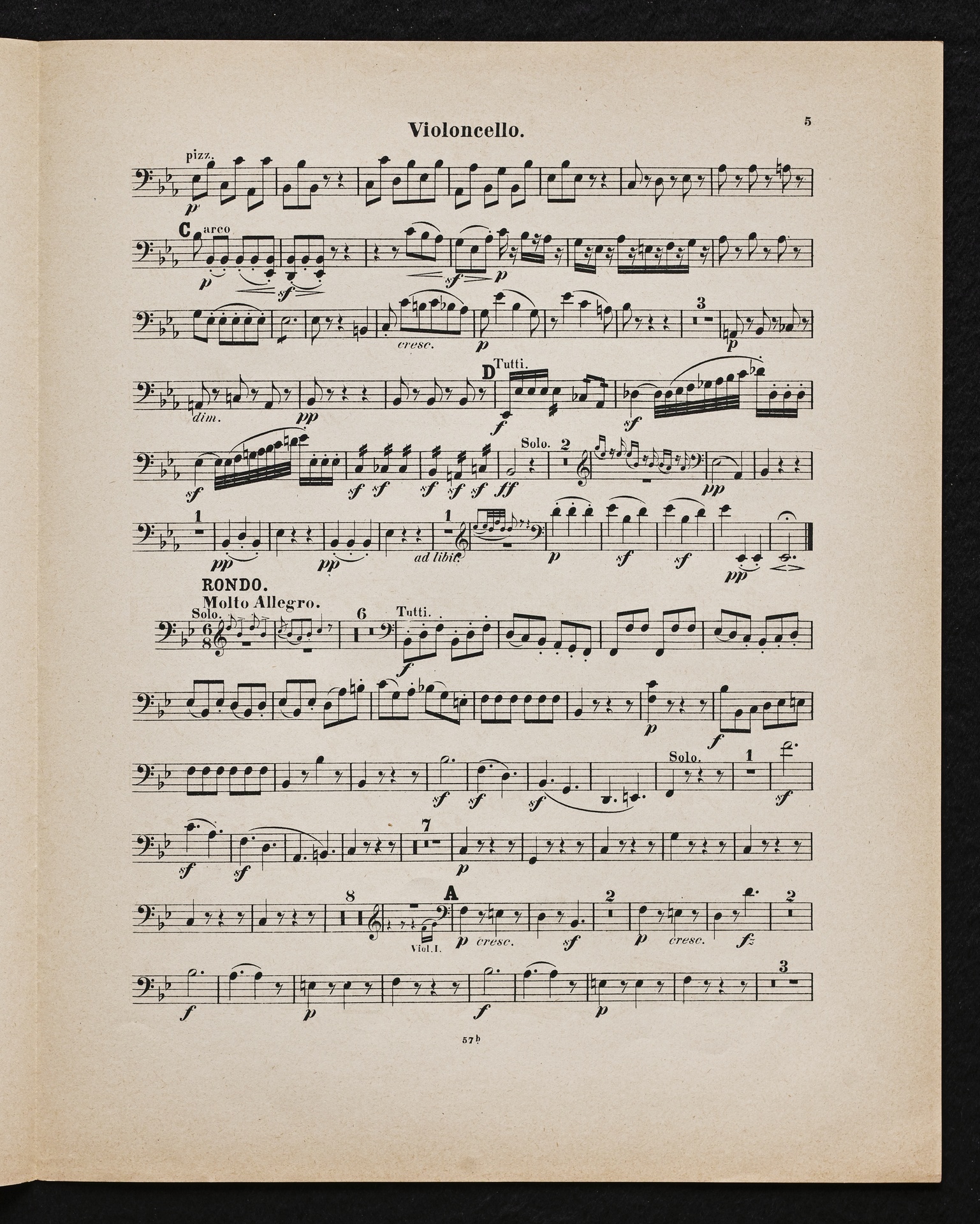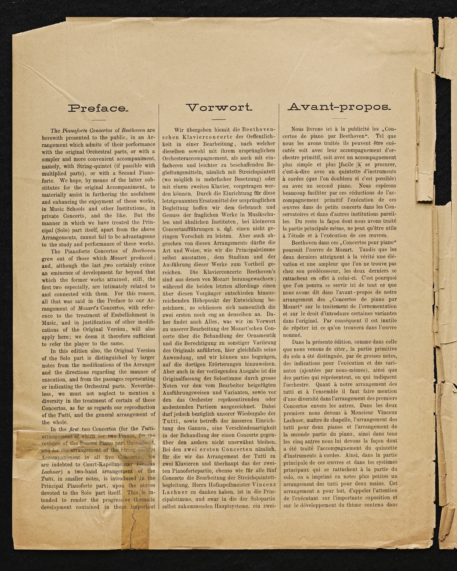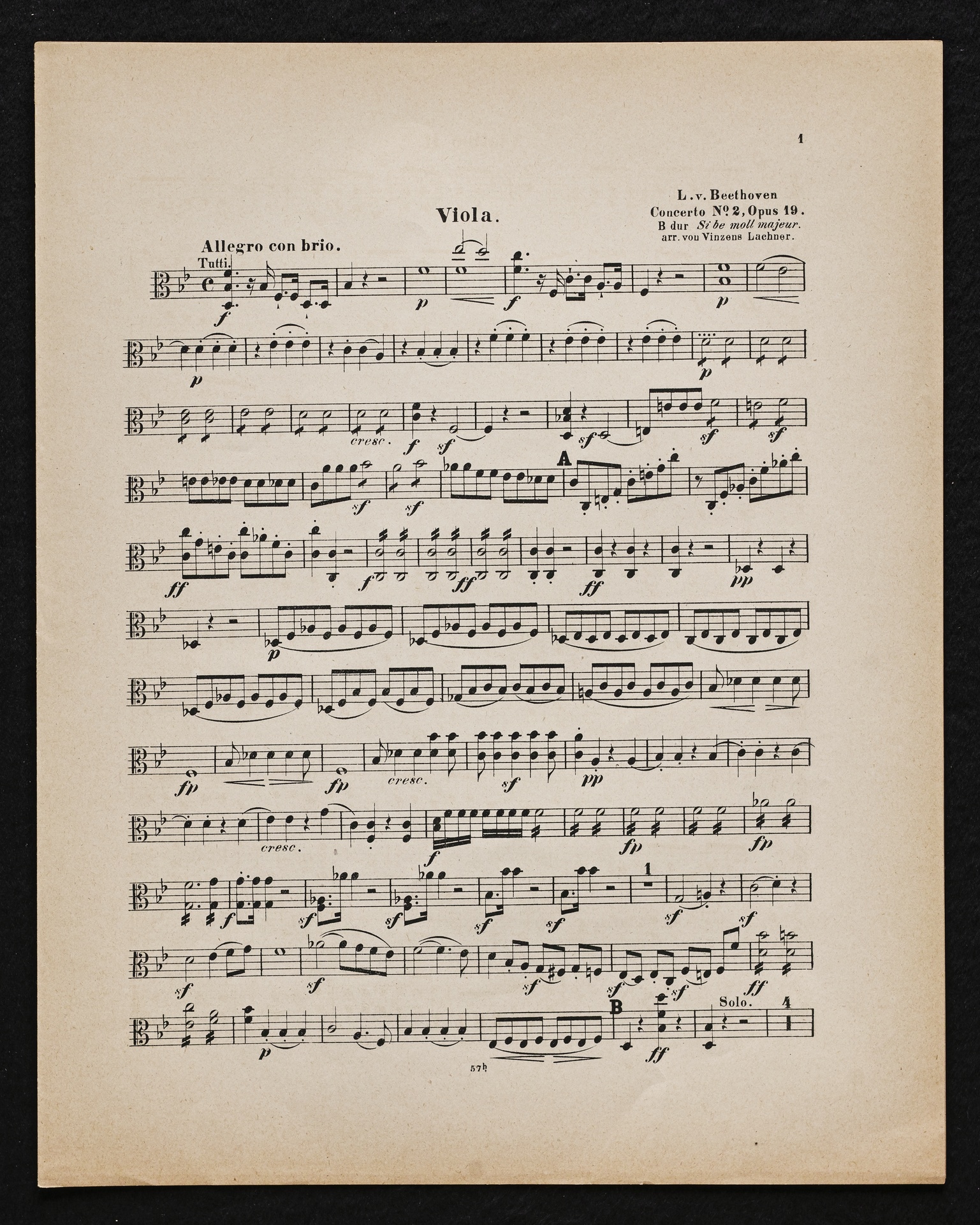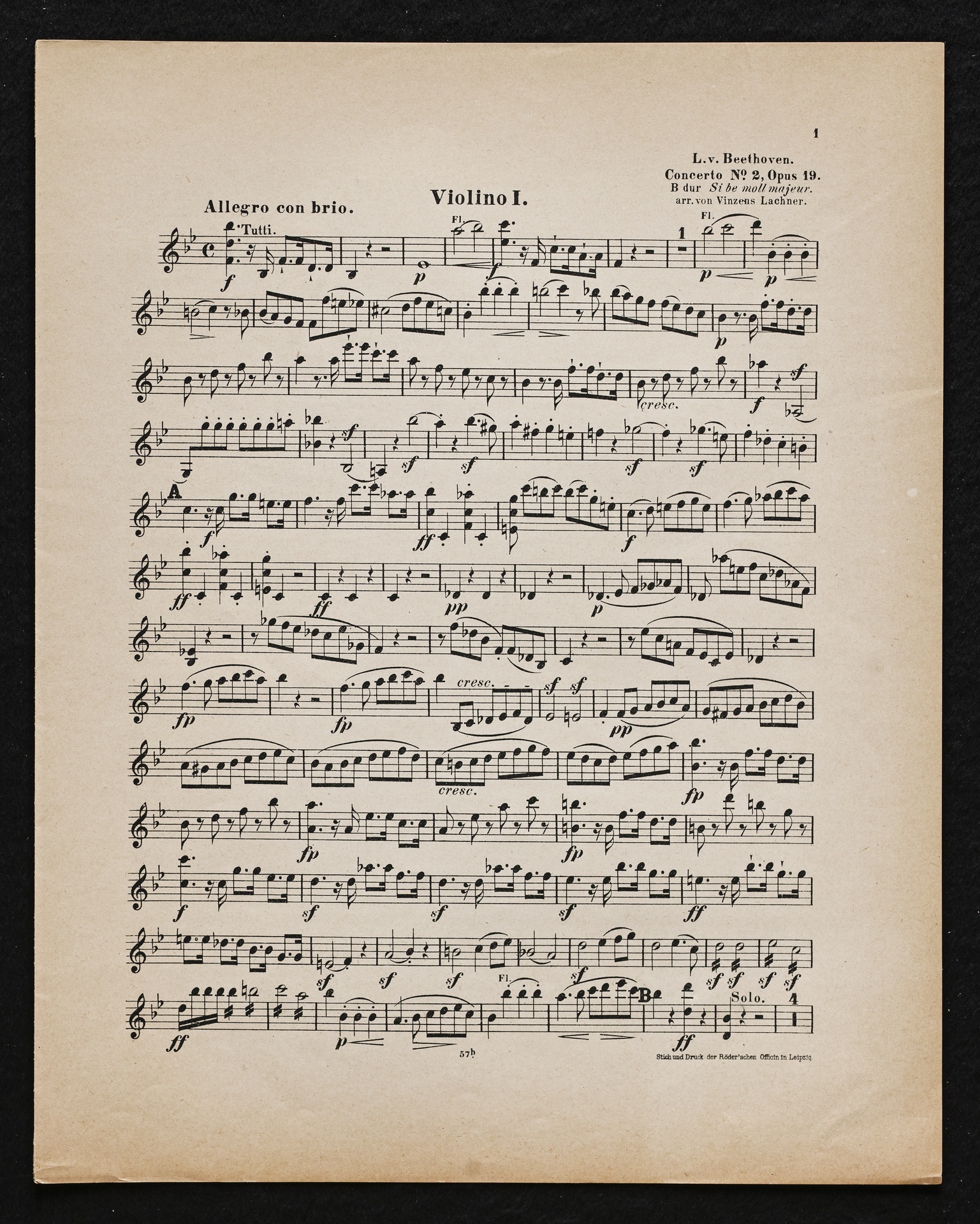 Ludwig van Beethoven, Konzert für Klavier und Orchester Nr. 2 (B-Dur) op. 19, Bearbeitung für Klavier, 2 Violinen, Viola, Violoncello und Kontrabass von Sigmund Lebert und Vincenz Lachner, Streicherstimmen, Cotta, 47