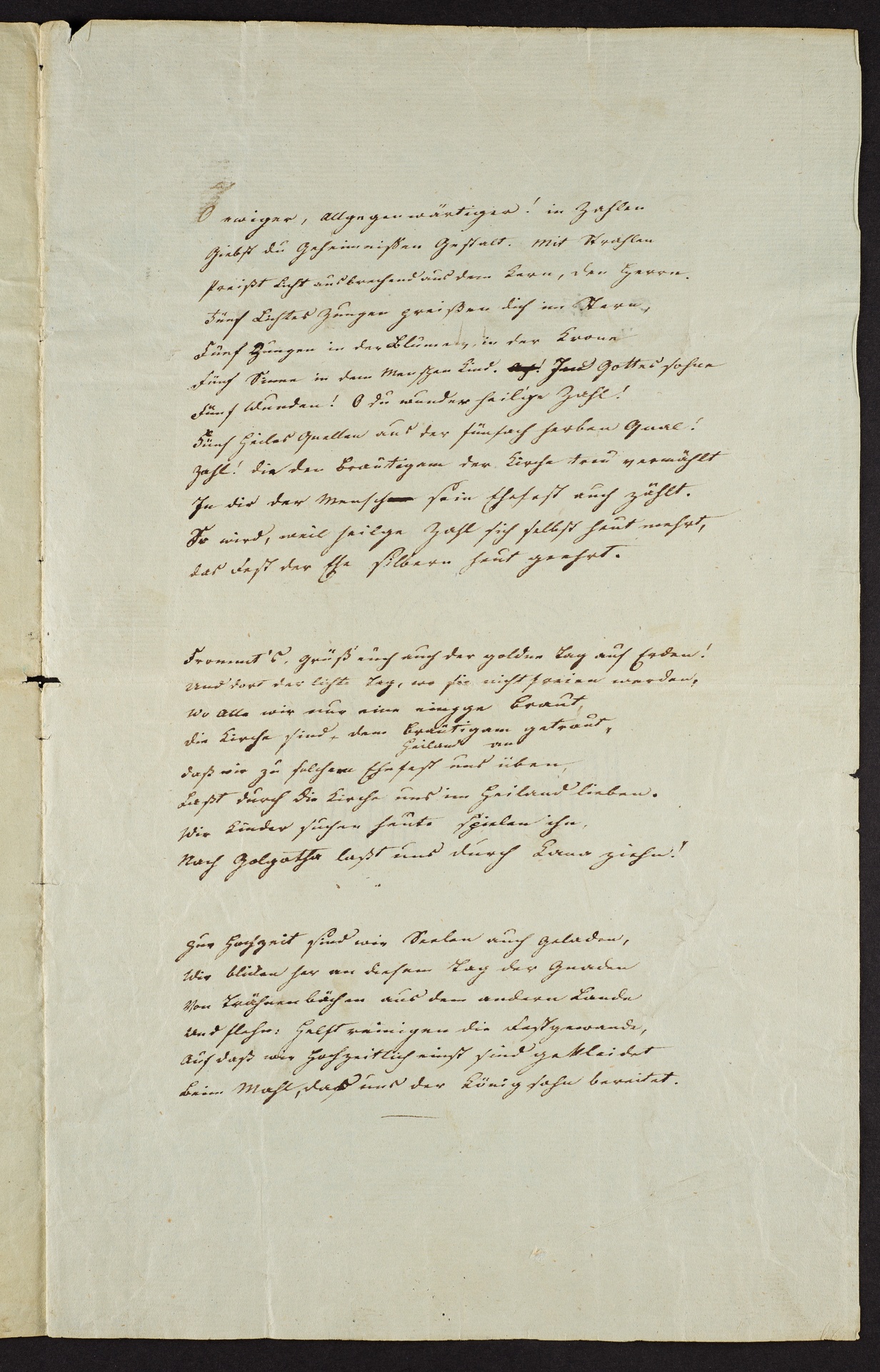 Clemens Brentano, Gedicht "O ewiger, Allgegenwärtiger!" zur Silberhochzeit von Franz und Antonie Brentano am 23. Juli 1823, Autograph, Fragment