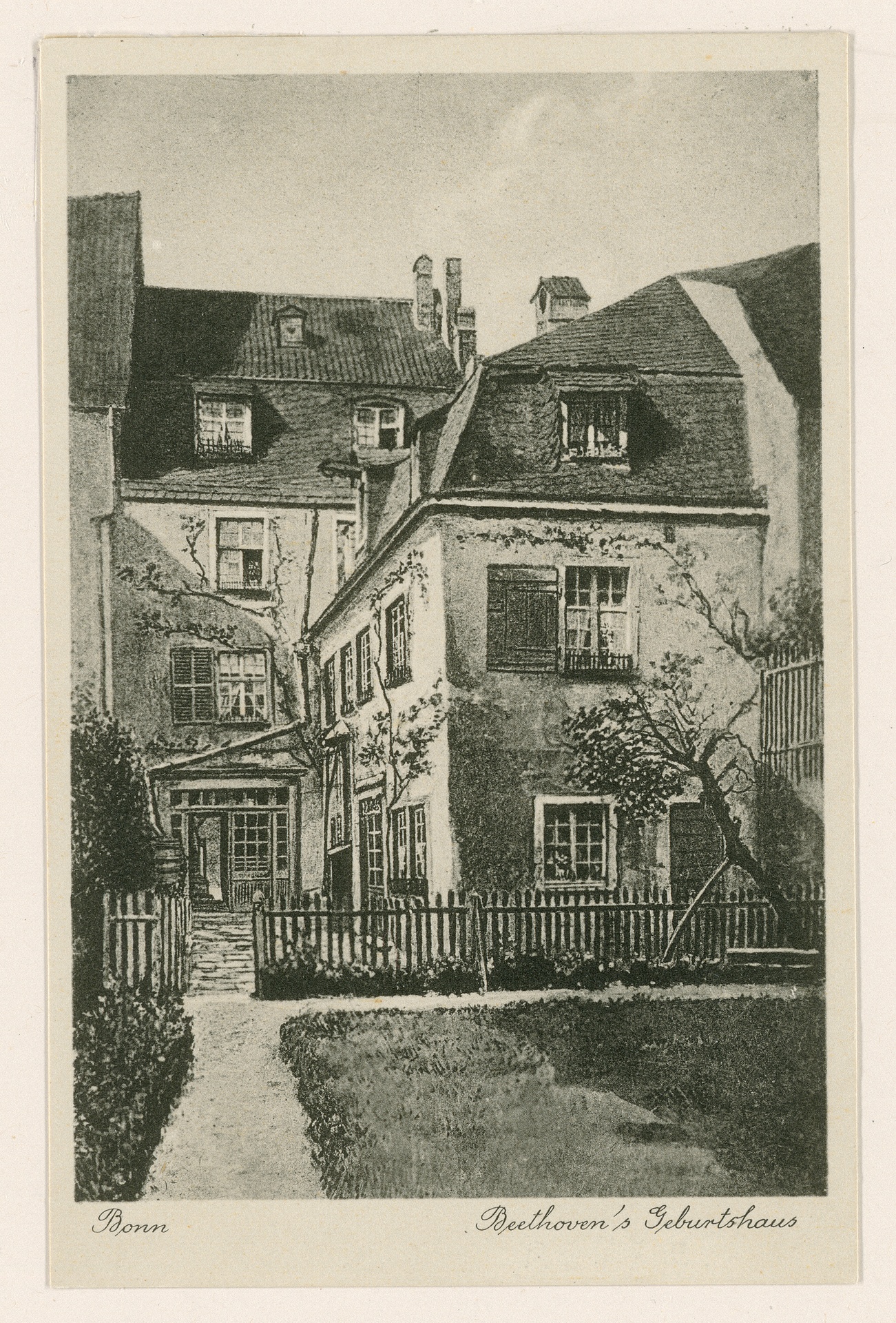 Beethoven-Haus, Bonn, Bonngasse, Gartenansicht des Beethoven-Hauses im Sommer oder Herbst - anonymes Aquarell, entstanden um 1911, Postkarte des Verlages Köhler, Bonn, um 1920-1935
