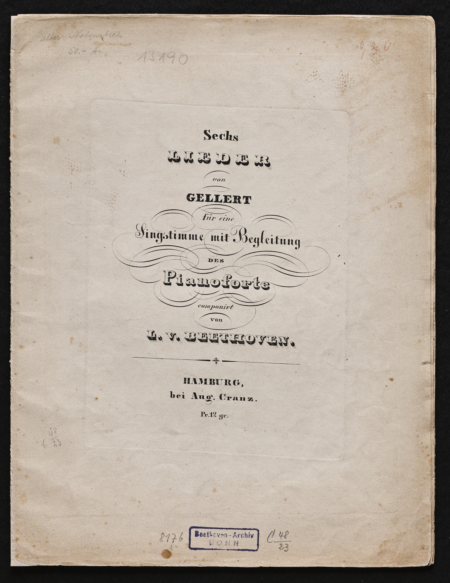Ludwig van Beethoven, Lieder für Singstimme und Klavier nach Gedichten von Christian Fürchtegott Gellert op. 48, 1-6, Cranz