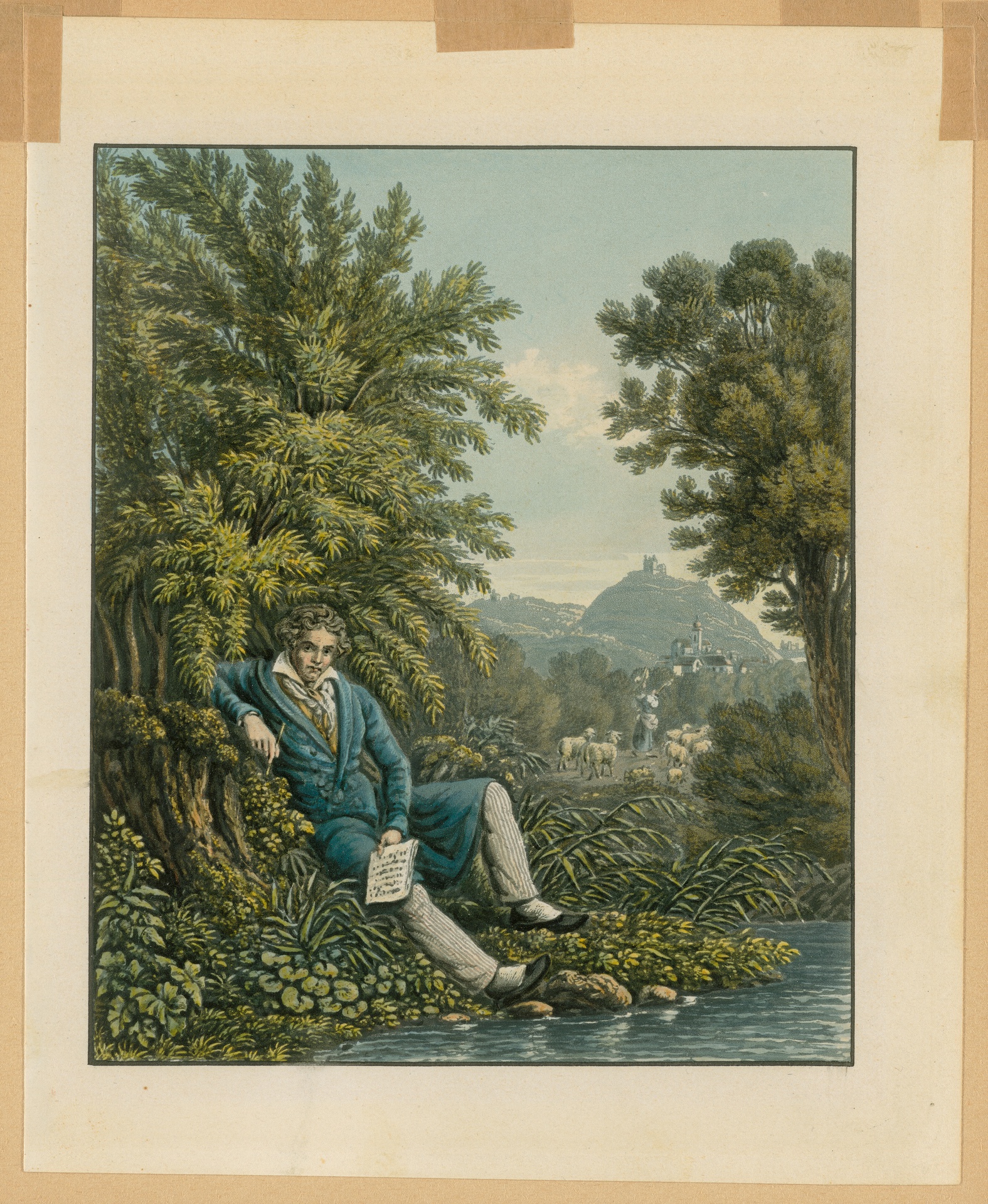 Ludwig van Beethoven komponiert die Pastorale - Aquatintaradierung nach einer Zeichnung von Franz Hegi, Zürich, um 1839