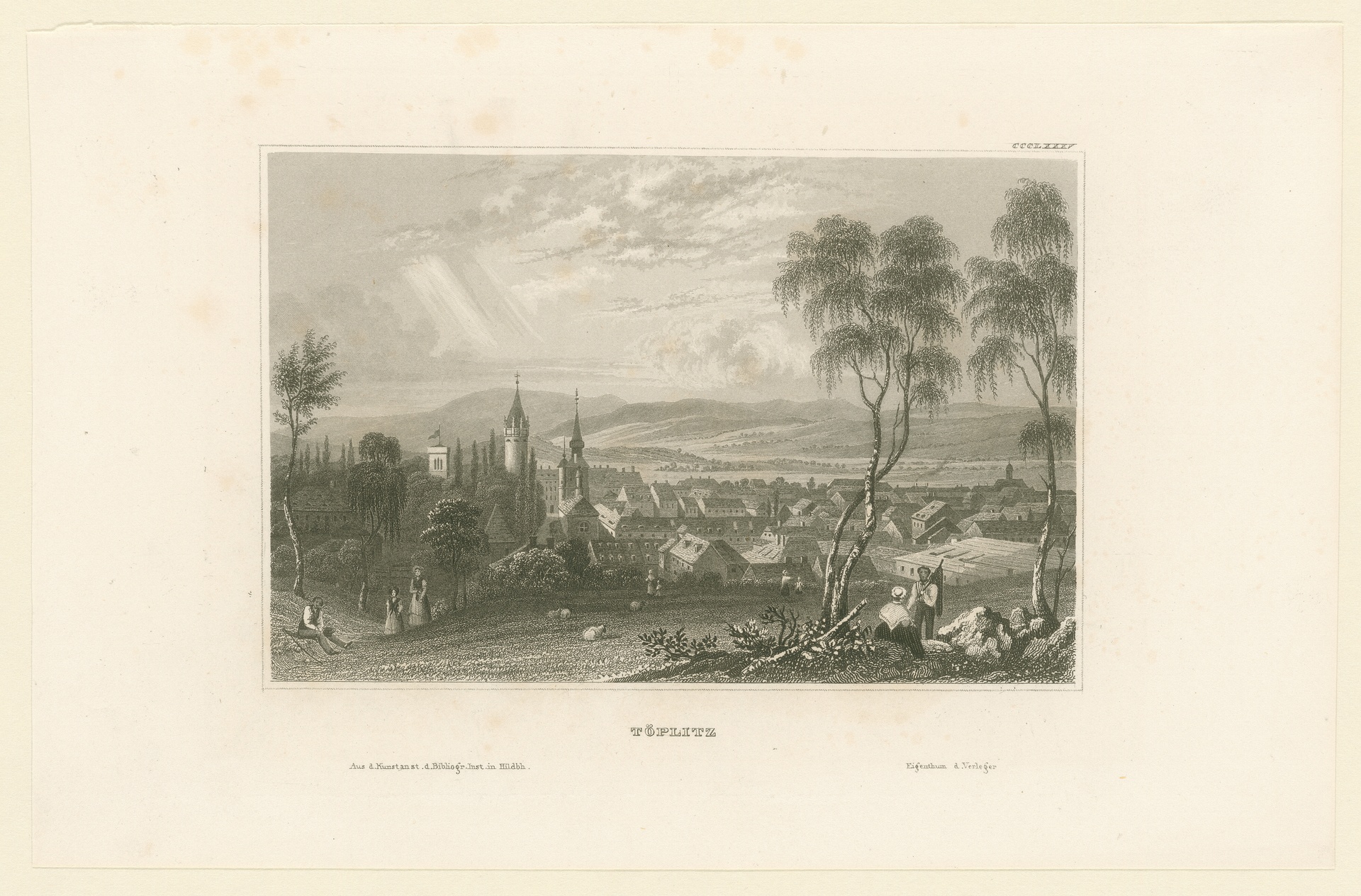 Teplitz, Mitte 19. Jahrhundert - Anonymer Stahlstich, veröffentlicht vom Verlag Joseph Meyer