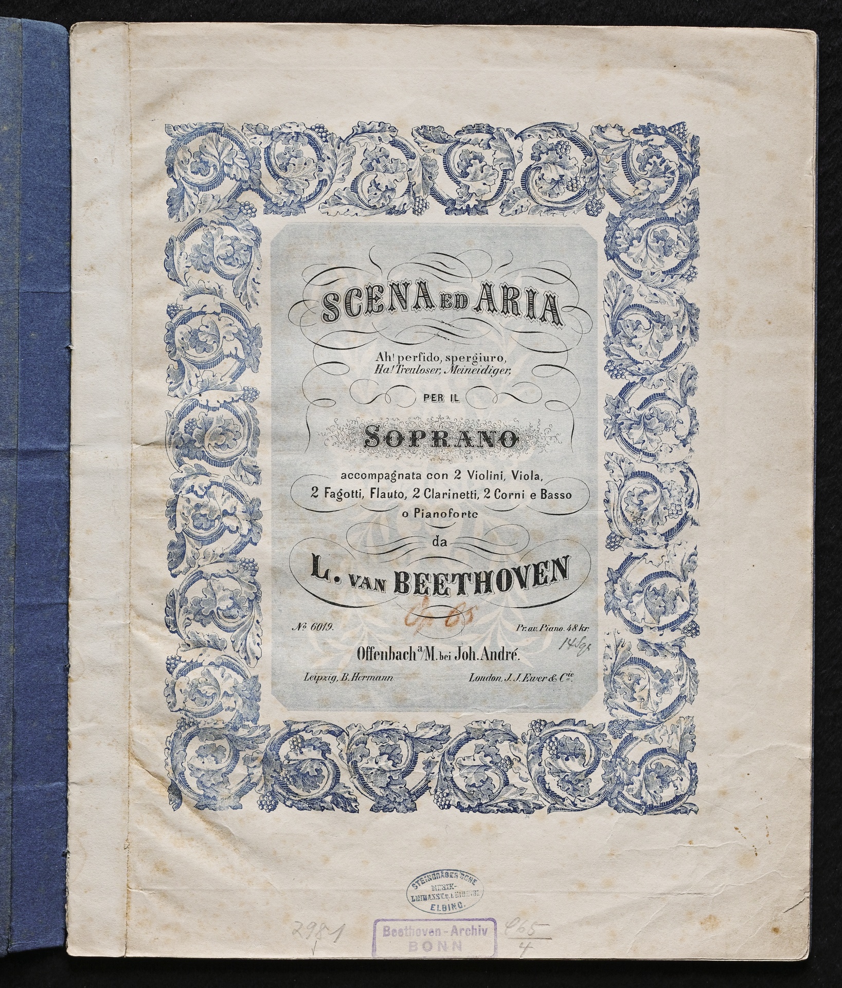 Ludwig van Beethoven, "Ah perfido!", Szene und Arie für Sopran und Orchester op. 65, Klavierauszug, André, 6019