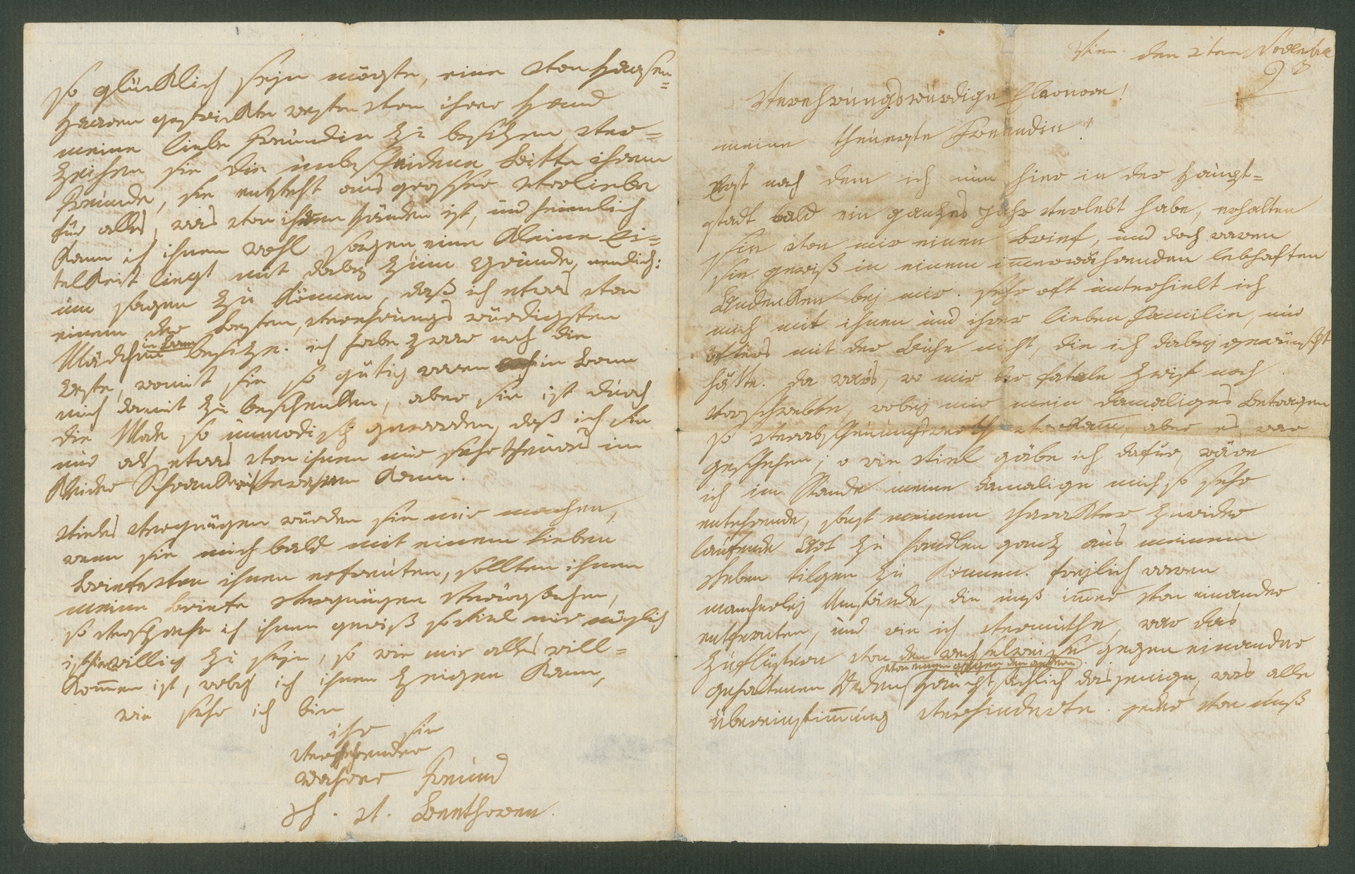 Ludwig van Beethoven, Brief an Eleonore von Breuning in Bonn, Wien, 2. November 1793, Autograph