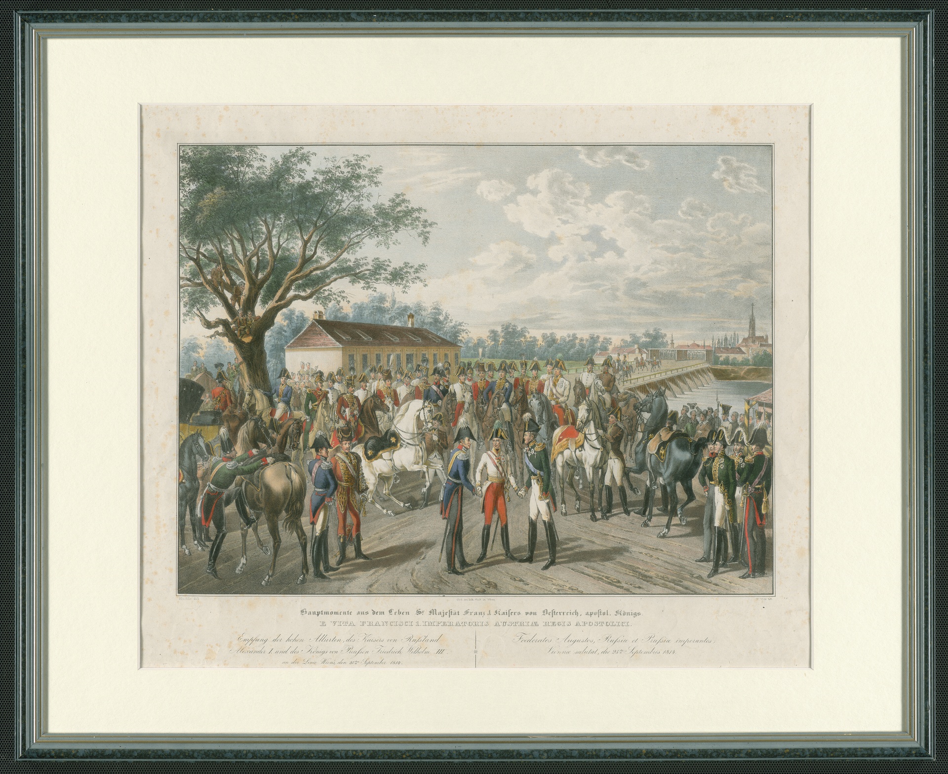 Der Einzug der alliierten Monarchen in Wien 1814 - Kolorierte Lithographie von Franz Wolf nach einer Zeichnung von Johann Nepomuk Hoechle