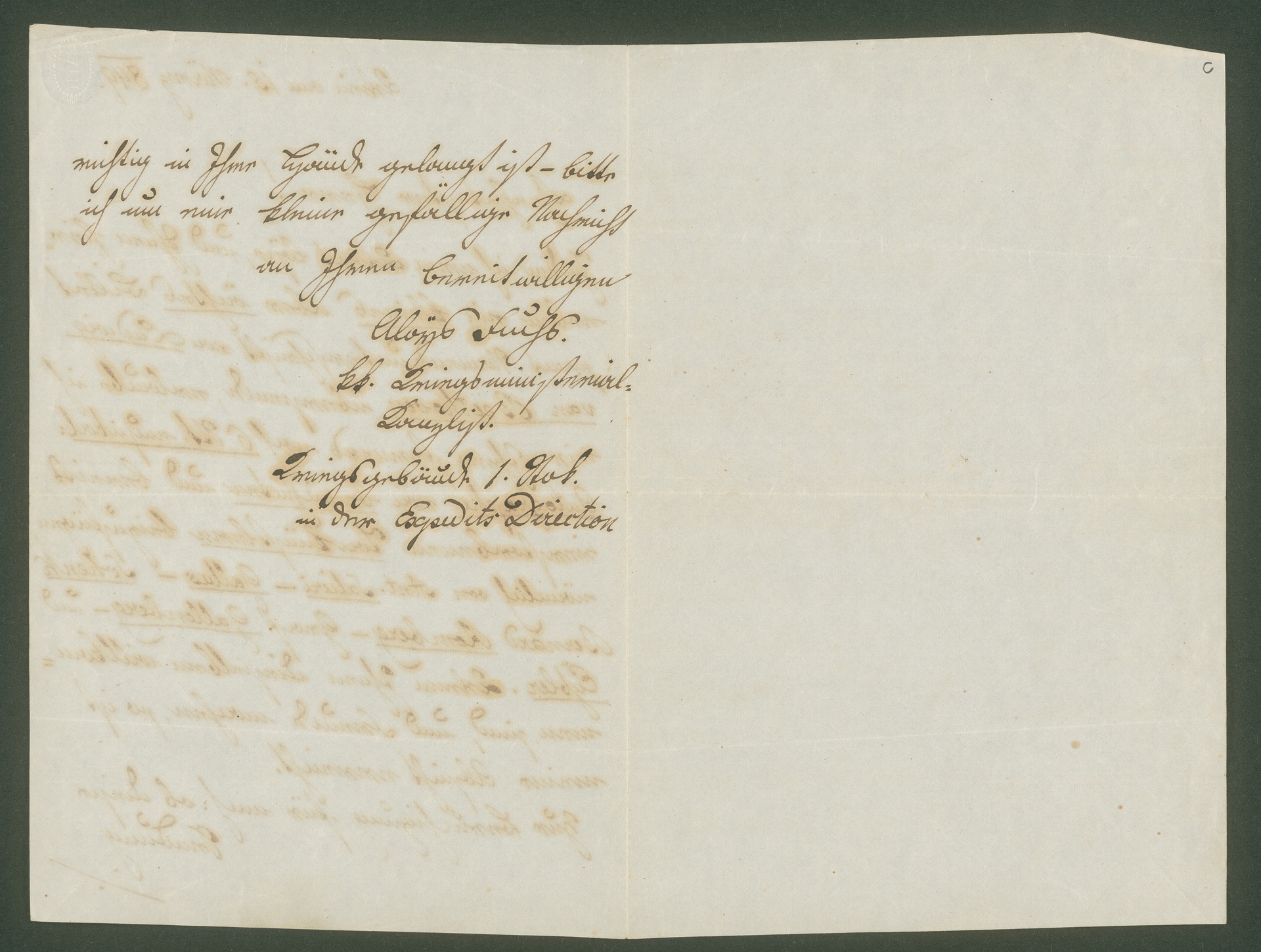 Aufgrund der Überlieferung liegt bei dem Billet ein Brief von Aloys Fuchs, der hier als Bild 2 und 3 mitgescant ist.