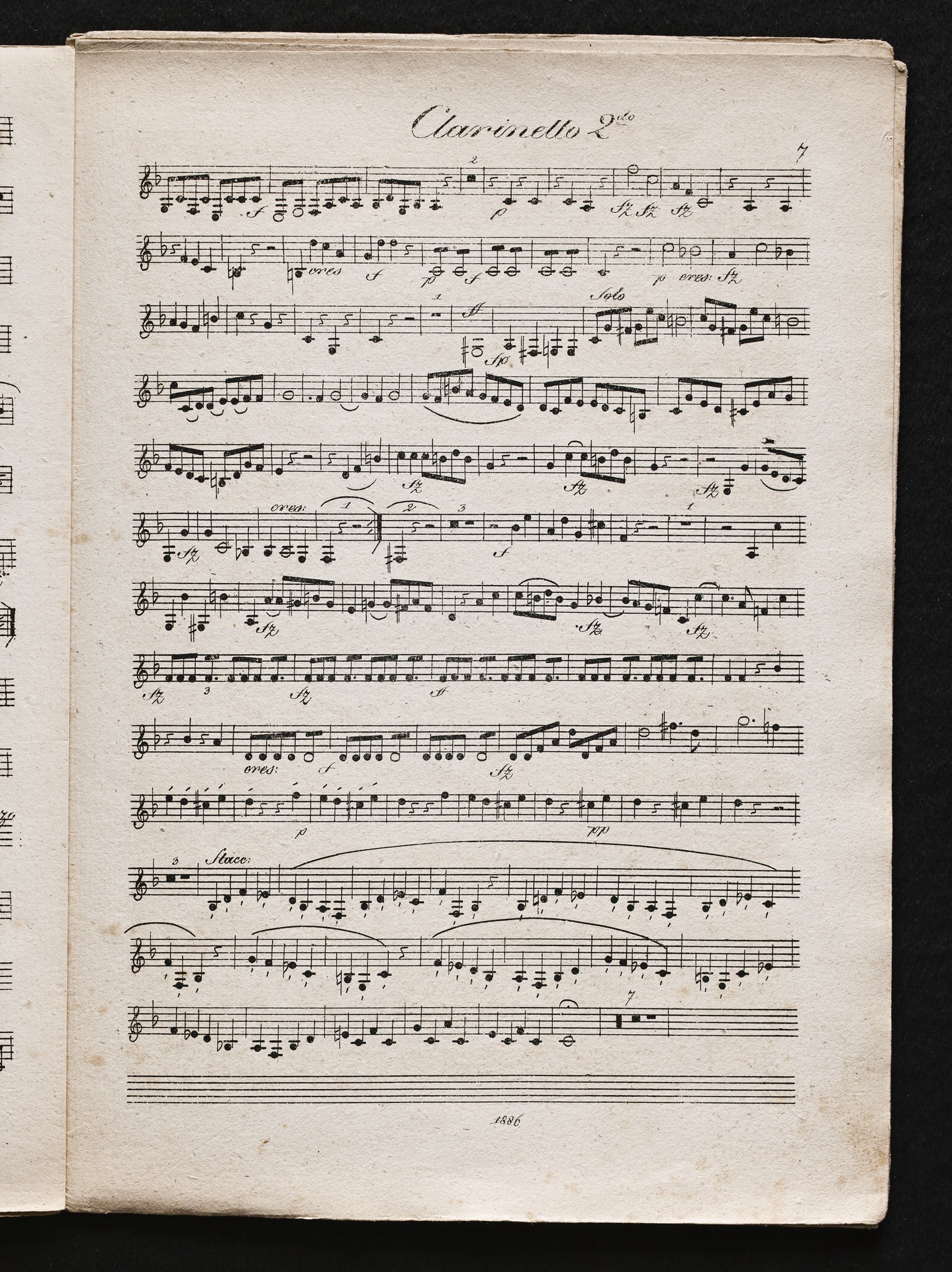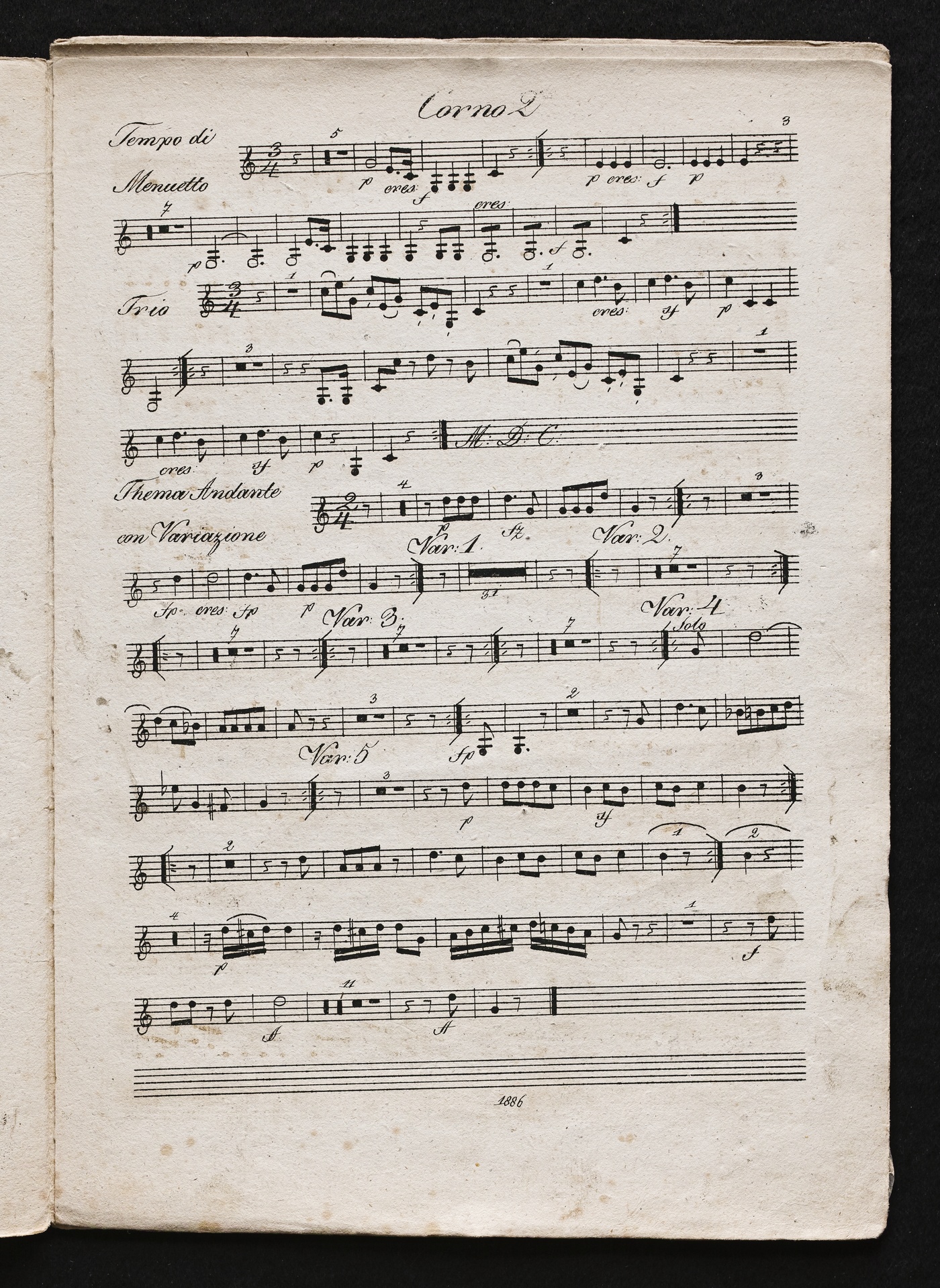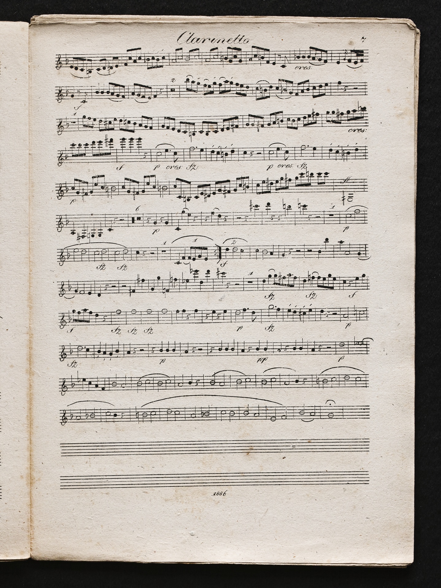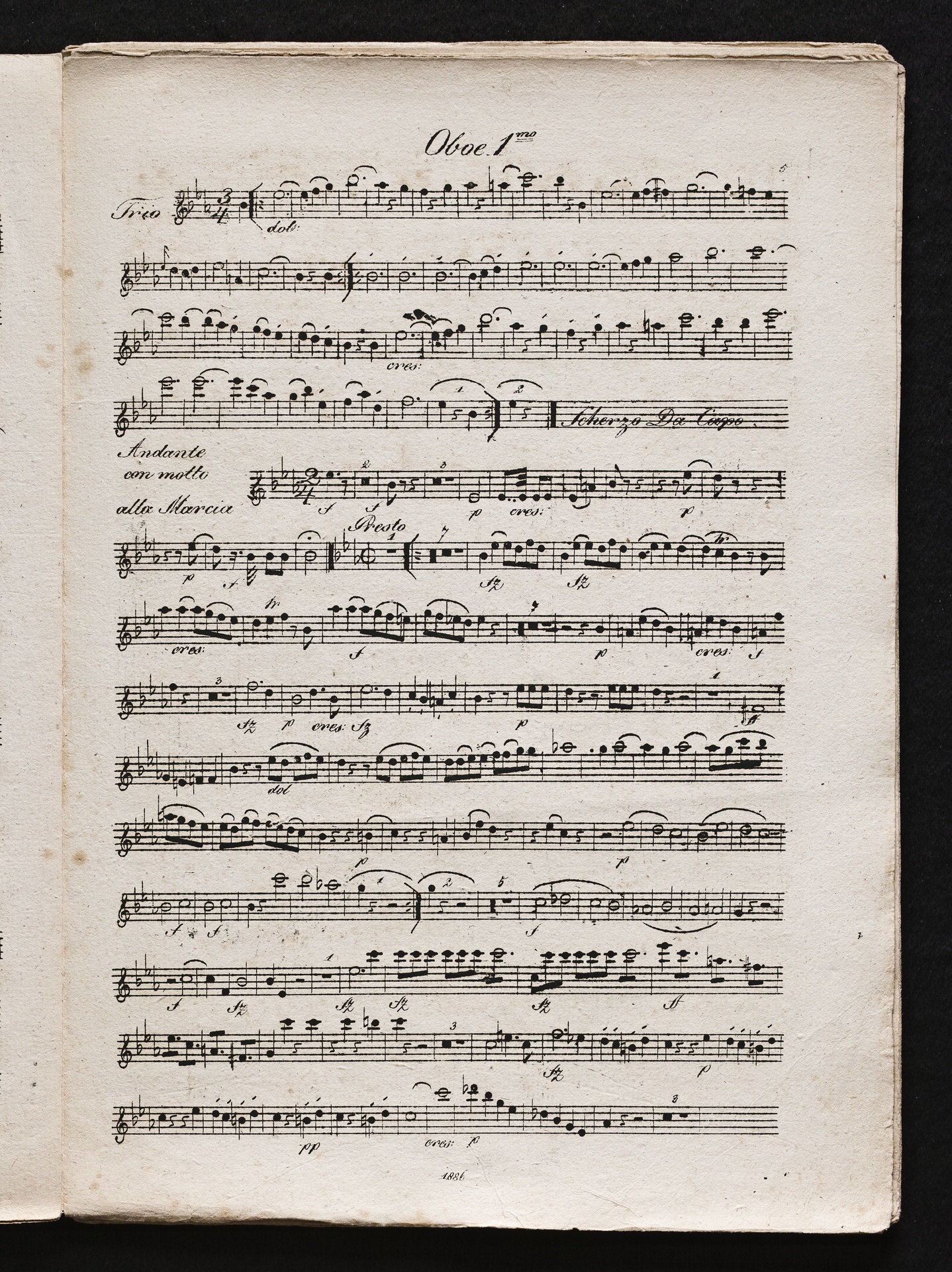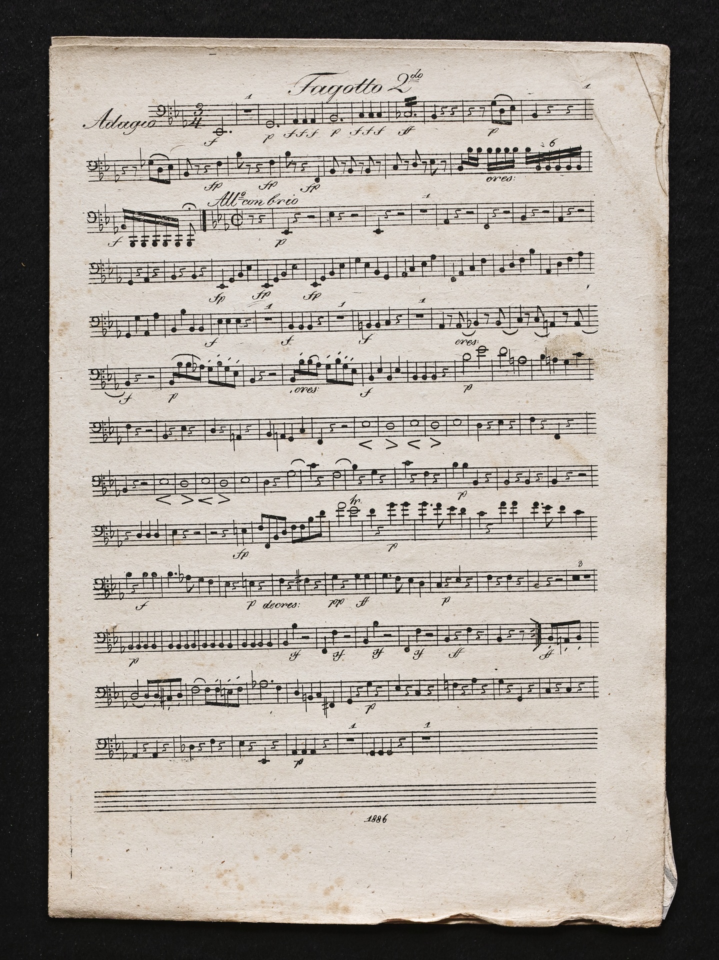 Ludwig van Beethoven, Septett für Violine, Viola, Klarinette, Horn, Fagott, Violoncello, Kontrabass (Es-Dur) op. 20, Bearbeitung für 2 Oboen, 2 Klarinetten, 2 Hörner, 2 Fagotte und Kontrafagott von Georg Druschetzky, Stimmen, Chemische Druckerei, 1886
