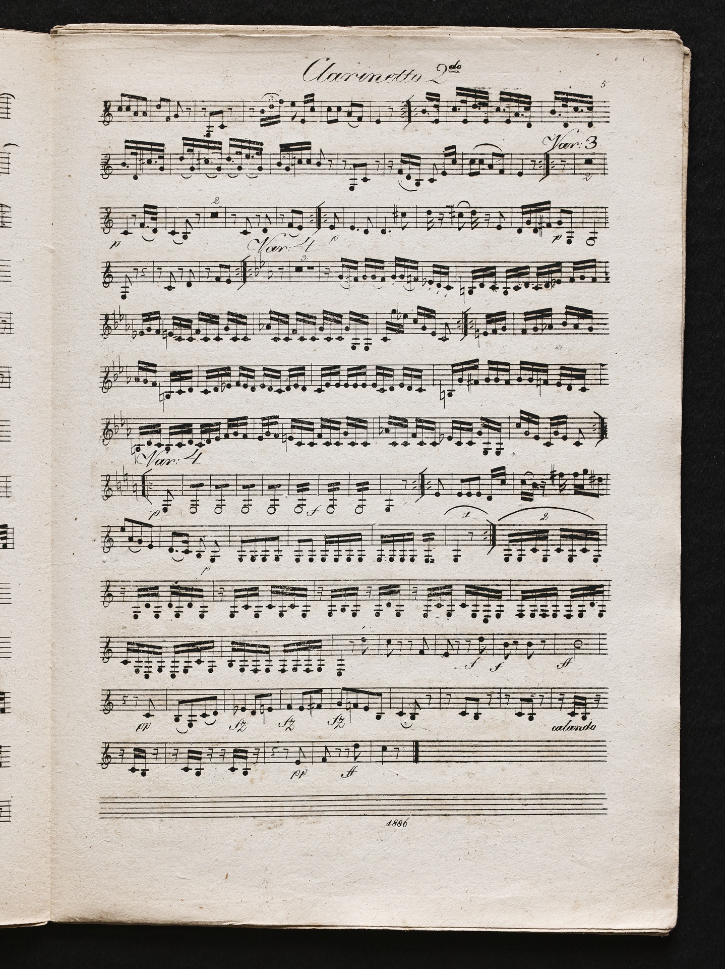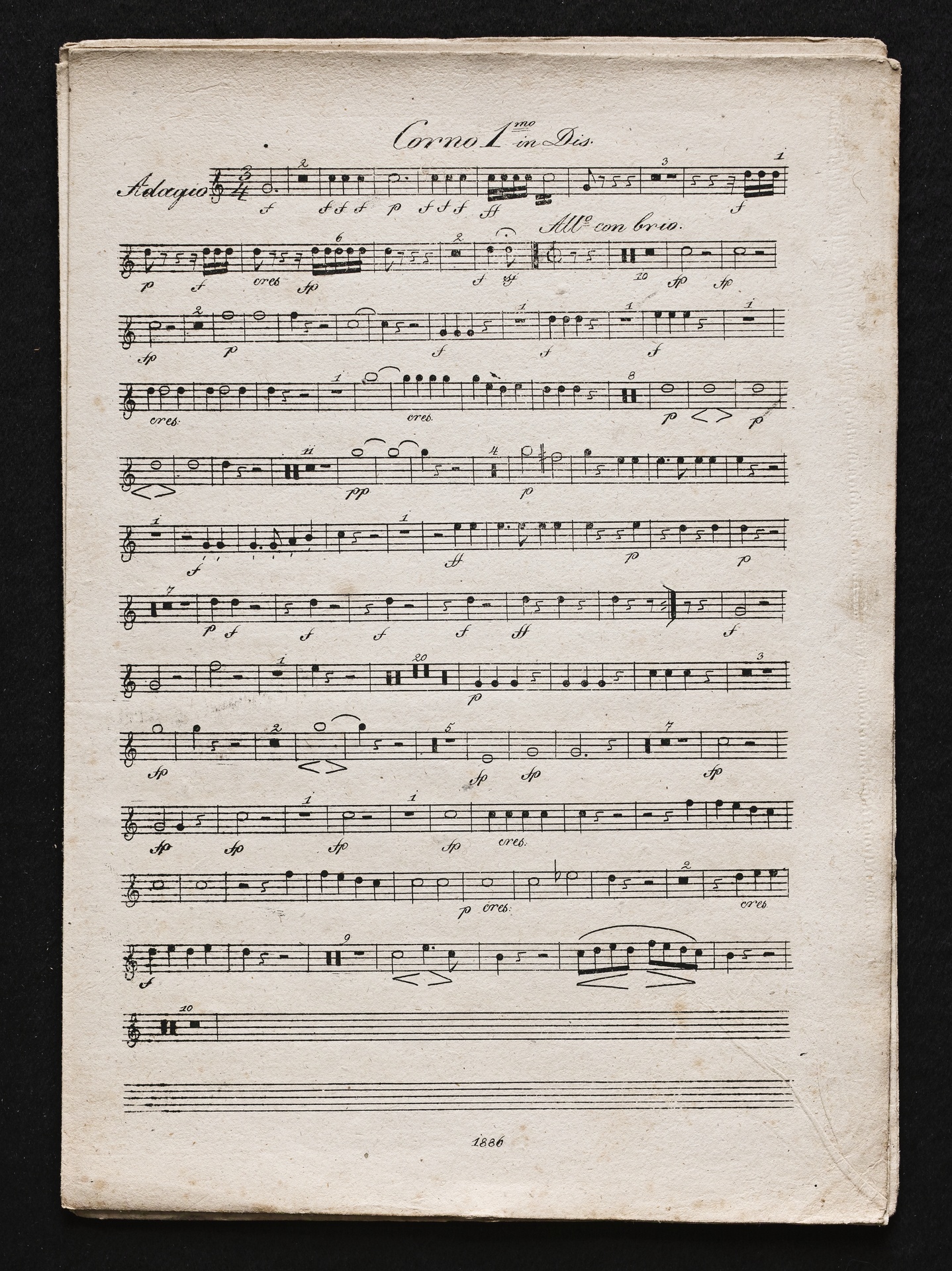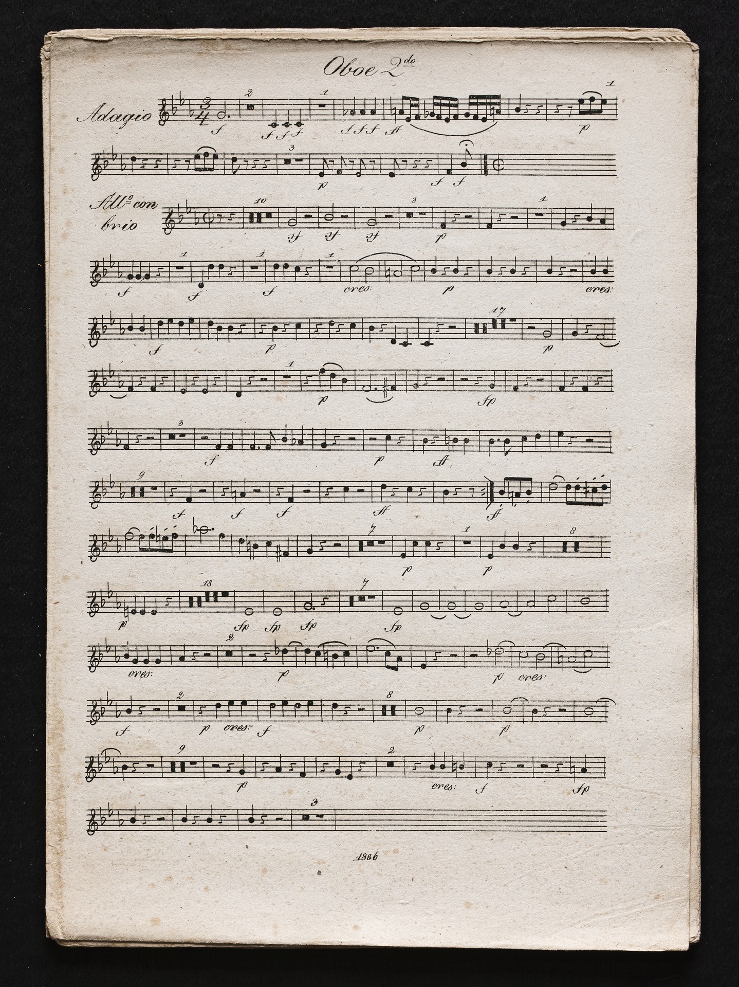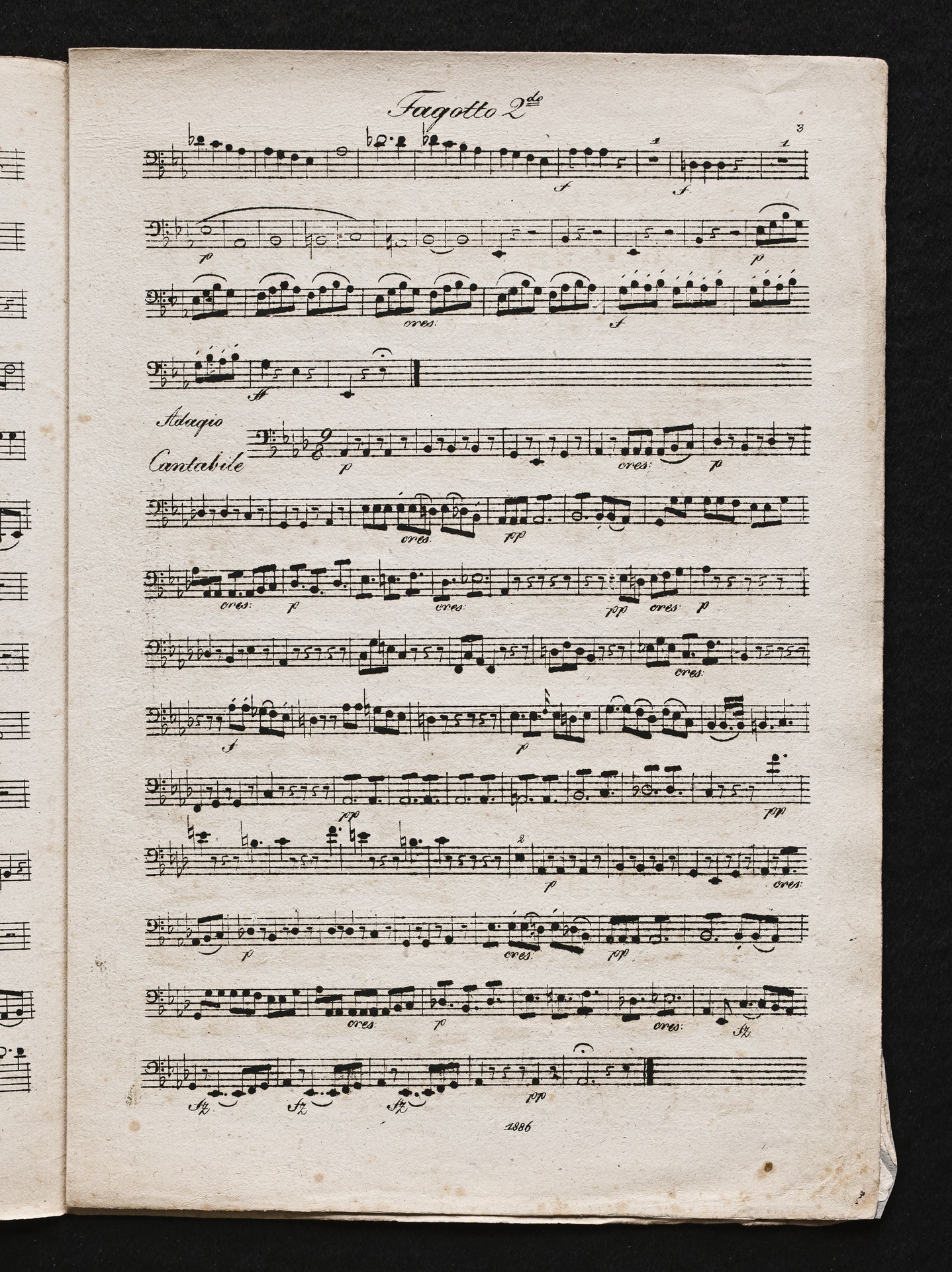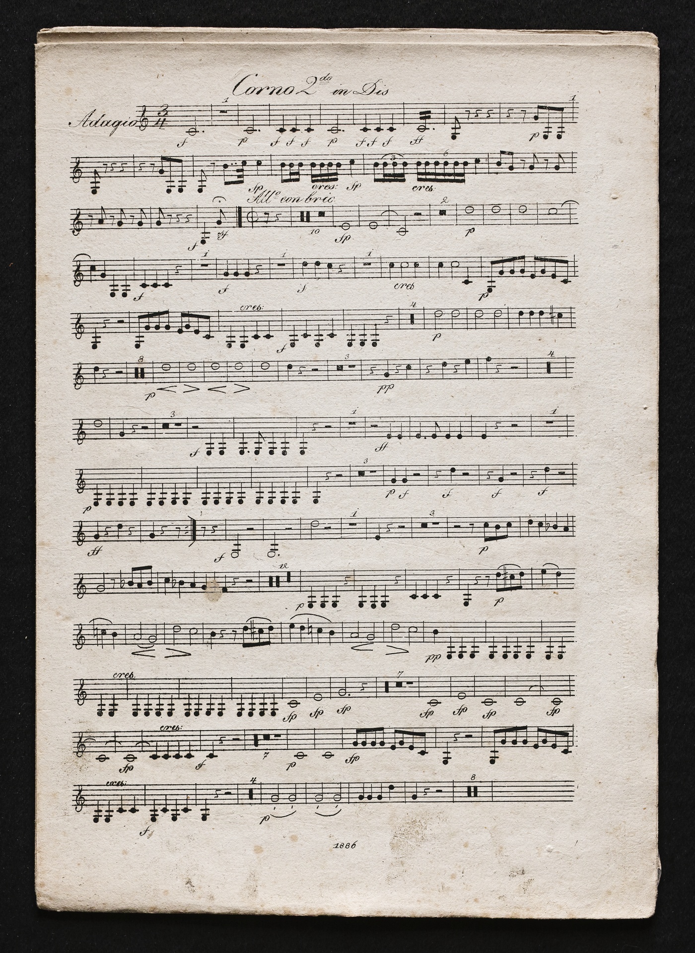 Ludwig van Beethoven, Septett für Violine, Viola, Klarinette, Horn, Fagott, Violoncello, Kontrabass (Es-Dur) op. 20, Bearbeitung für 2 Oboen, 2 Klarinetten, 2 Hörner, 2 Fagotte und Kontrafagott von Georg Druschetzky, Stimmen, Chemische Druckerei, 1886