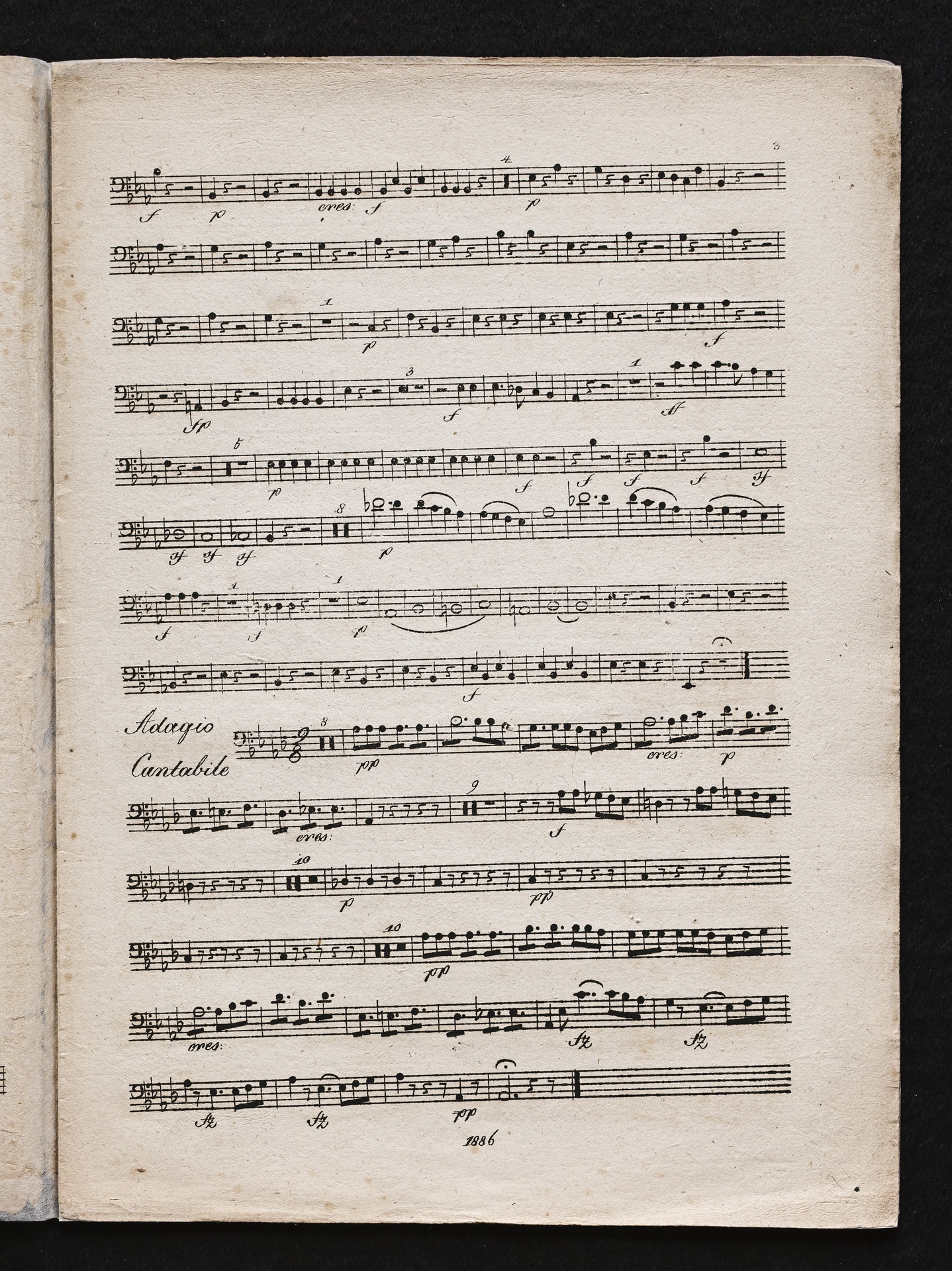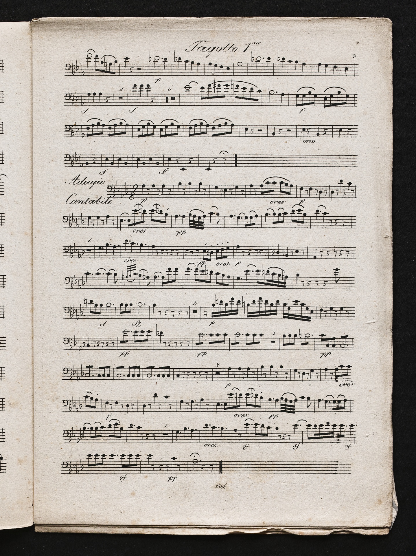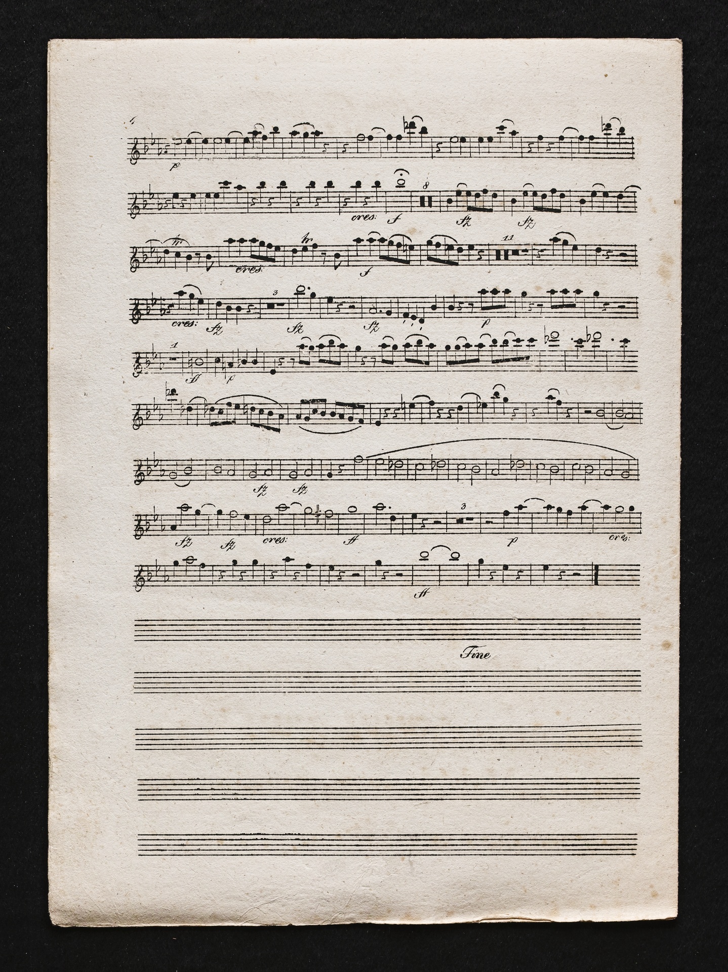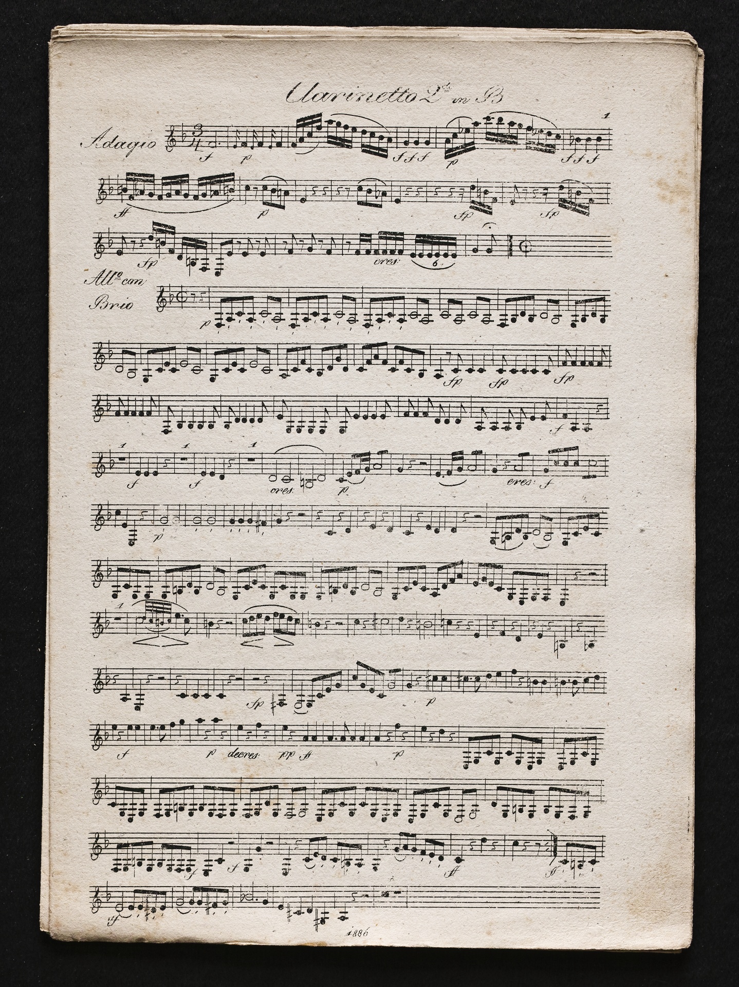 Ludwig van Beethoven, Septett für Violine, Viola, Klarinette, Horn, Fagott, Violoncello, Kontrabass (Es-Dur) op. 20, Bearbeitung für 2 Oboen, 2 Klarinetten, 2 Hörner, 2 Fagotte und Kontrafagott von Georg Druschetzky, Stimmen, Chemische Druckerei, 1886