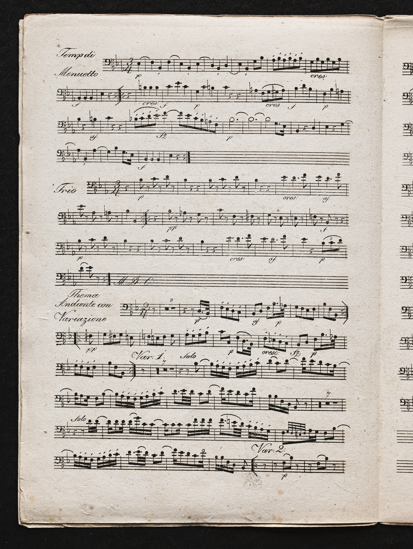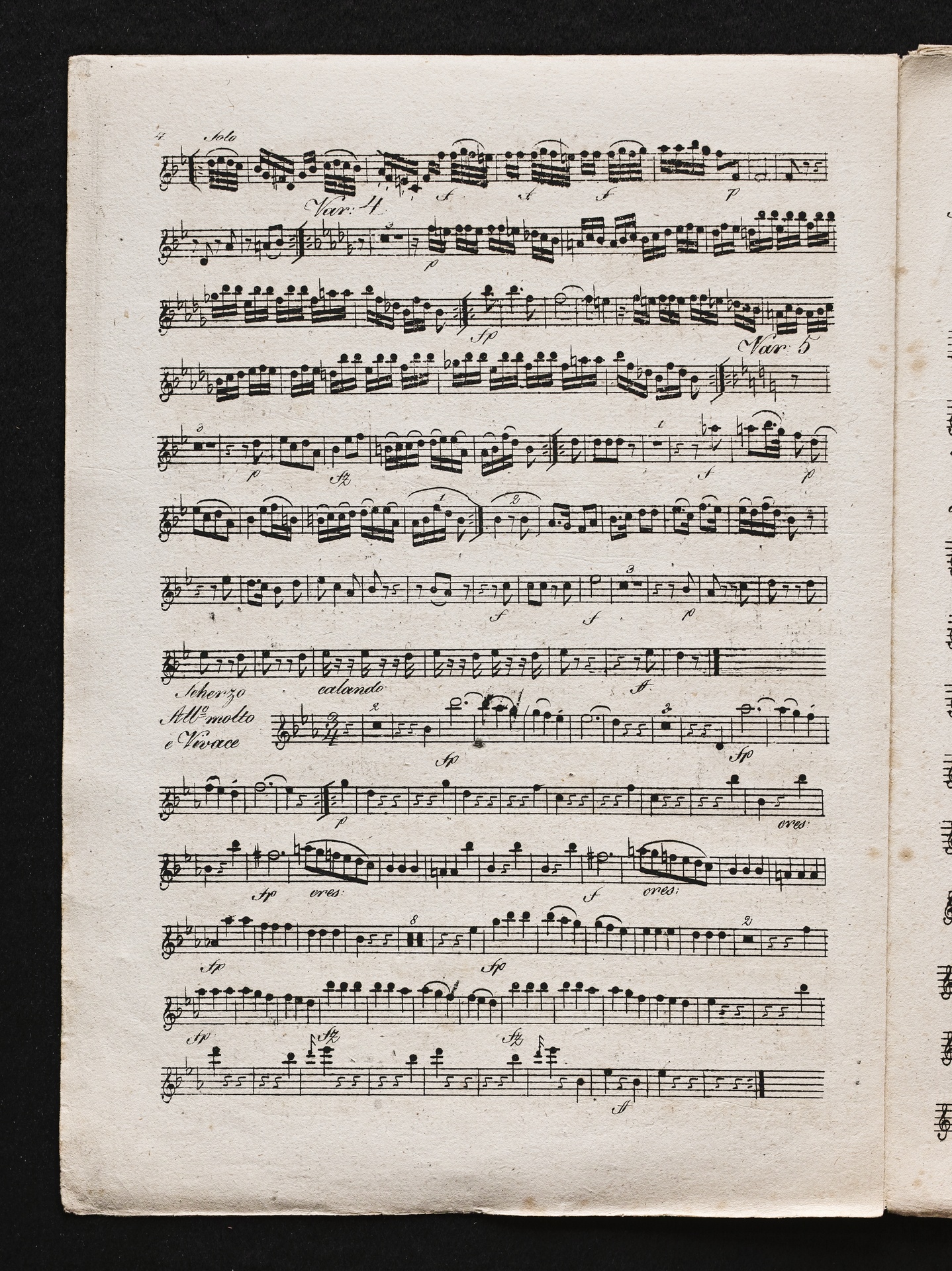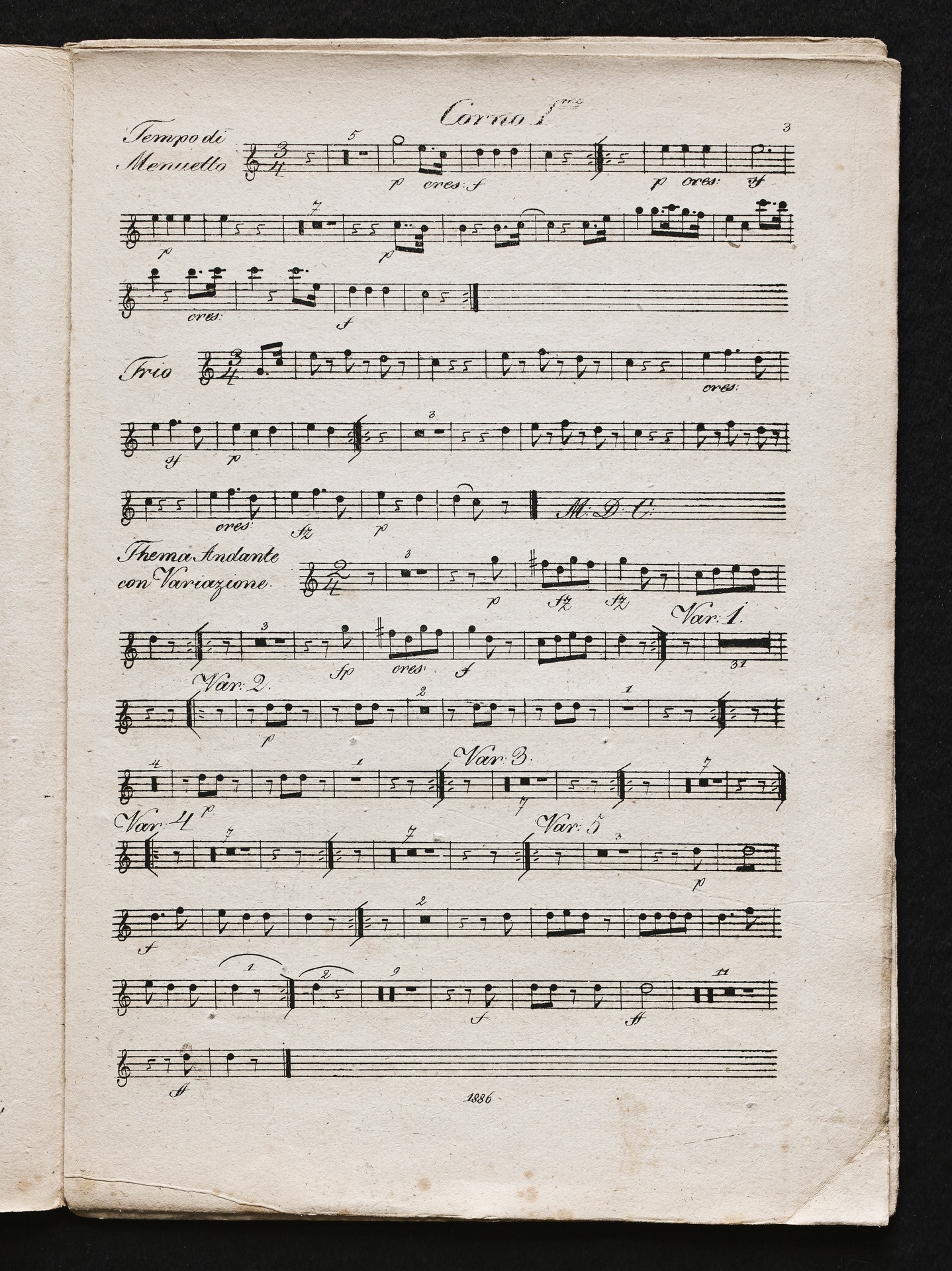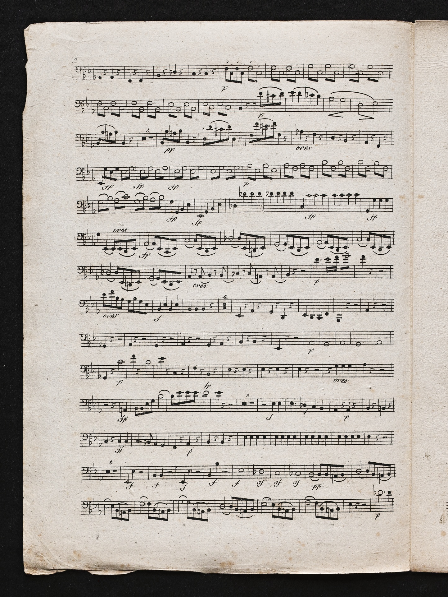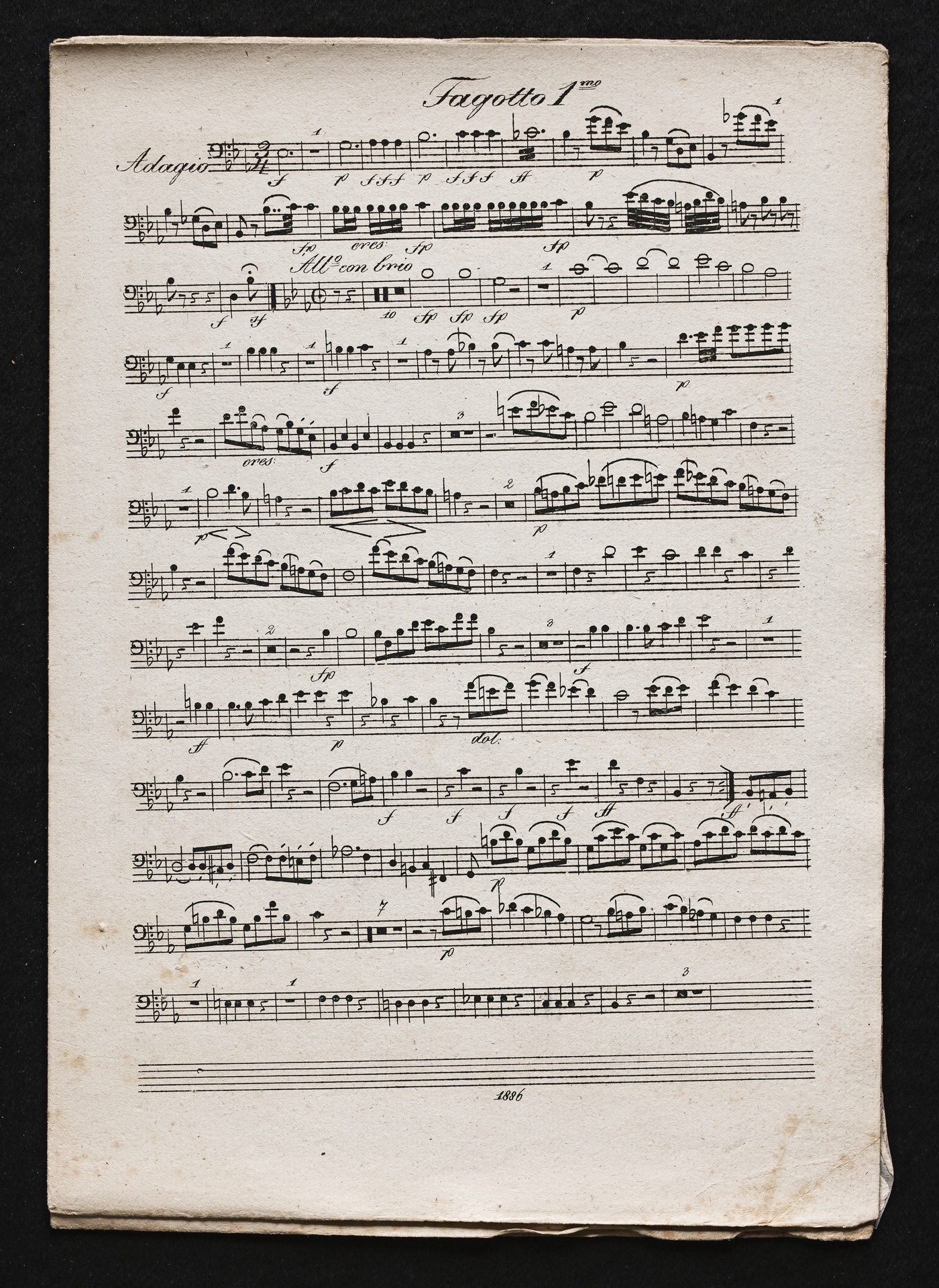 Ludwig van Beethoven, Septett für Violine, Viola, Klarinette, Horn, Fagott, Violoncello, Kontrabass (Es-Dur) op. 20, Bearbeitung für 2 Oboen, 2 Klarinetten, 2 Hörner, 2 Fagotte und Kontrafagott von Georg Druschetzky, Stimmen, Chemische Druckerei, 1886