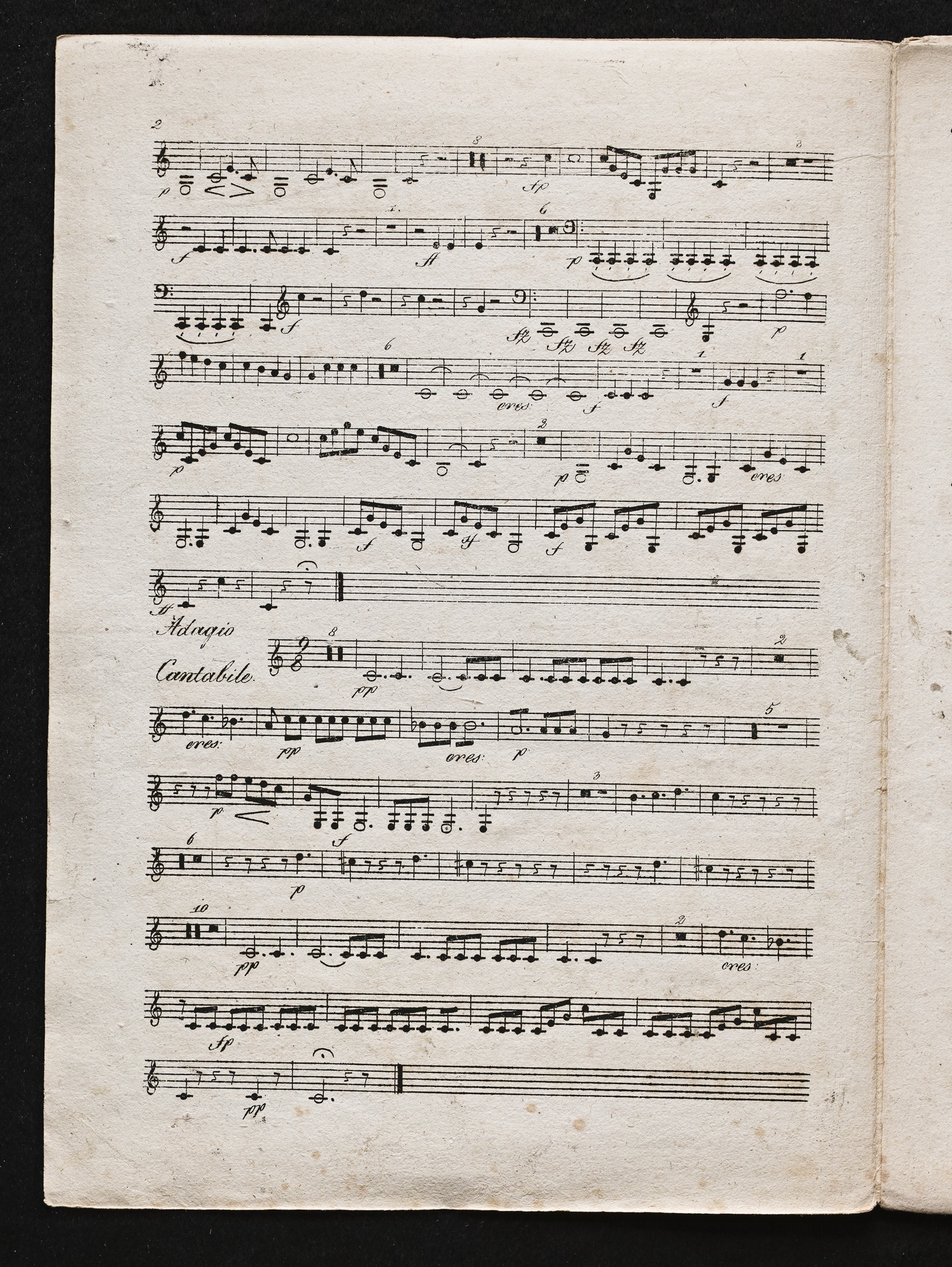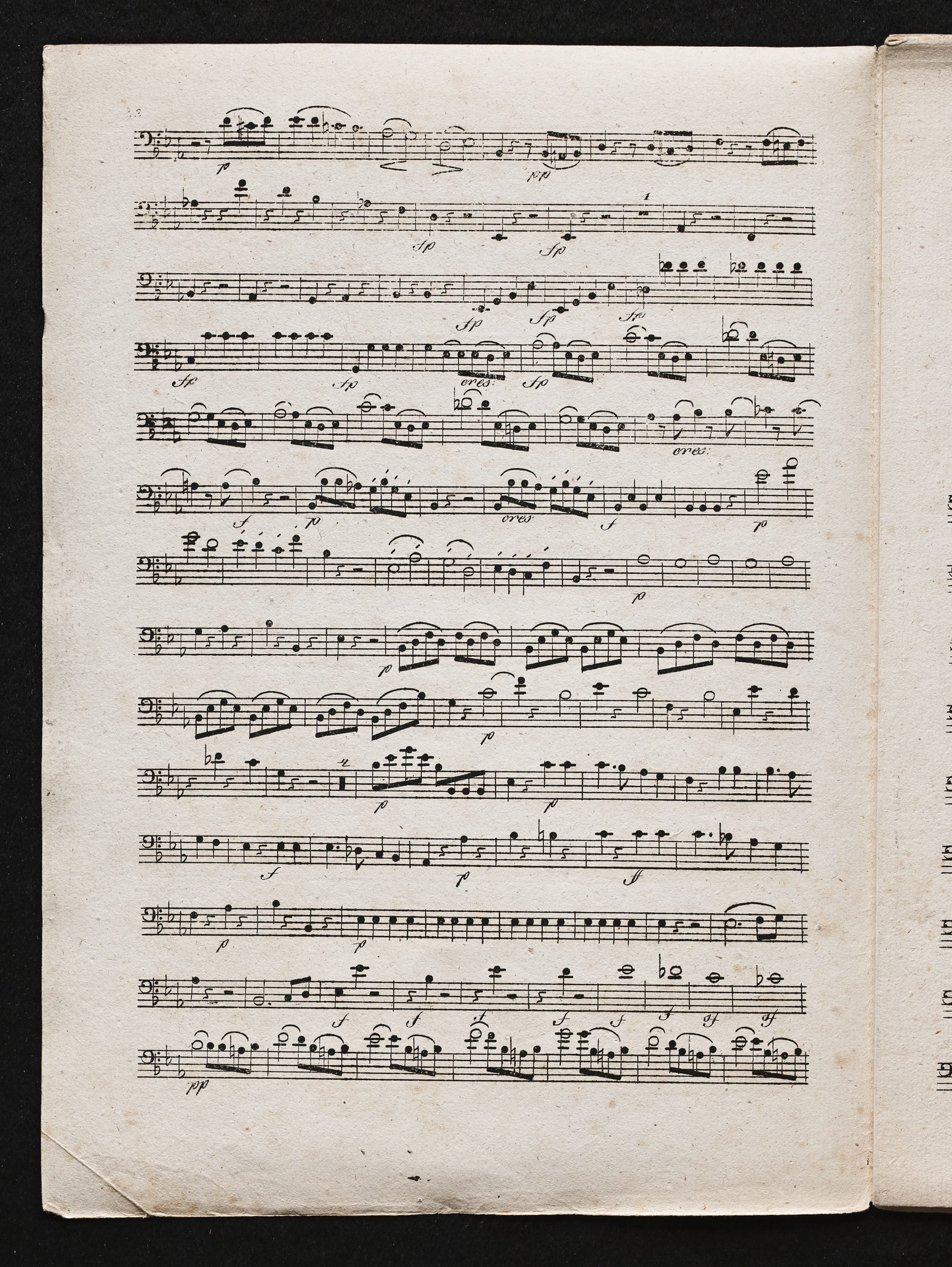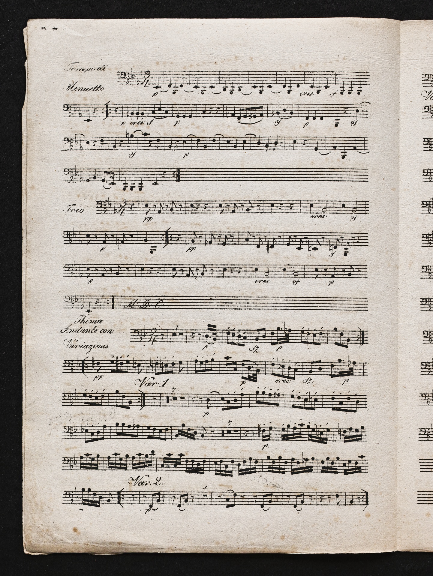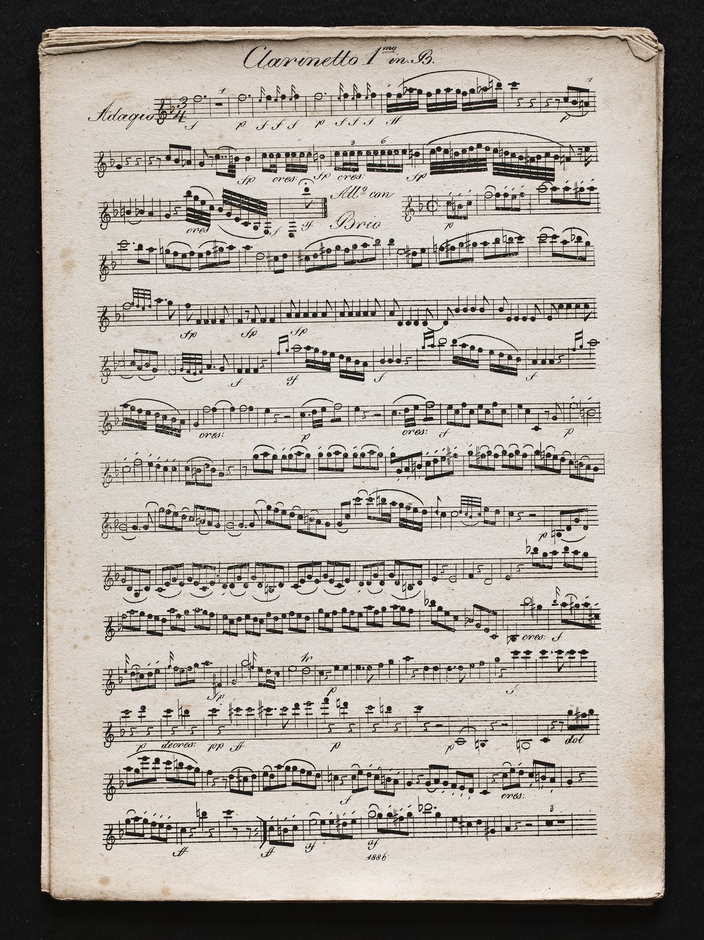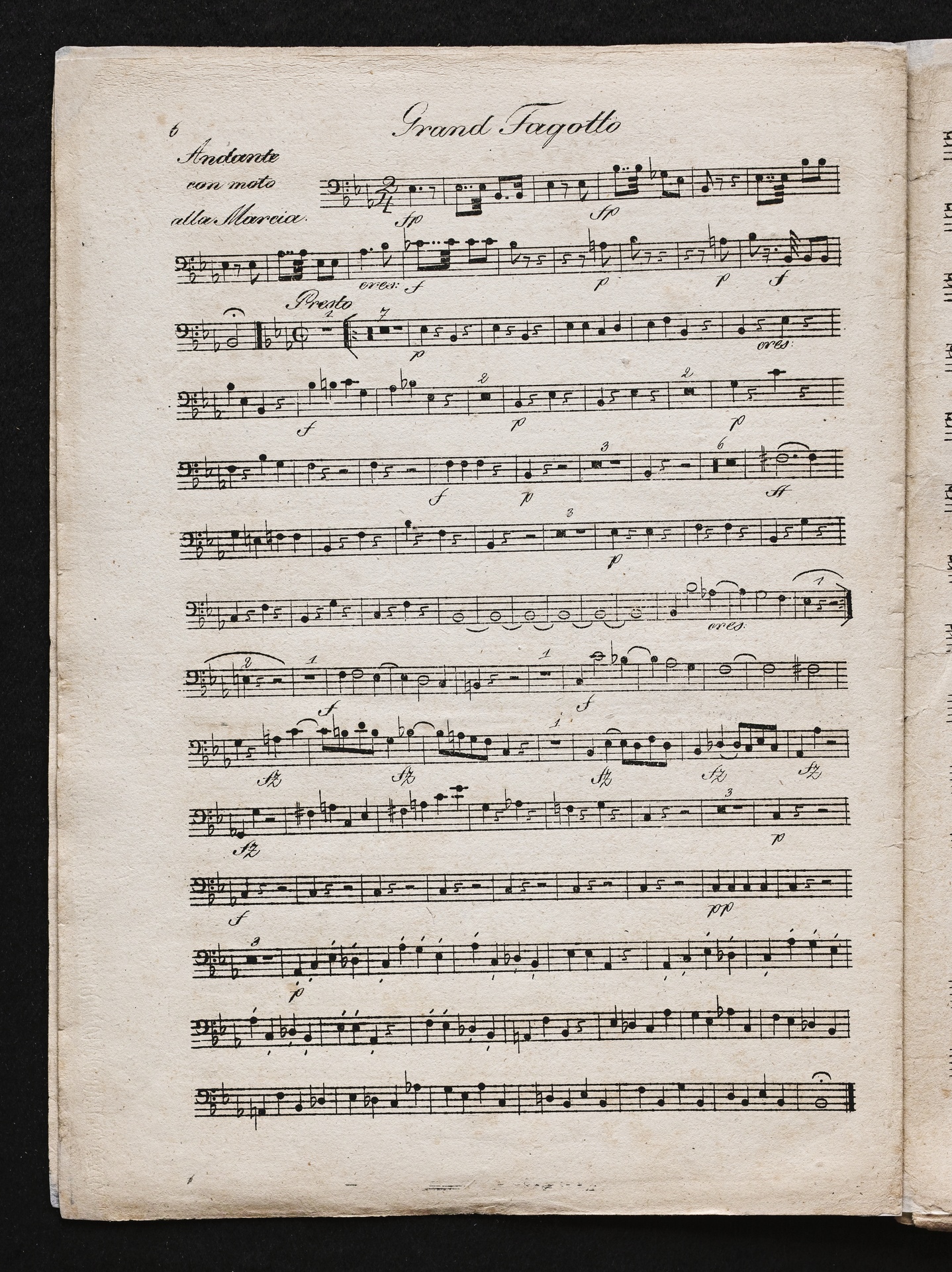 Ludwig van Beethoven, Septett für Violine, Viola, Klarinette, Horn, Fagott, Violoncello, Kontrabass (Es-Dur) op. 20, Bearbeitung für 2 Oboen, 2 Klarinetten, 2 Hörner, 2 Fagotte und Kontrafagott von Georg Druschetzky, Stimmen, Chemische Druckerei, 1886