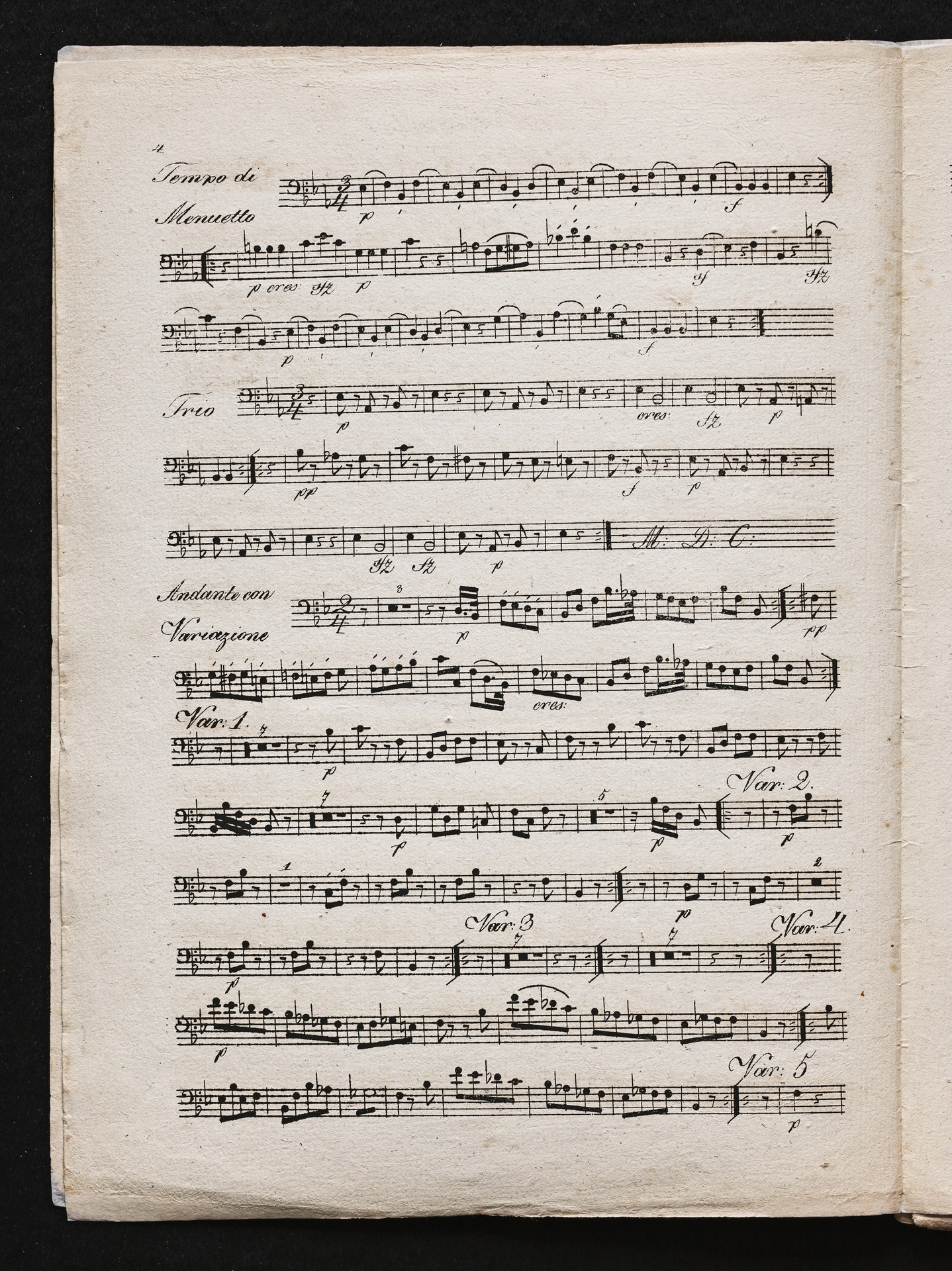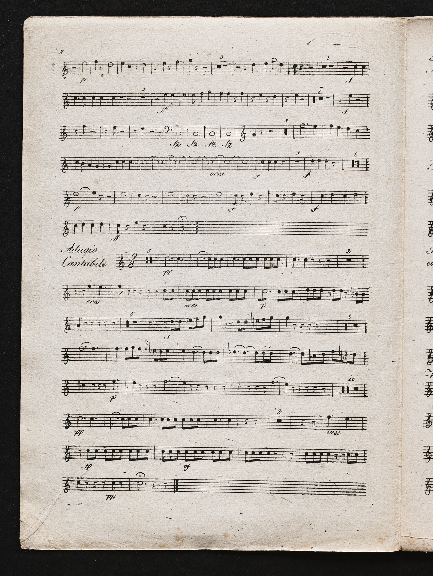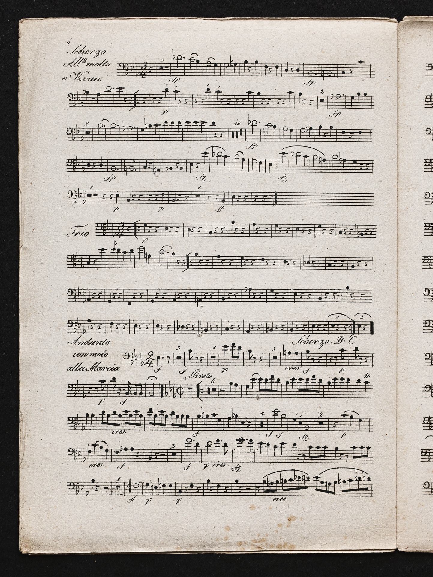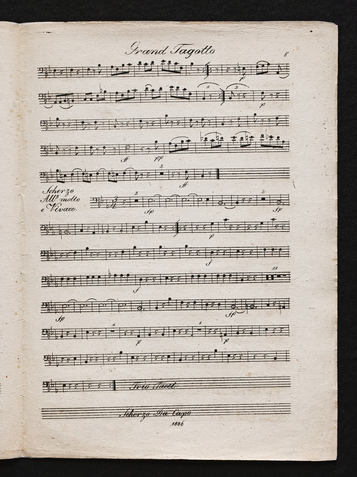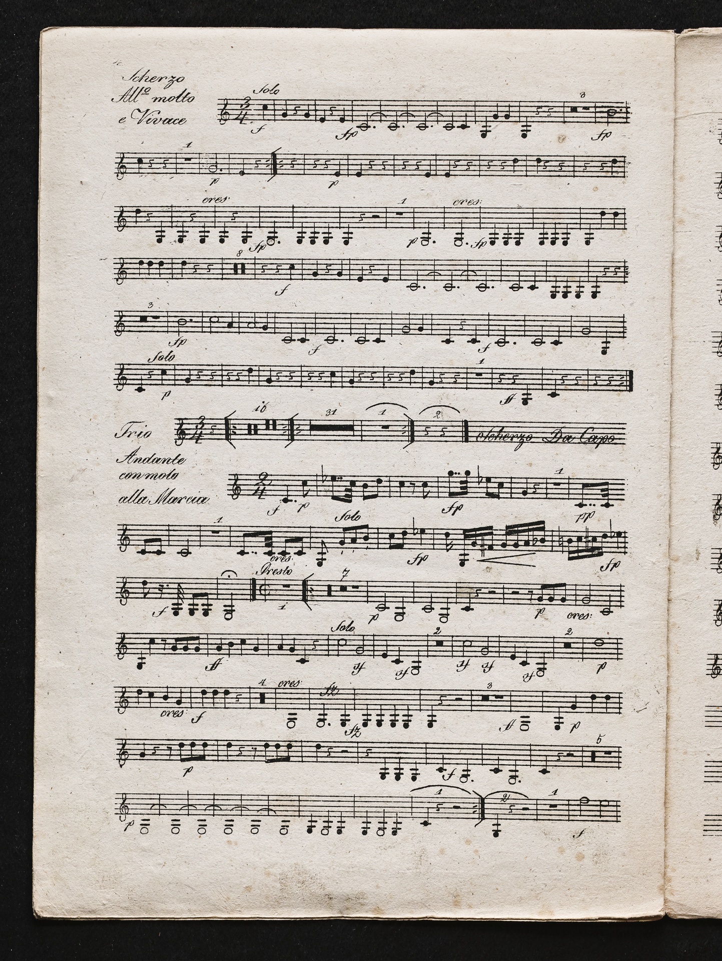 Ludwig van Beethoven, Septett für Violine, Viola, Klarinette, Horn, Fagott, Violoncello, Kontrabass (Es-Dur) op. 20, Bearbeitung für 2 Oboen, 2 Klarinetten, 2 Hörner, 2 Fagotte und Kontrafagott von Georg Druschetzky, Stimmen, Chemische Druckerei, 1886