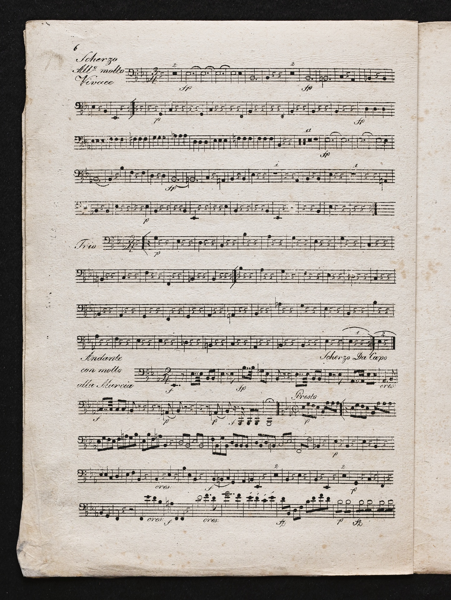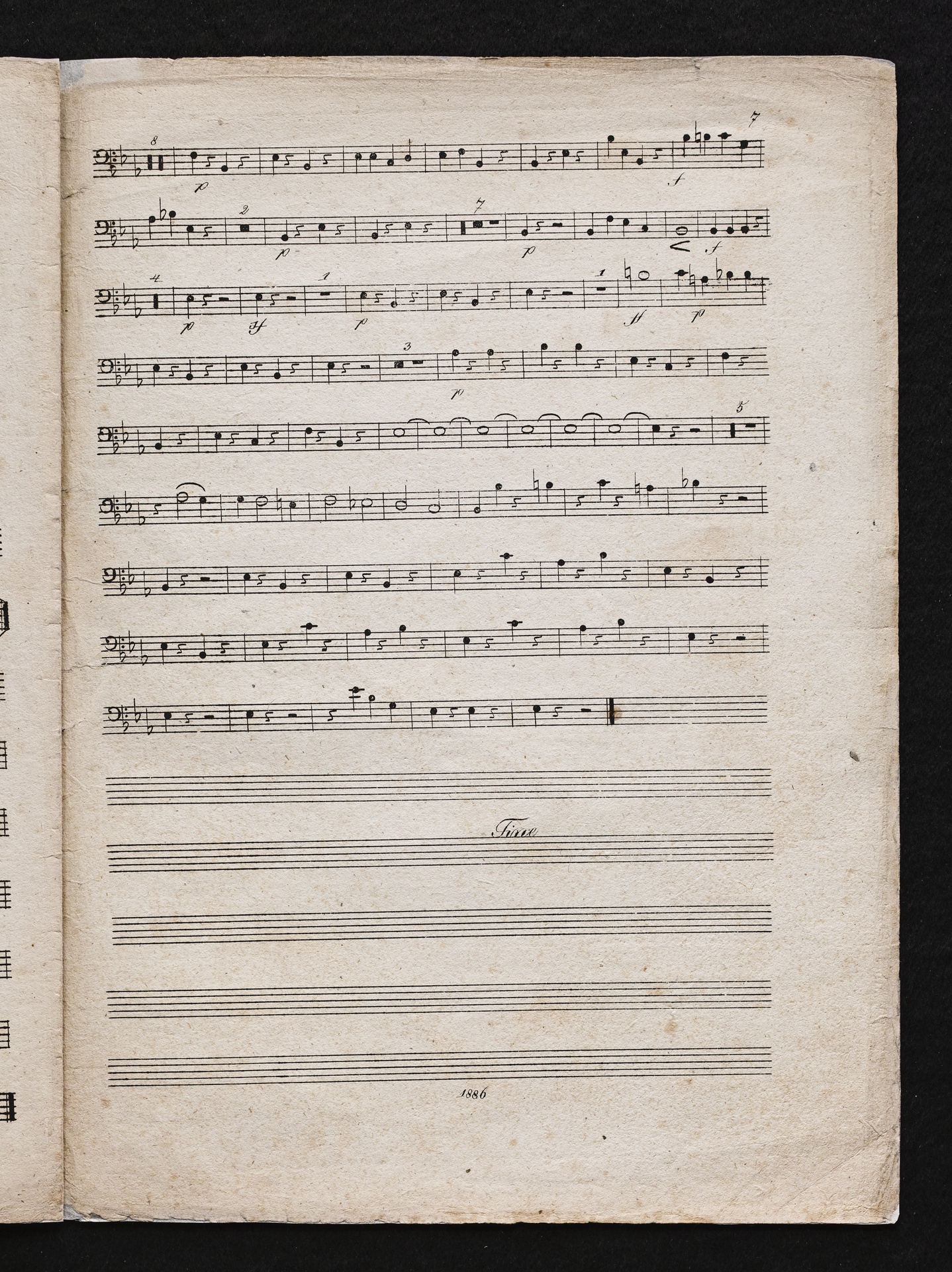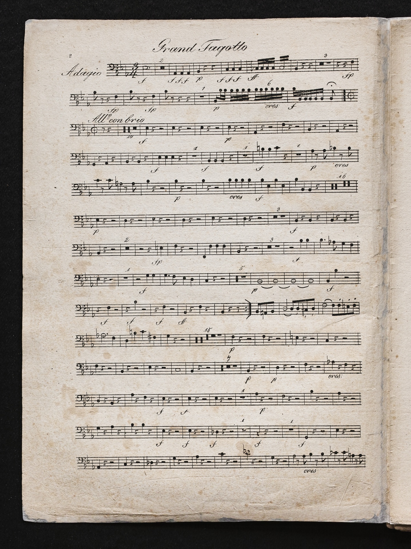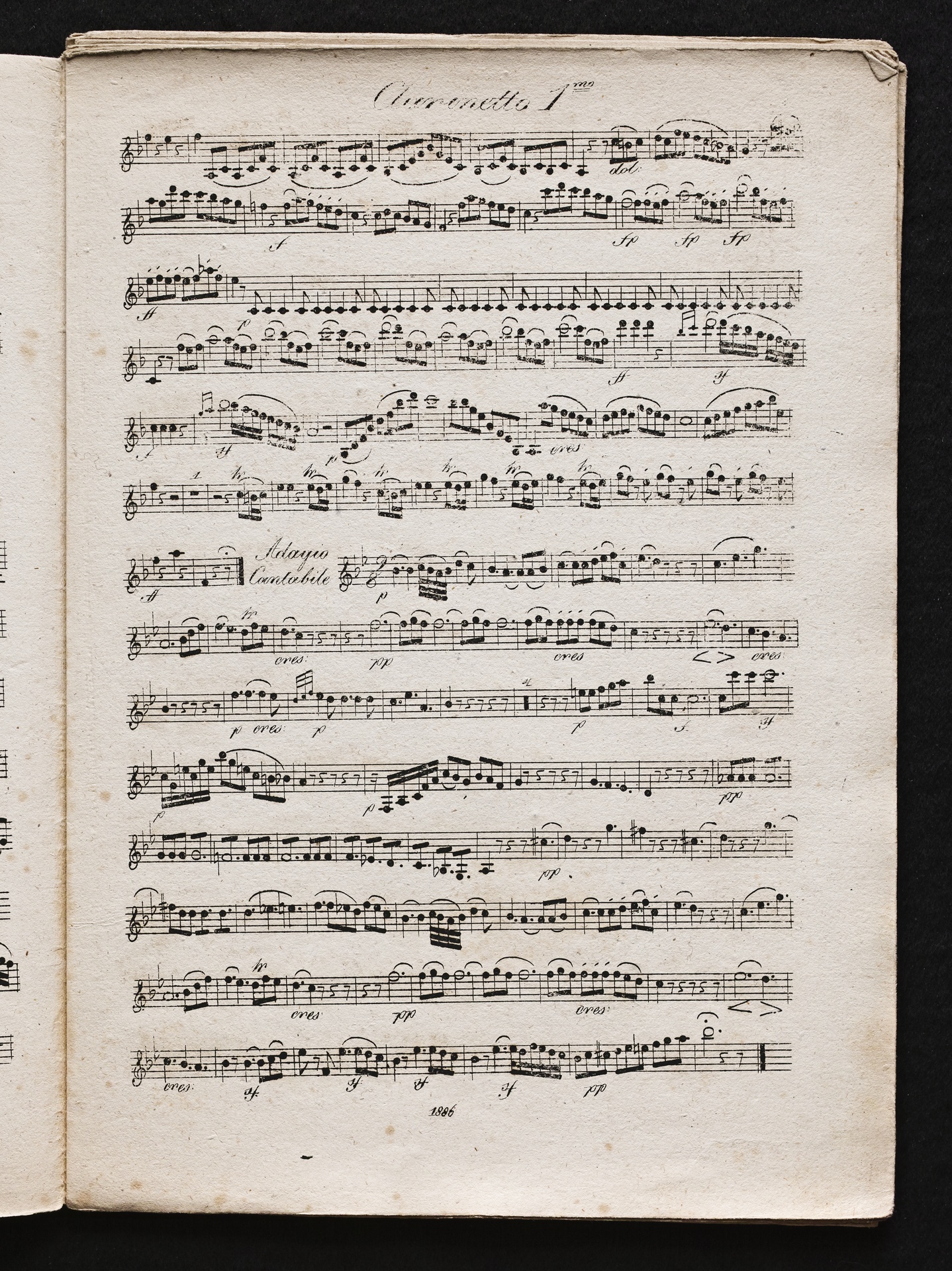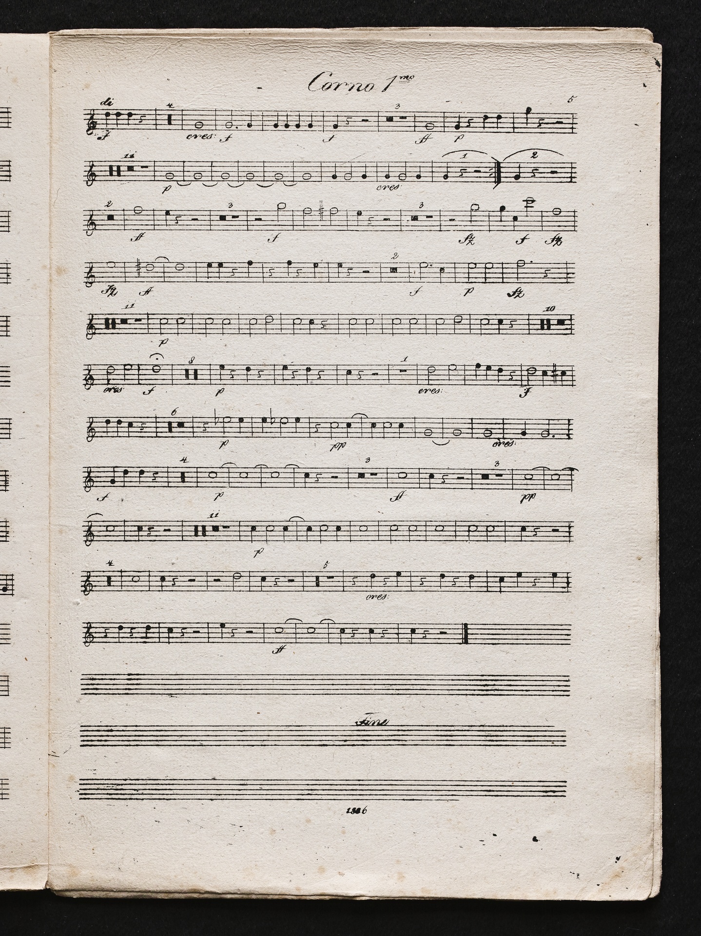Ludwig van Beethoven, Septett für Violine, Viola, Klarinette, Horn, Fagott, Violoncello, Kontrabass (Es-Dur) op. 20, Bearbeitung für 2 Oboen, 2 Klarinetten, 2 Hörner, 2 Fagotte und Kontrafagott von Georg Druschetzky, Stimmen, Chemische Druckerei, 1886