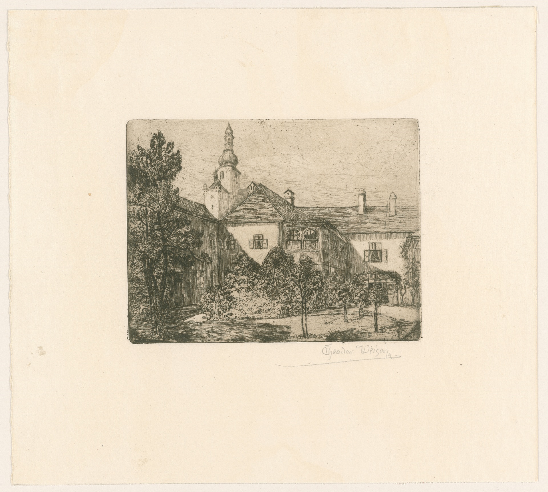Baden, Antonsgasse 4, das Gasthaus "Zum goldenen Schwan" - Radierung von Theodor Weiser, wohl nach einer eigenen Zeichnung, Wien, um 1920?