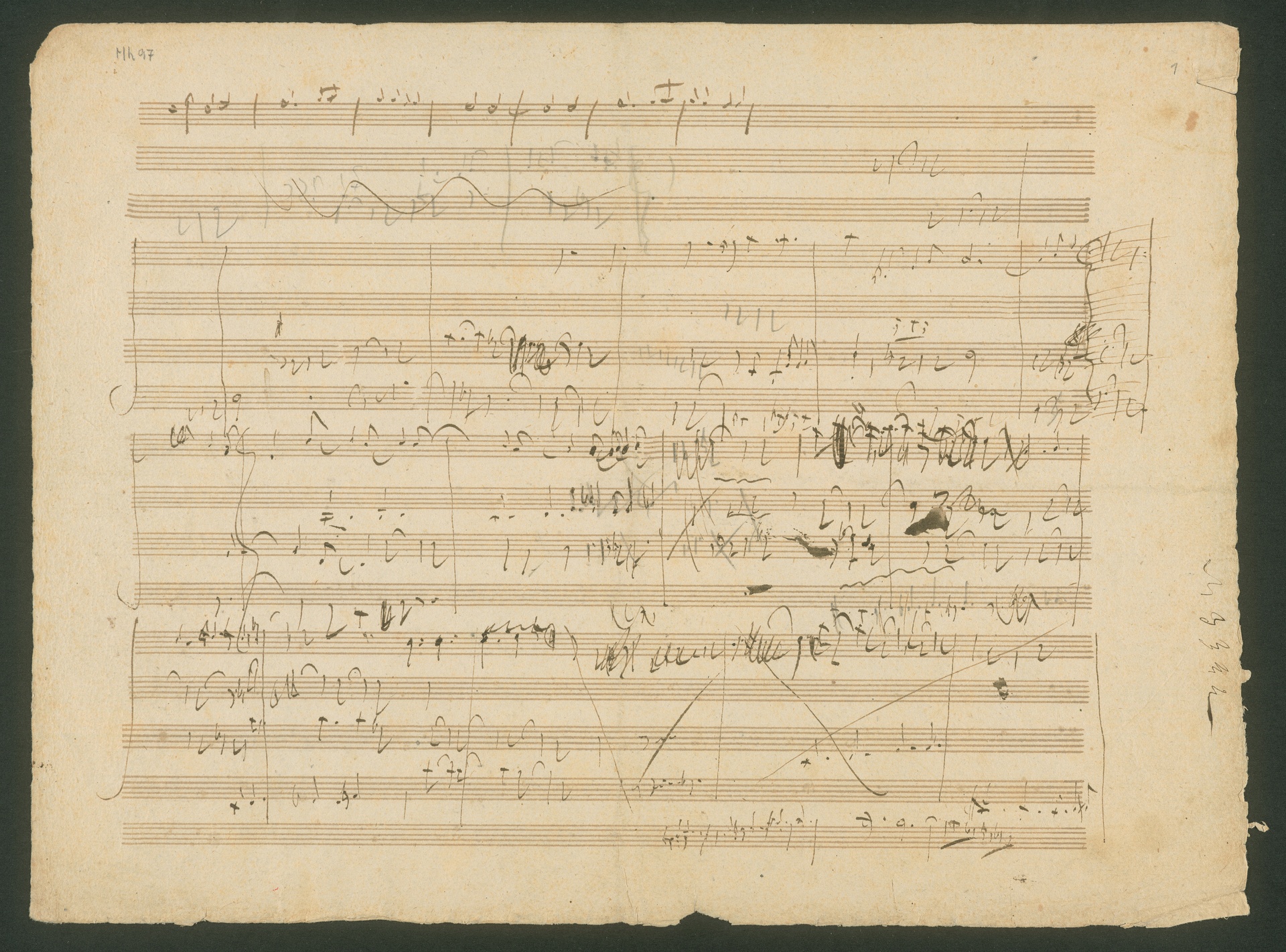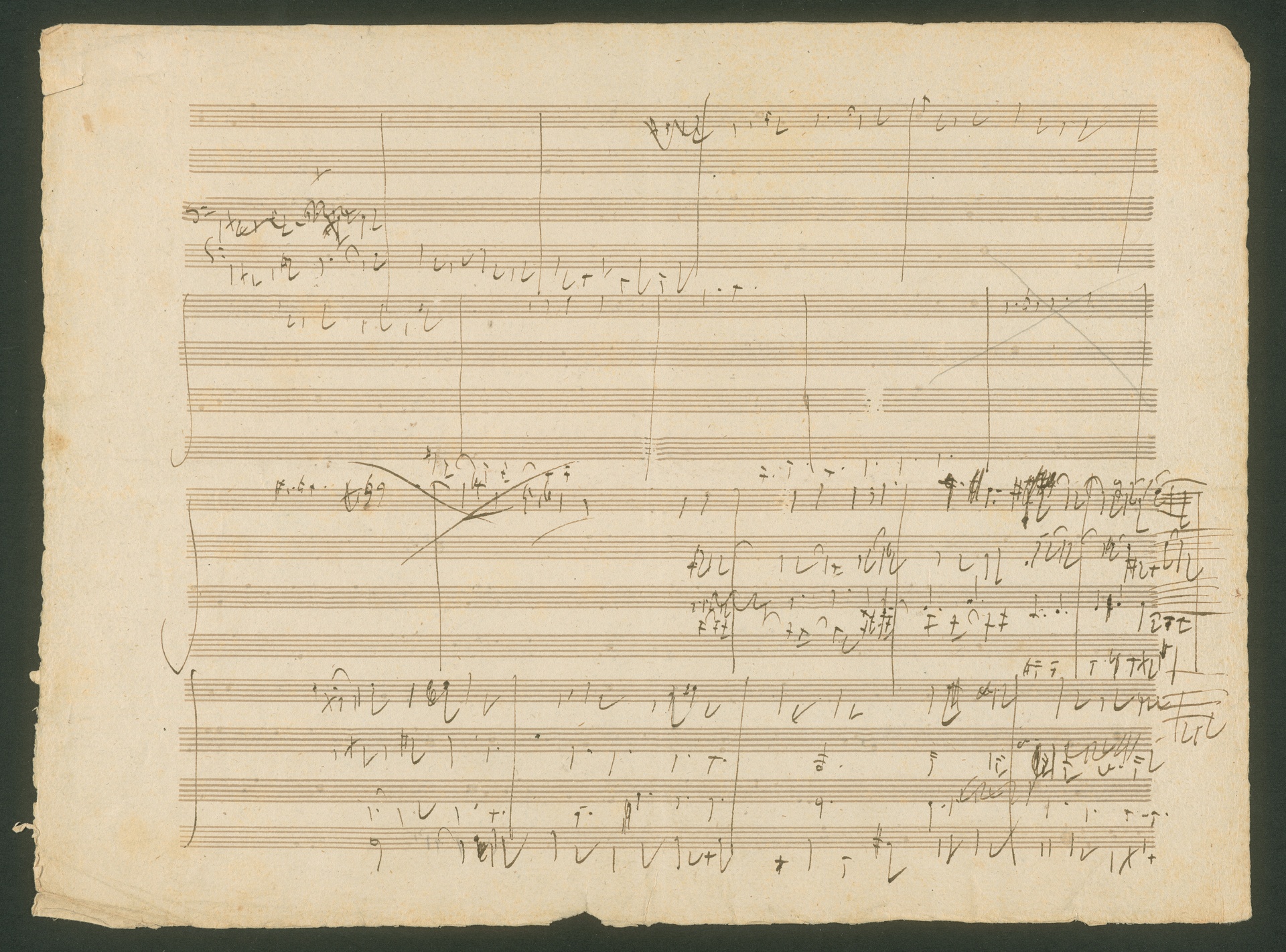Ludwig van Beethoven, Skizzenblatt zum Streichquartett op. 127 sowie zur Sinfonie Nr. 9 op. 125, Partiturskizze, Autograph