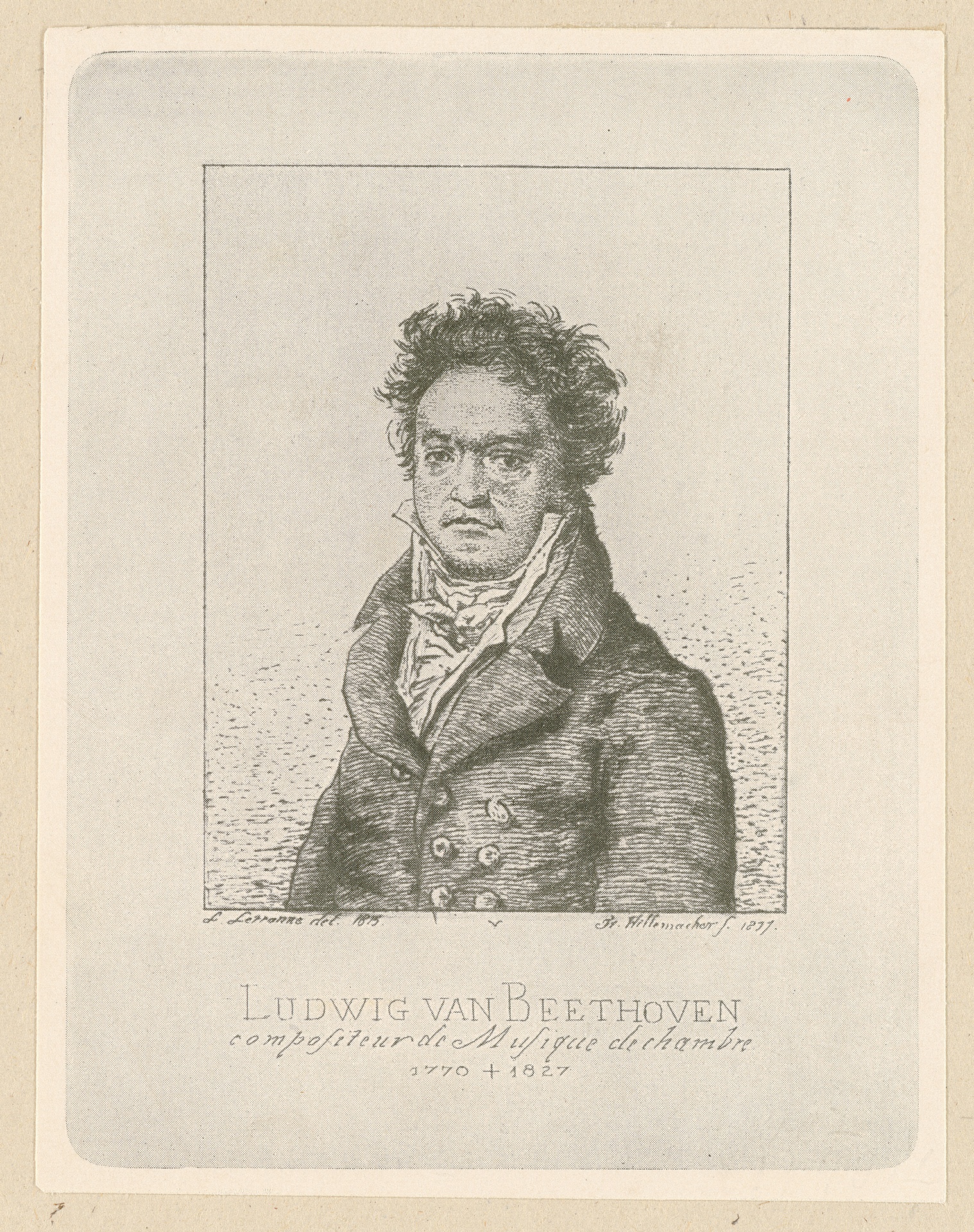 Ludwig van Beethoven - Radierung von Frédéric Désiré Hillemacher von 1877 nach einer Zeichnung von Louis Letronne oder einem Stich von Blasius Höfel, Reproduktion, Paris, um 1902