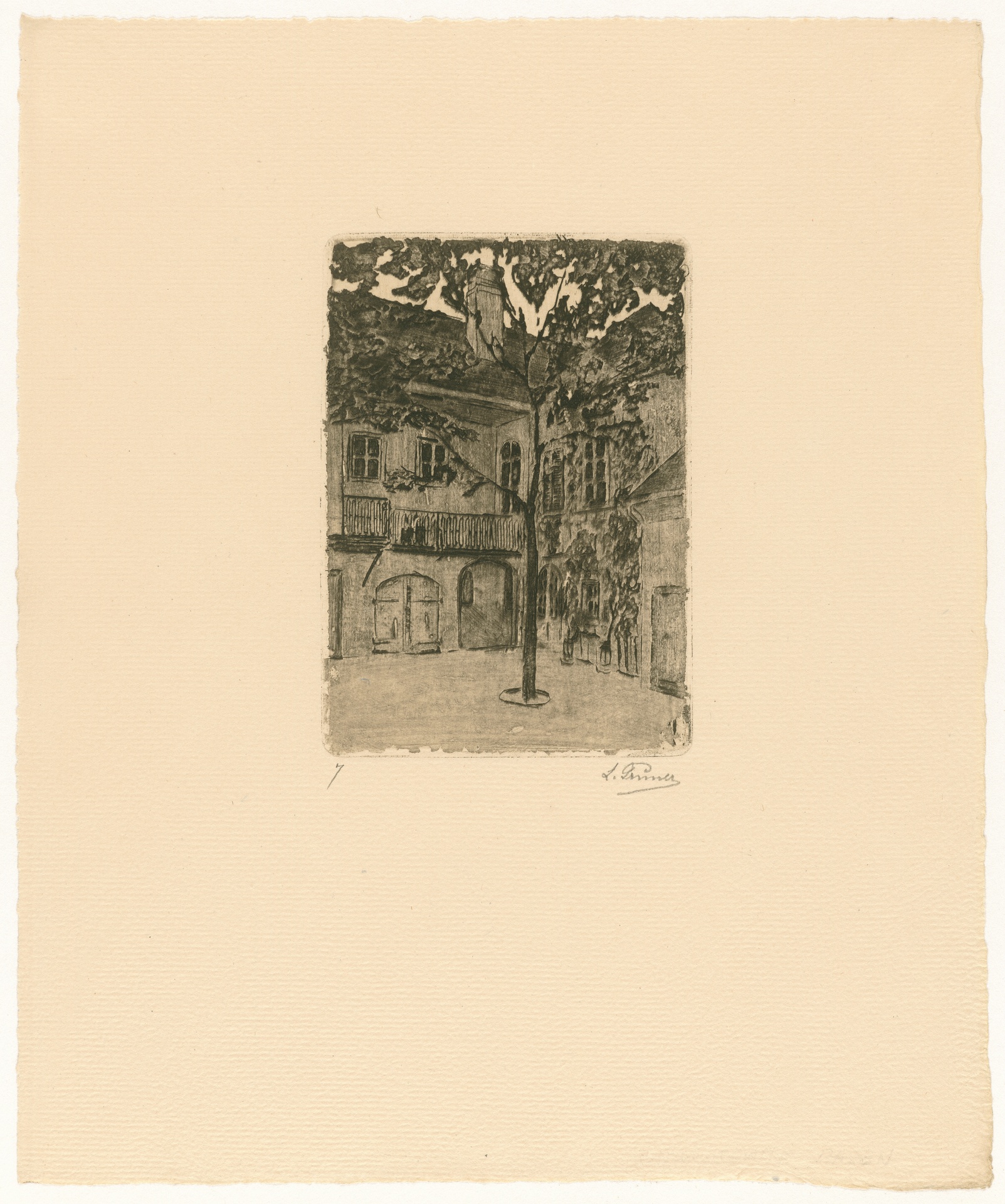 Baden, Rathausgasse 10, Wohnung von Ludwig van Beethoven, Gartenansicht, um 1910. - Radierung von Lila Gruner nach einer eigenen Zeichnung, Wien, 1910
