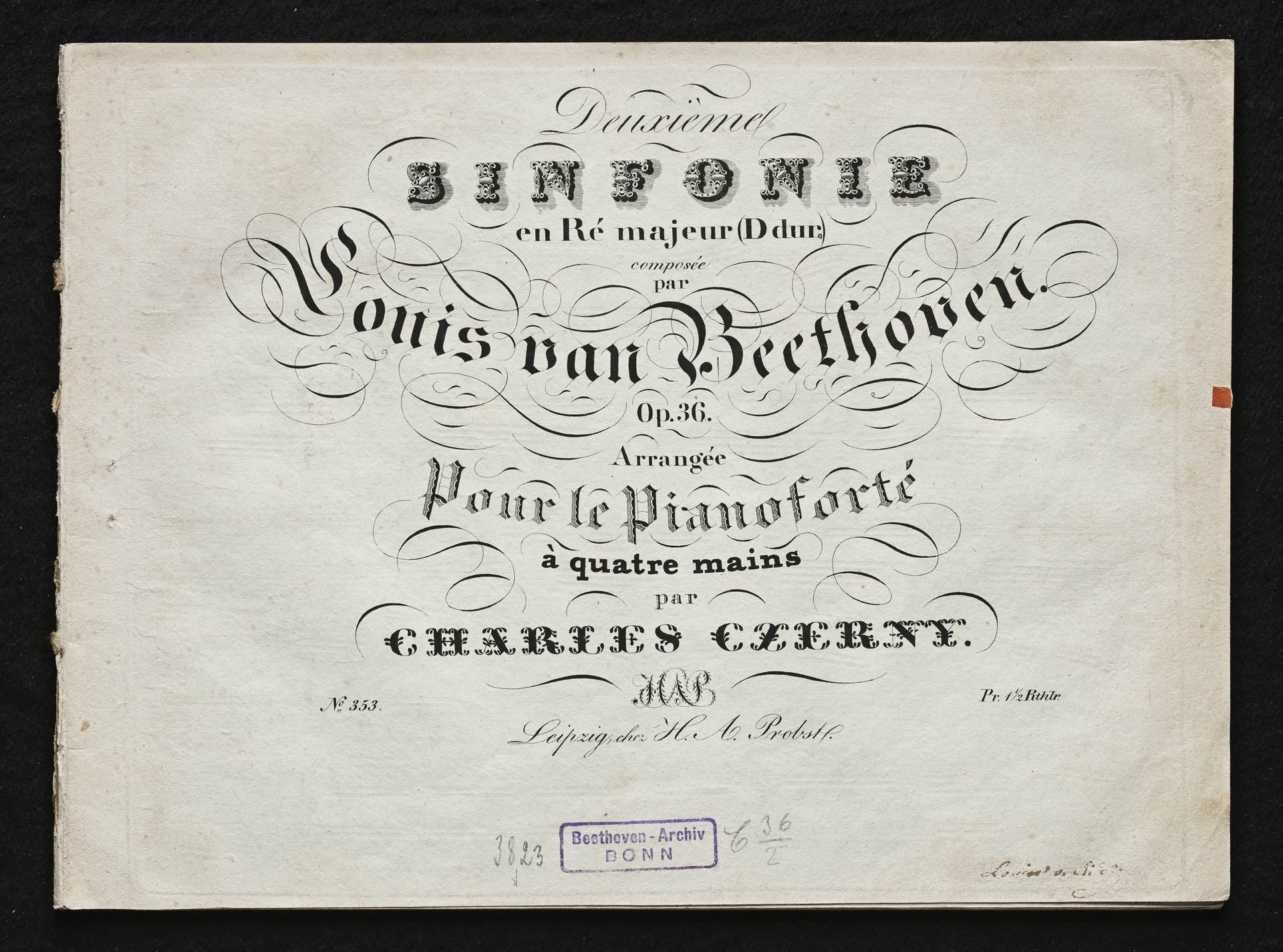 Ludwig van Beethoven, Sinfonie Nr. 2 (D-Dur) op. 36, Bearbeitung für Klavier zu 4 Händen von Carl Czerny, Probst, 353